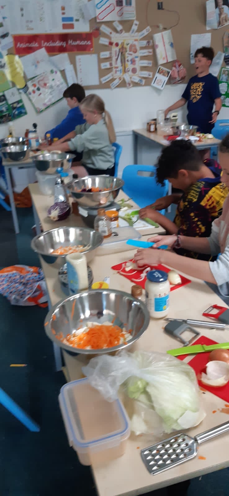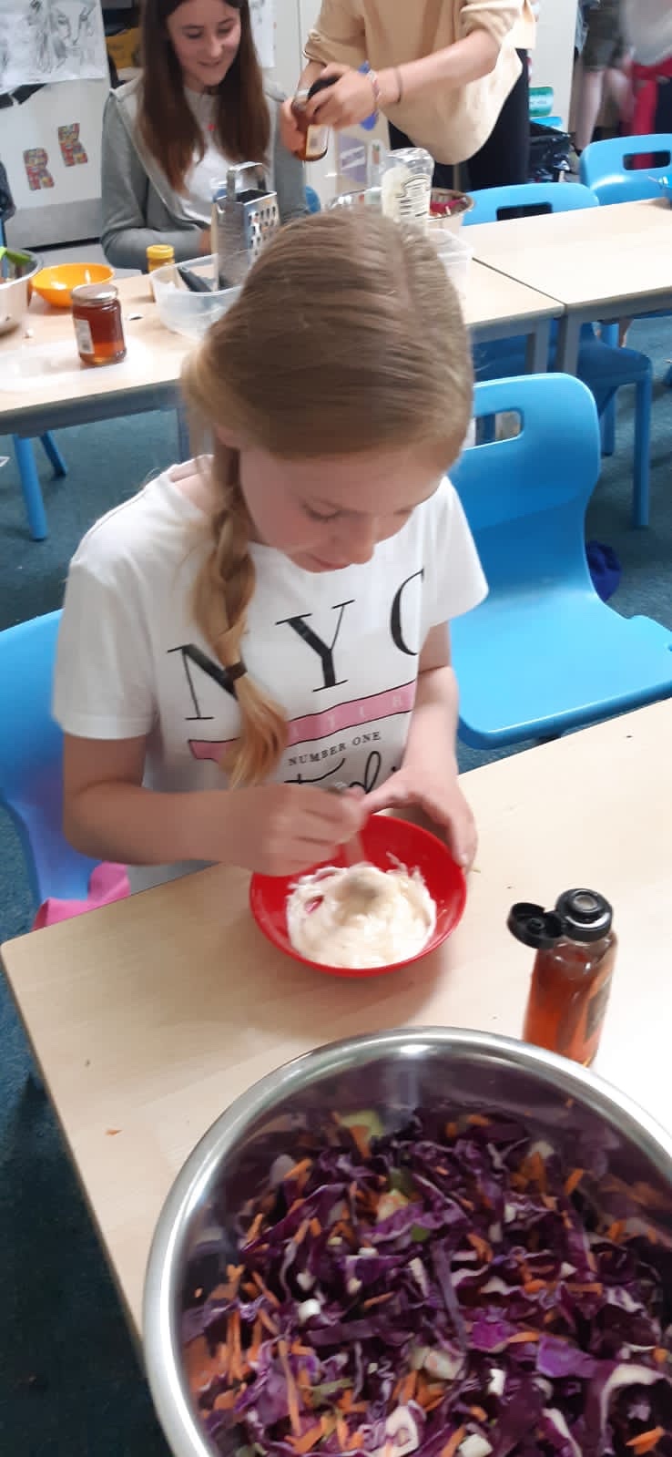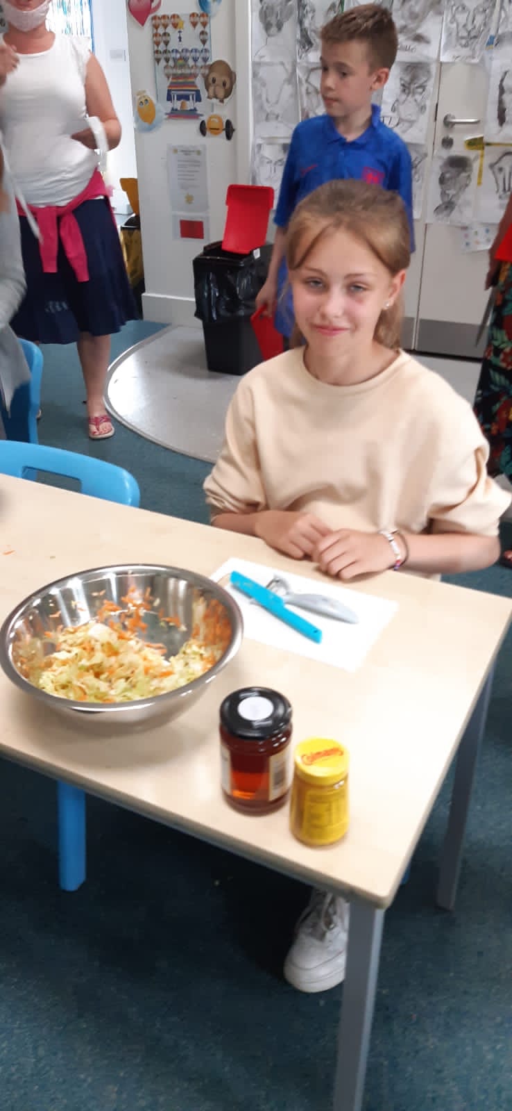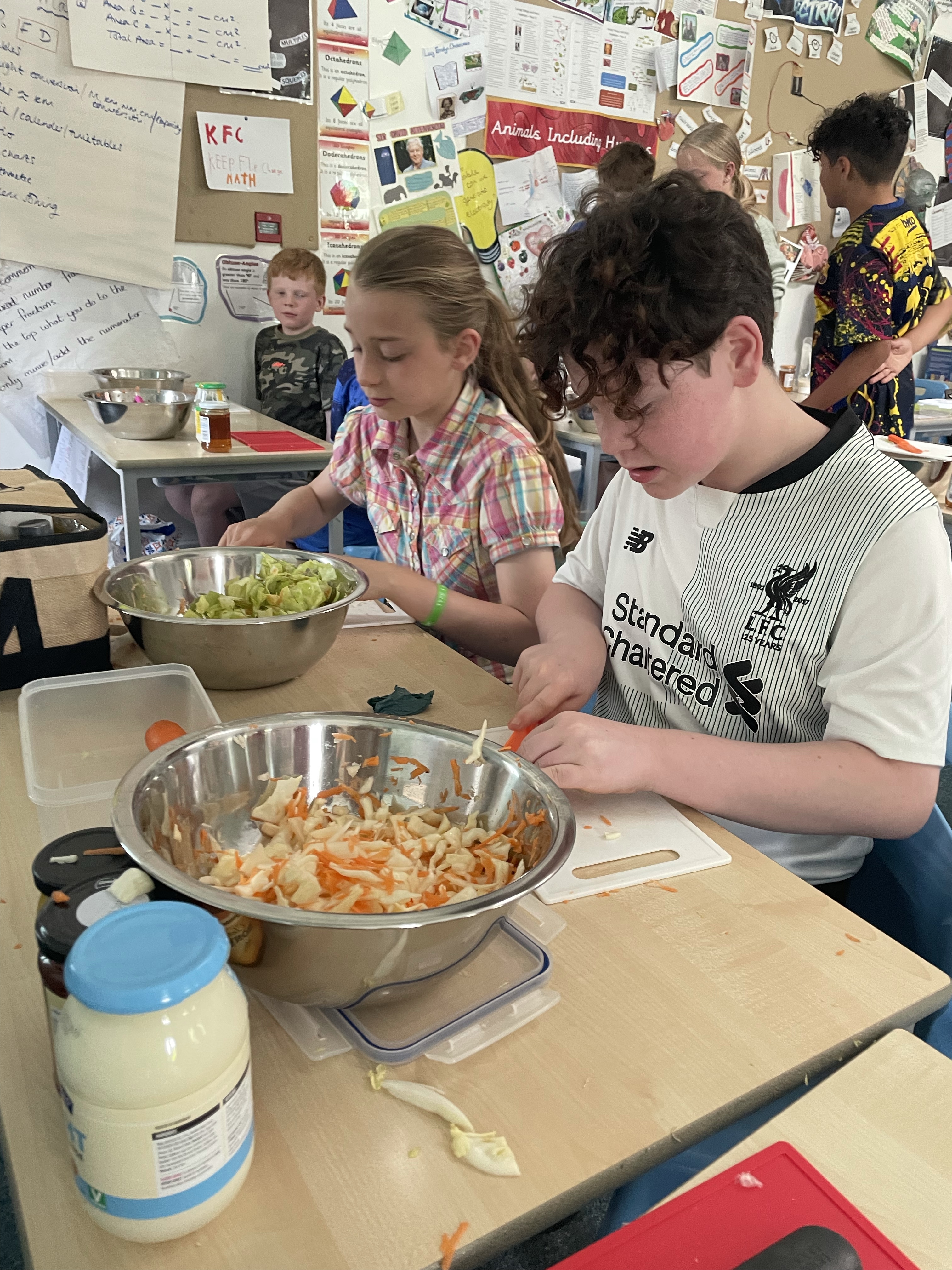Yesterday Onyx class used their peeling, chopping, slicing, mixing & grating skills to make their very own yummy coleslaw. š