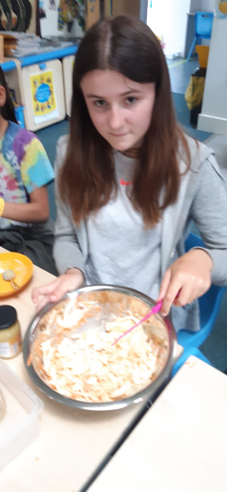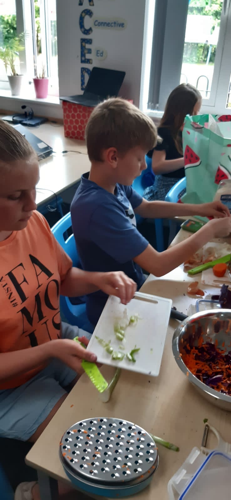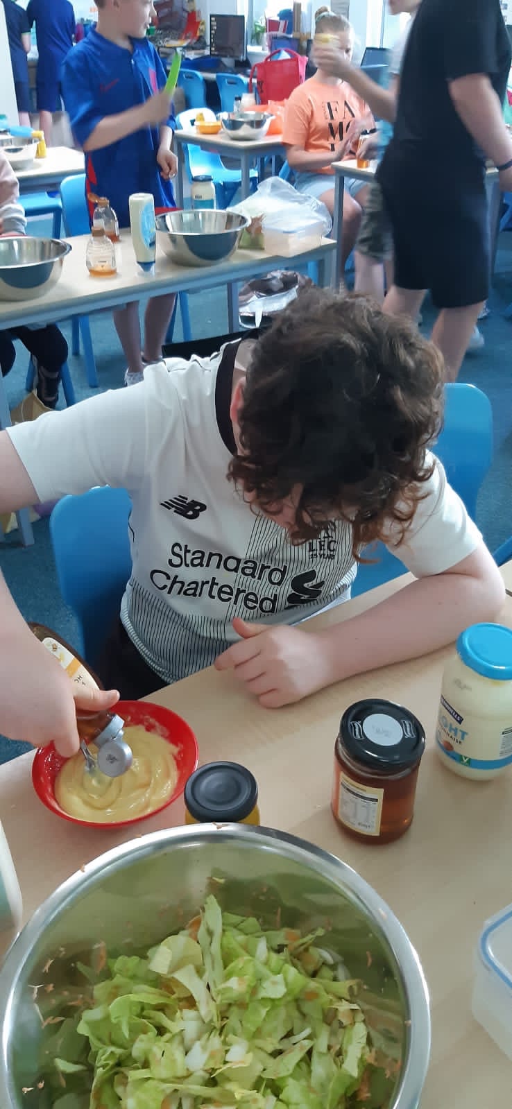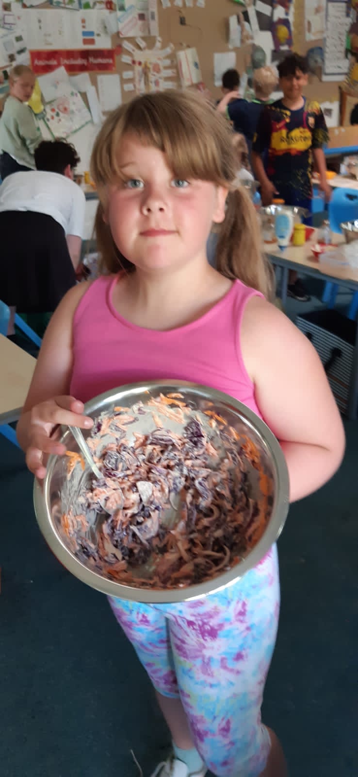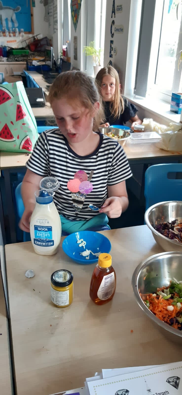 Yesterday Onyx class used their peeling, chopping, slicing, mixing & grating skills to make their very own yummy coleslaw. š