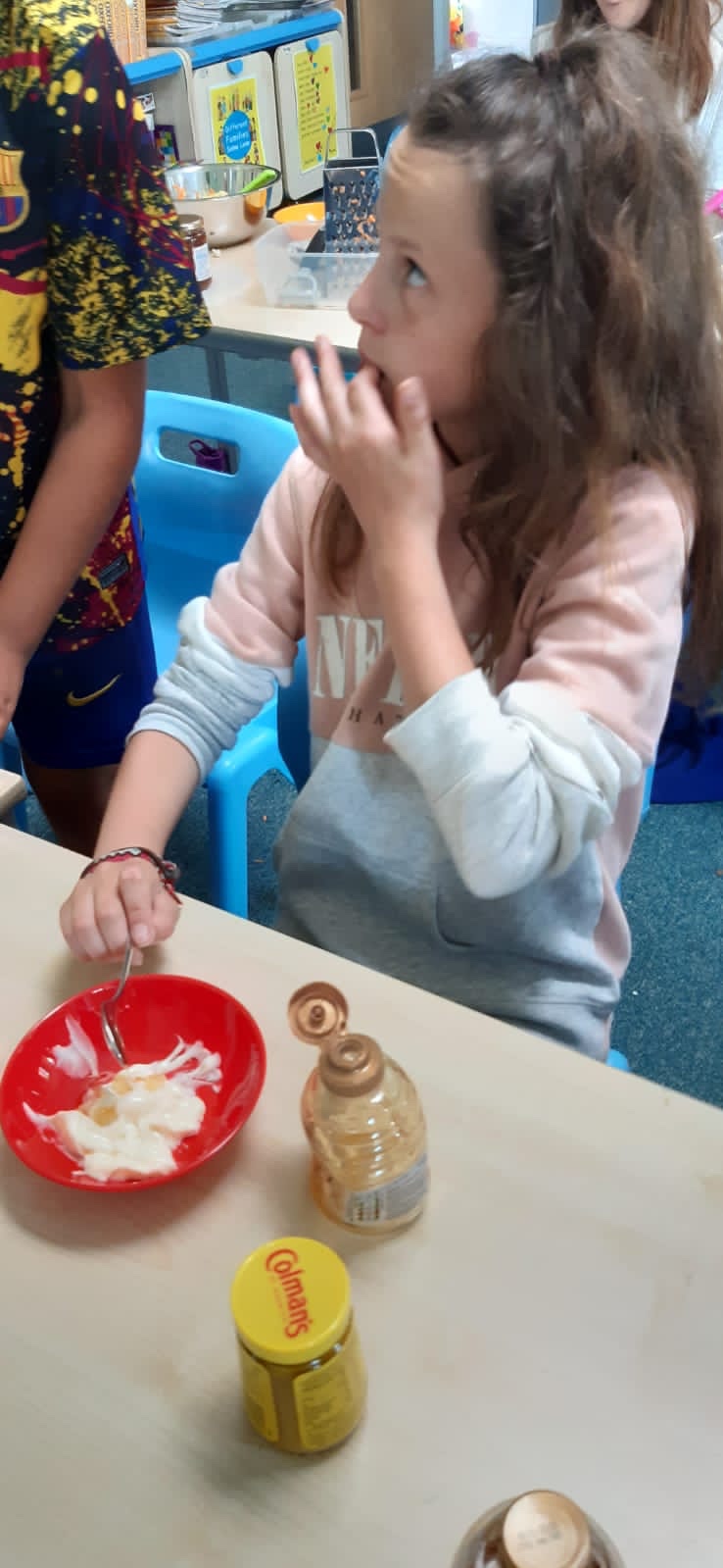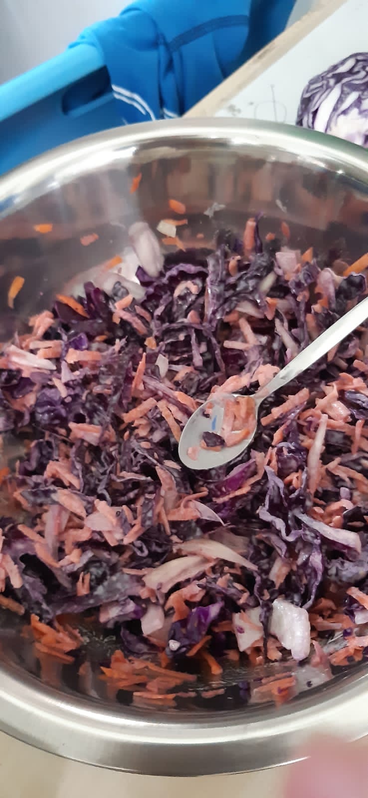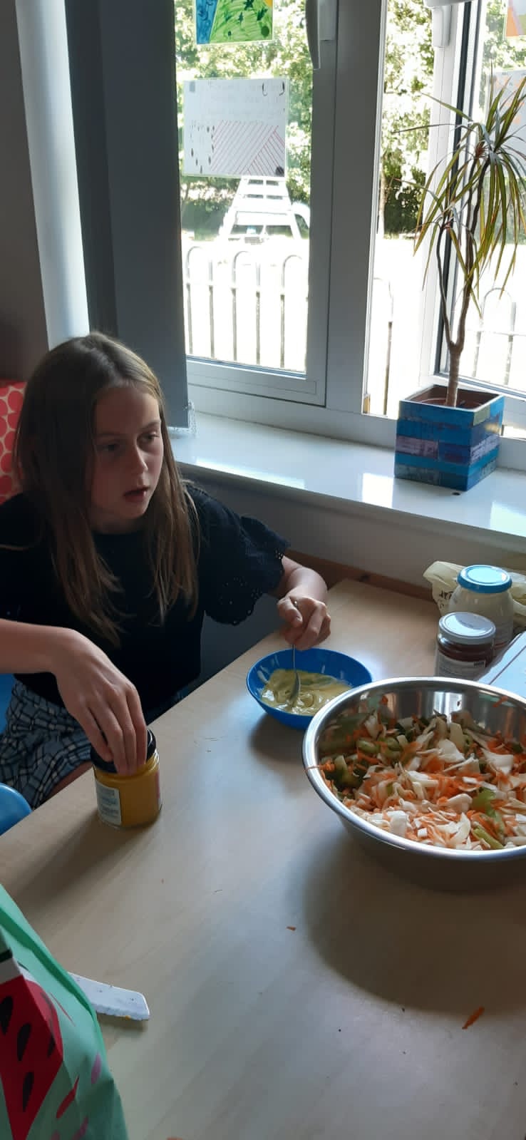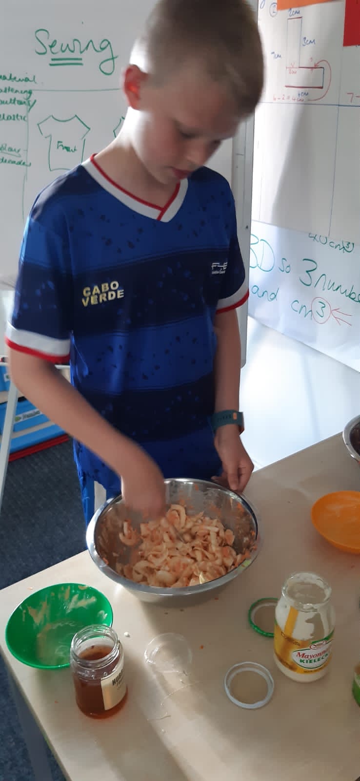 Yesterday Onyx class used their peeling, chopping, slicing, mixing & grating skills to make their very own yummy coleslaw. š