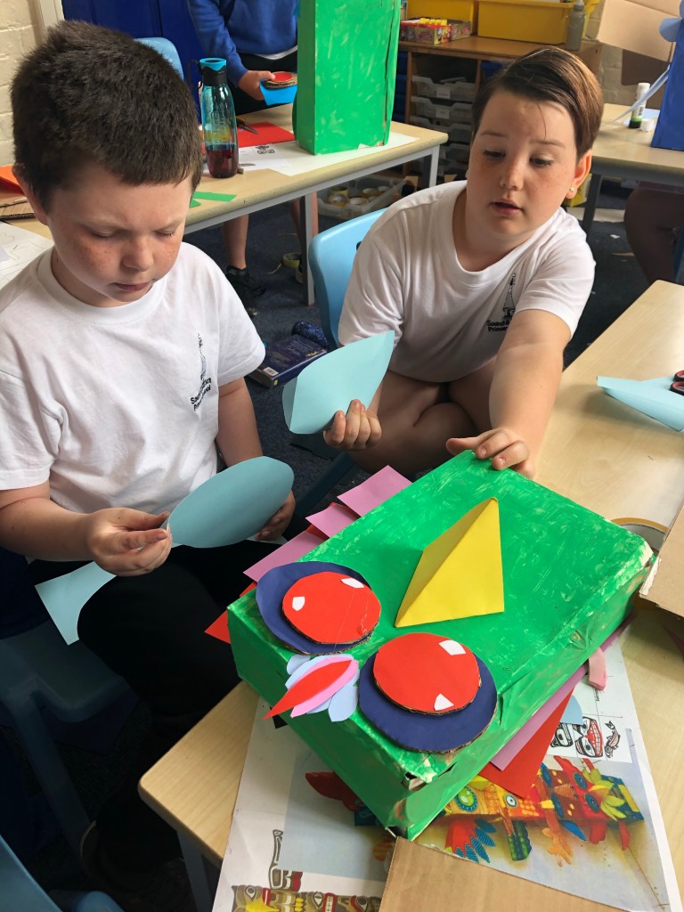 This morning, Topaz class worked hard to create their creatures for our class totem poles. They worked with a partner to plan and put together their masterpieces and the results are amazing!