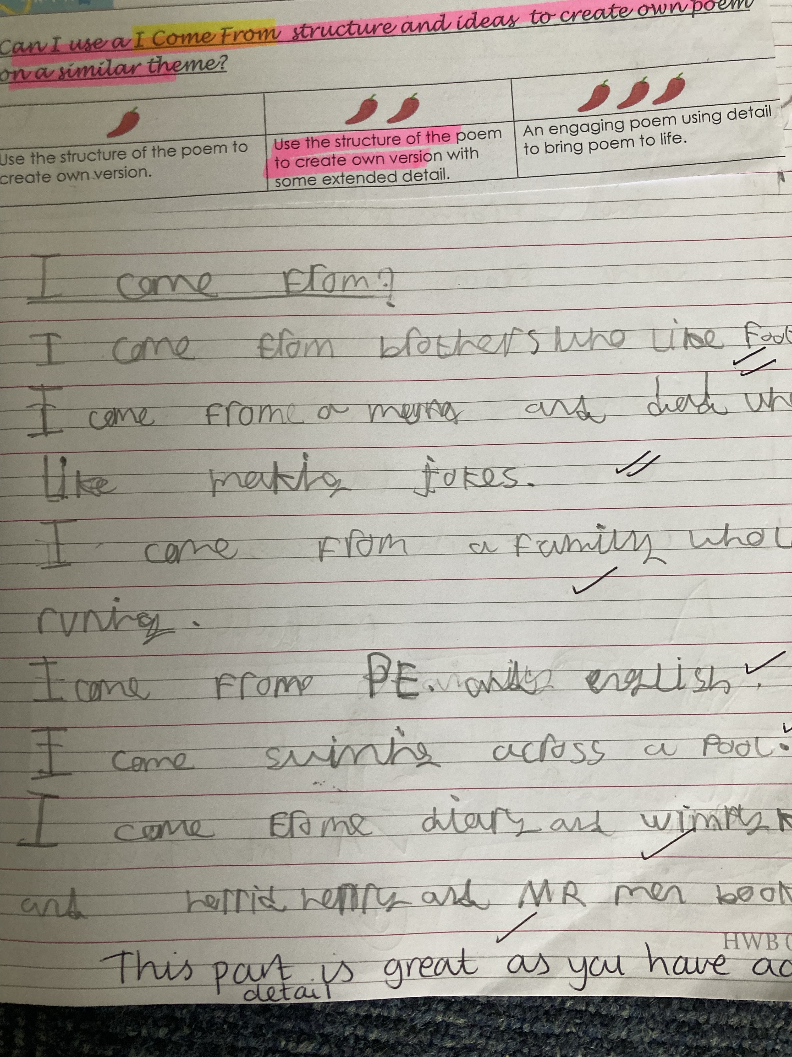 As part of National Writing Day, Topaz class read the poem “I Come From” by Robert Seatter. The children then had 5 minutes to brainstorm everything about their own lives; family, friends, homes, gardens, hobbies, activities, holidays etc..