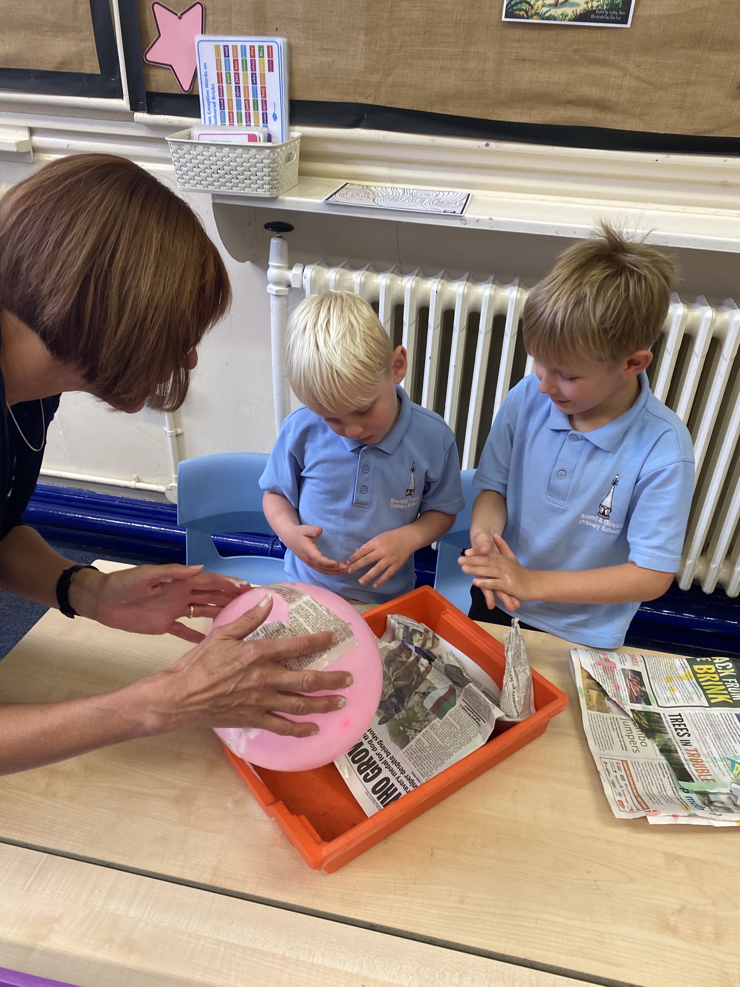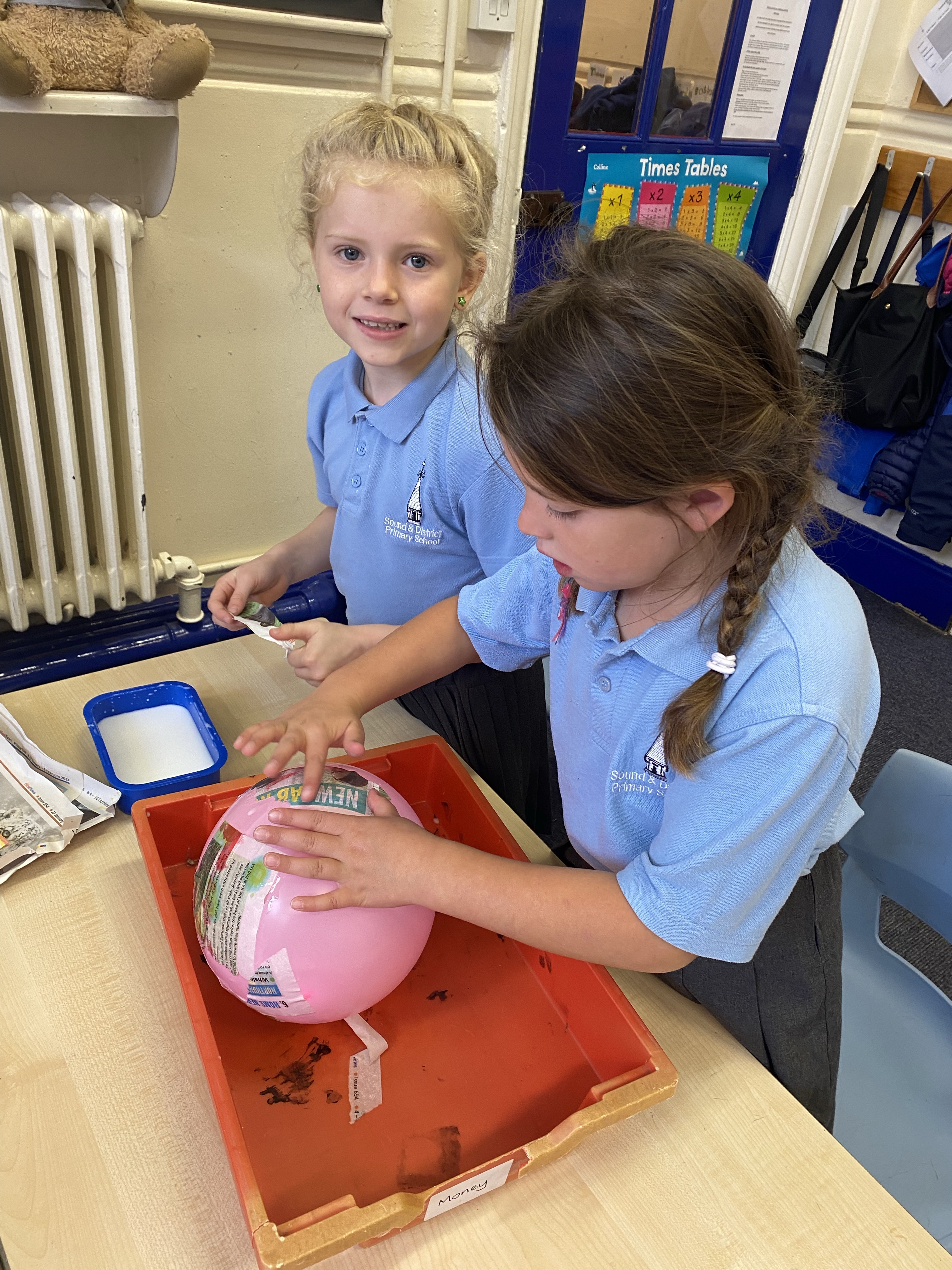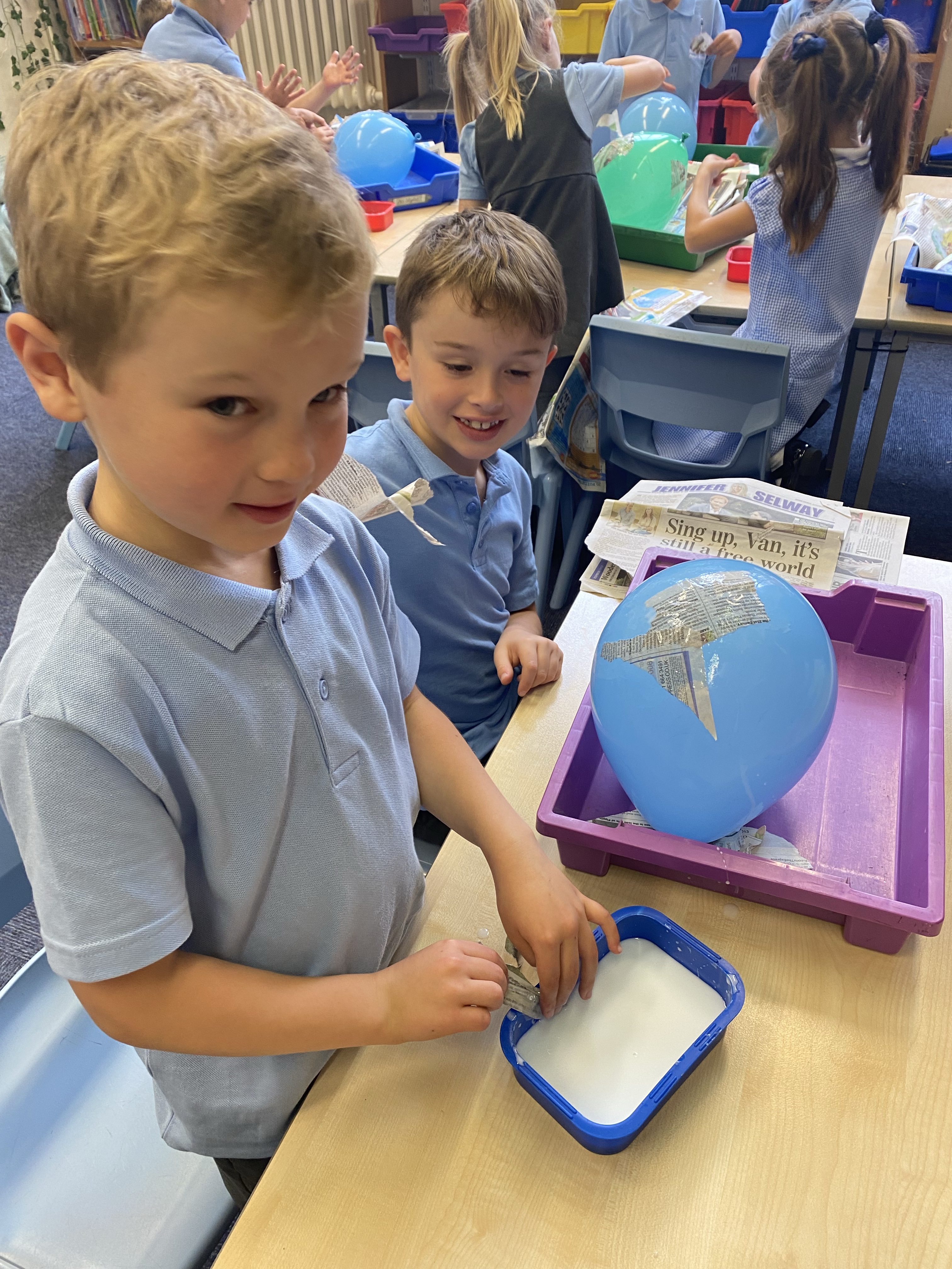 We used the papier-mâché technique to create our own dinosaur eggs! It was definitely a messy lesson!!