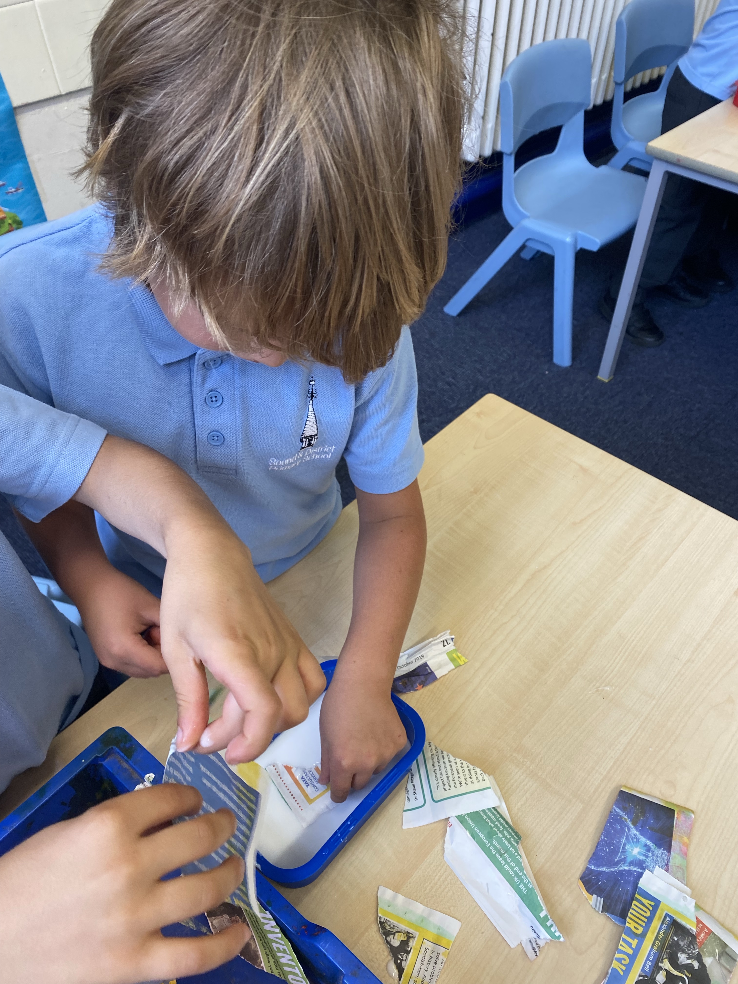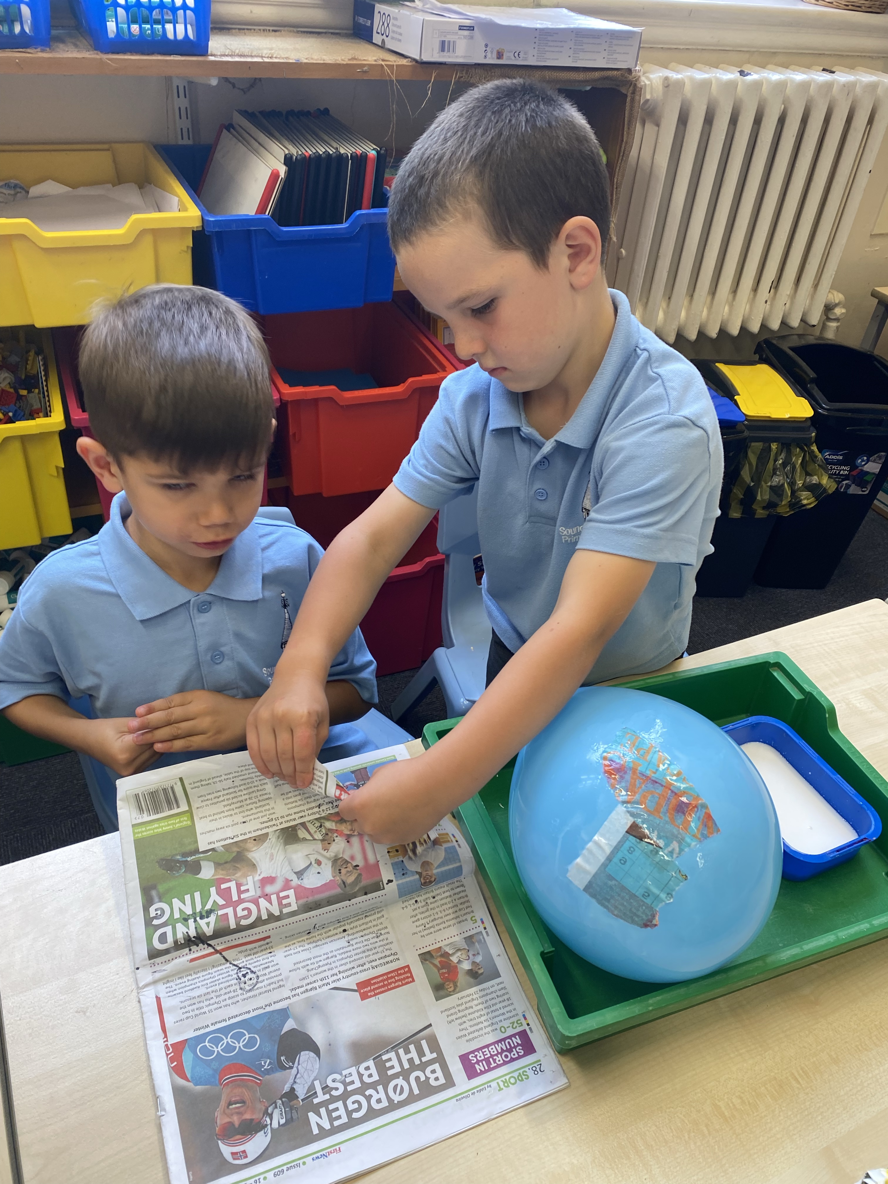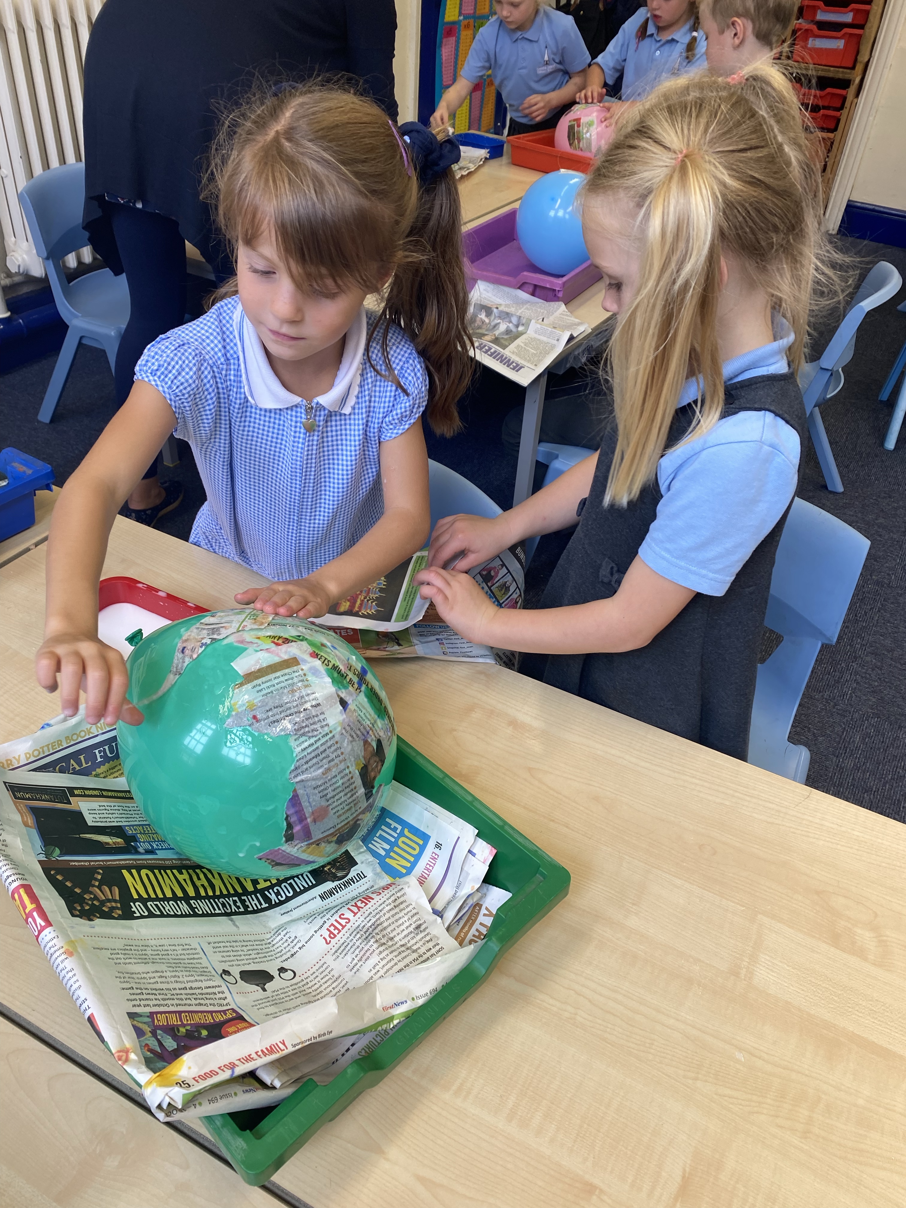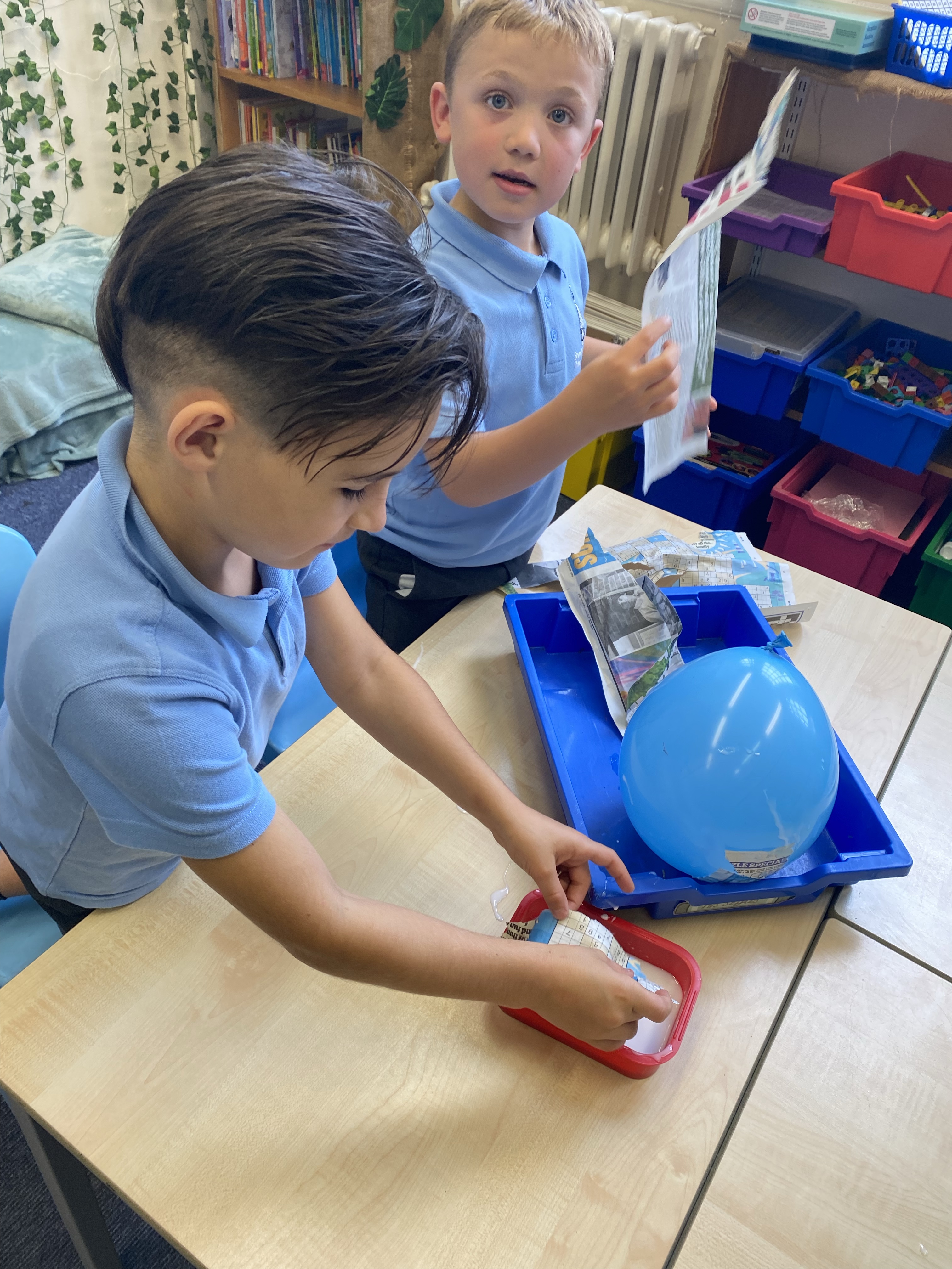 We used the papier-mâché technique to create our own dinosaur eggs! It was definitely a messy lesson!!