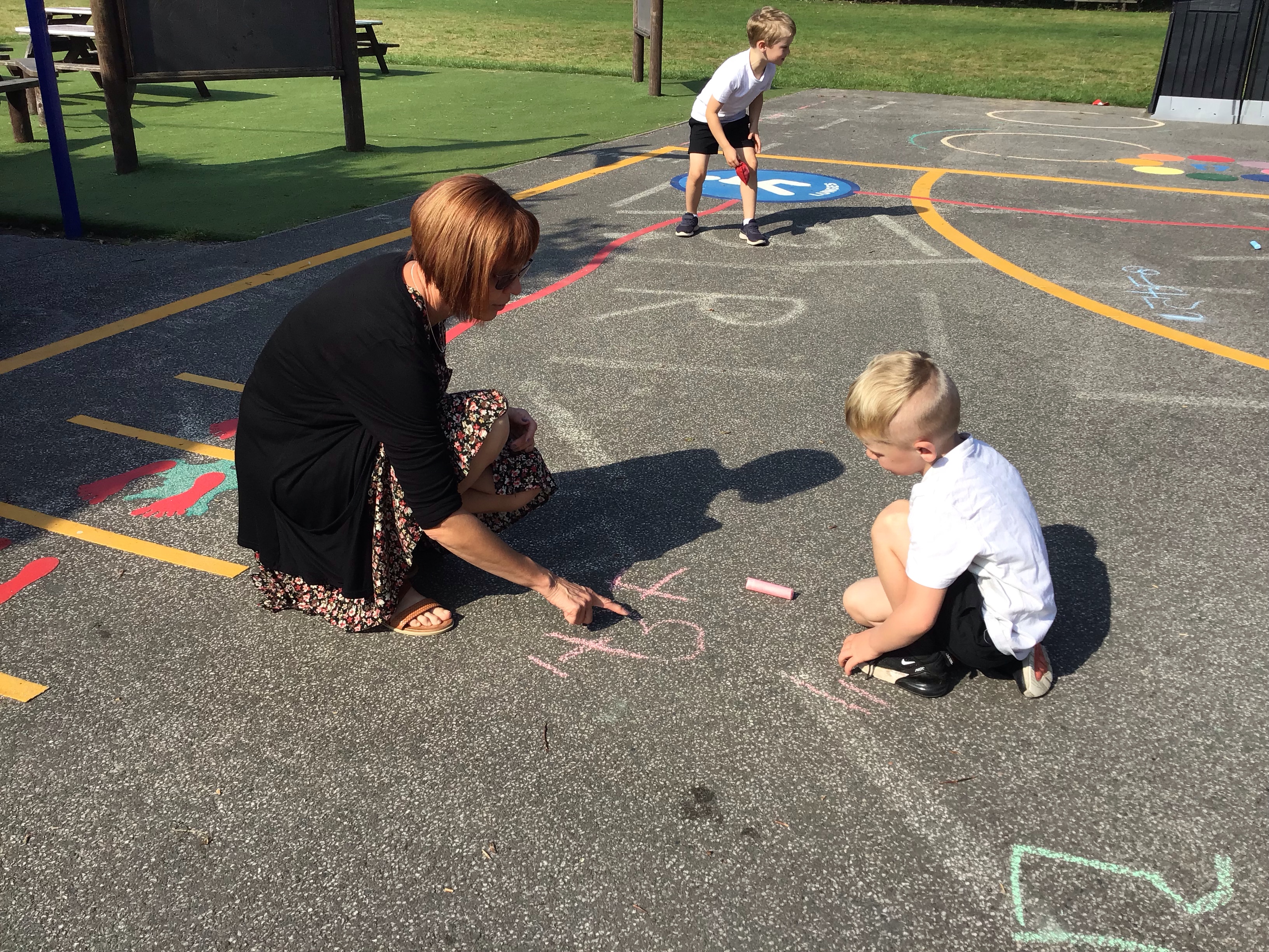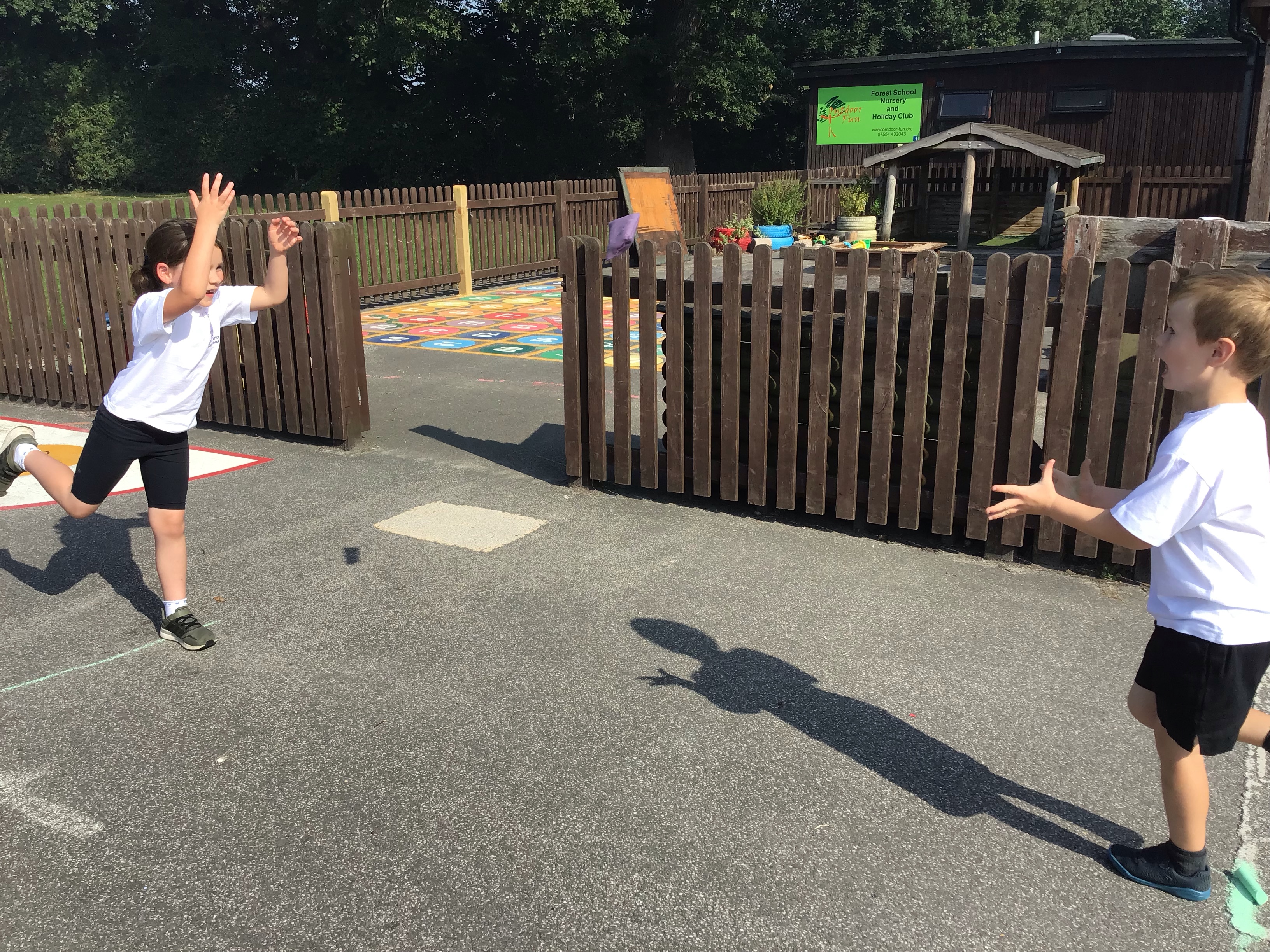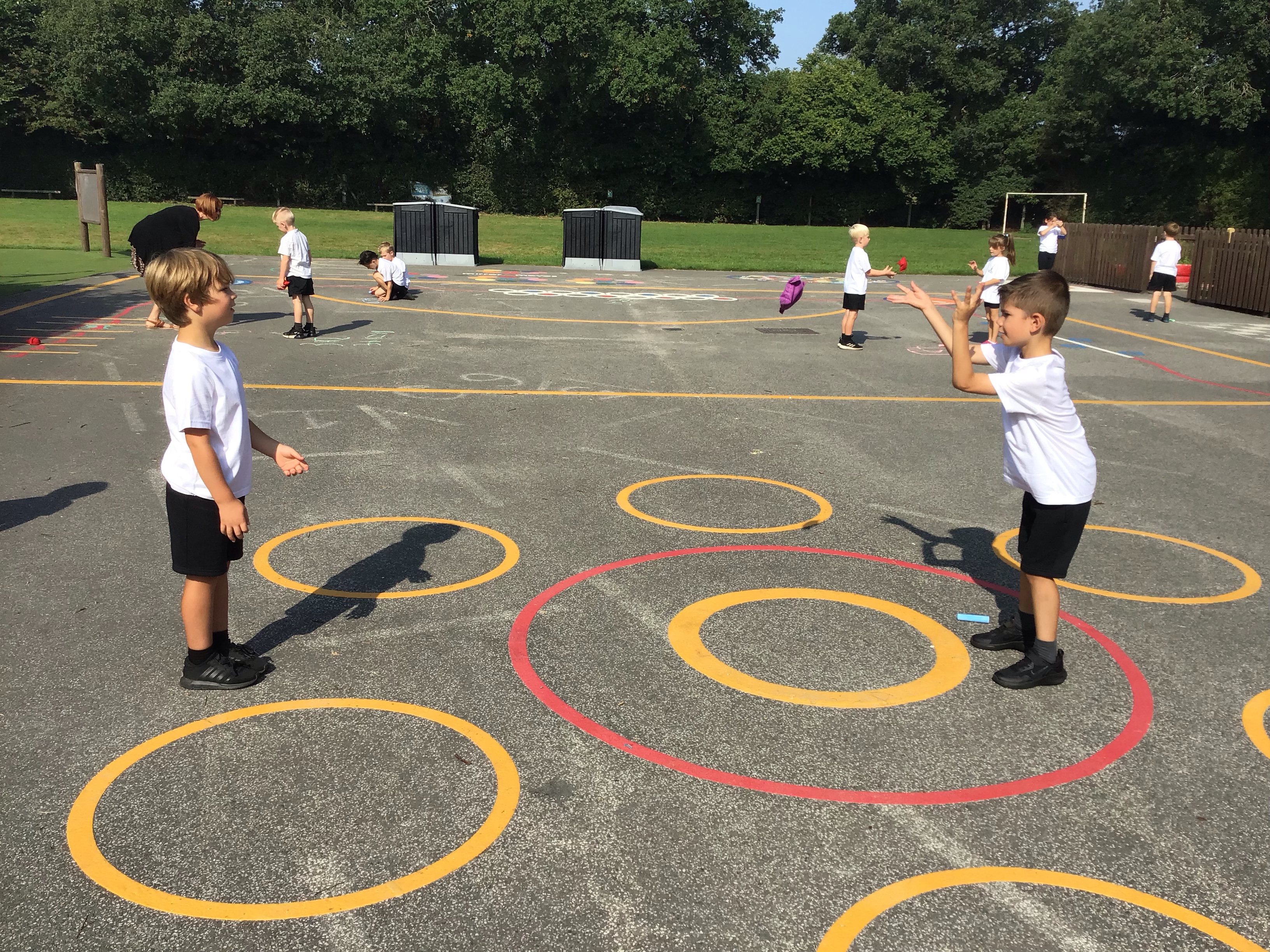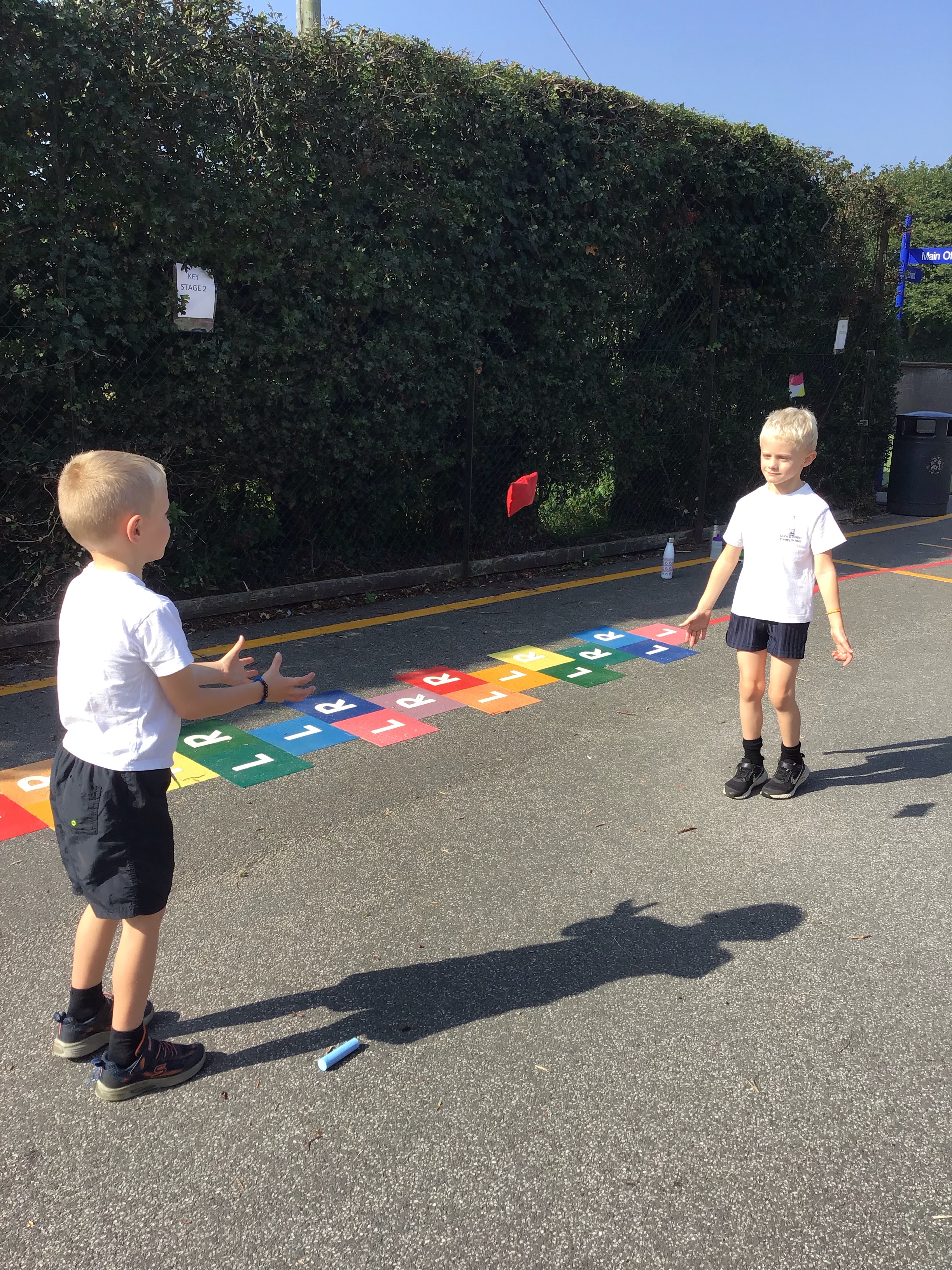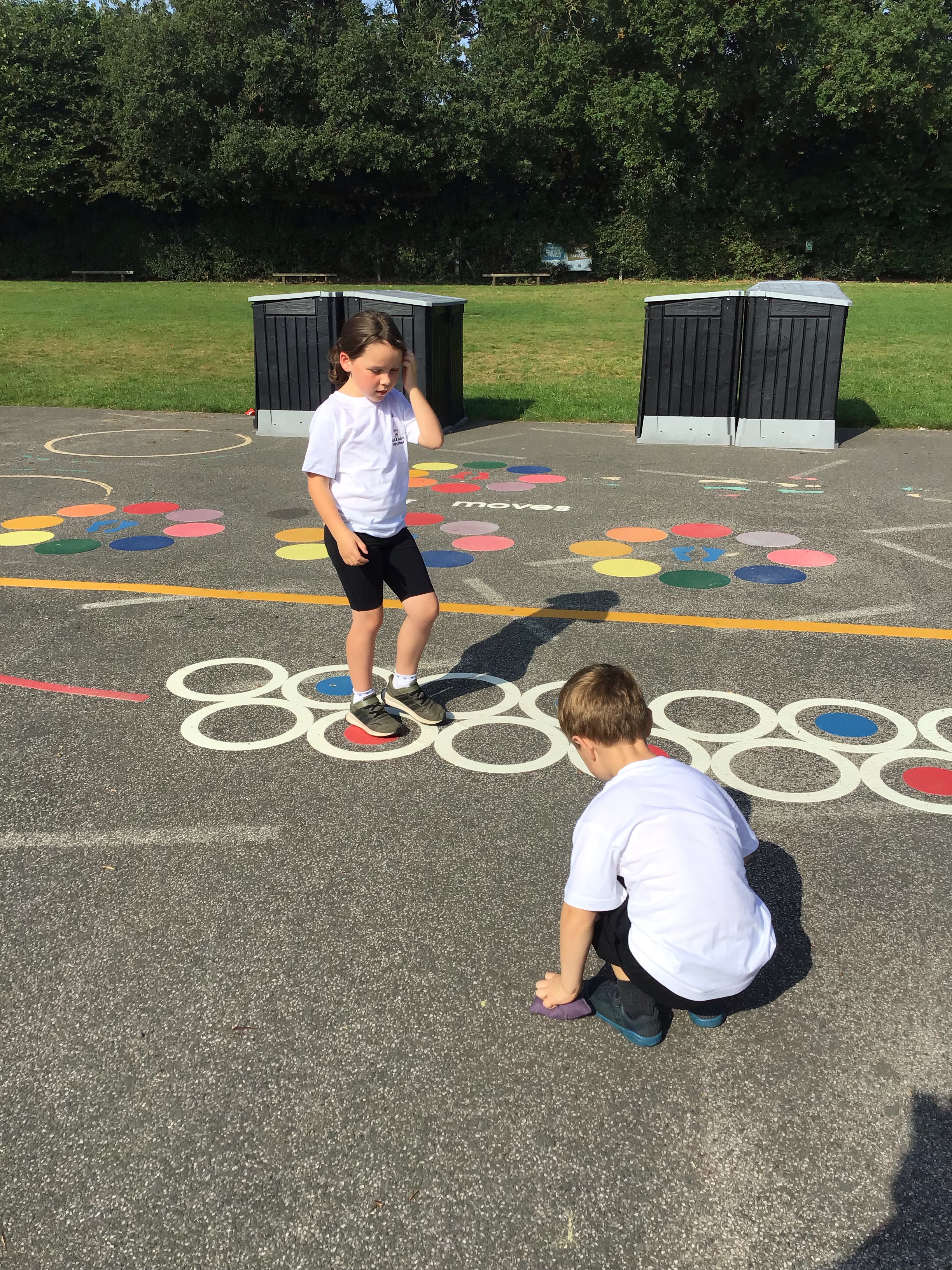Our mission was to collect numbers with our partner and solve addition sums together! We used chalk and bean bags to complete our Maths mission!