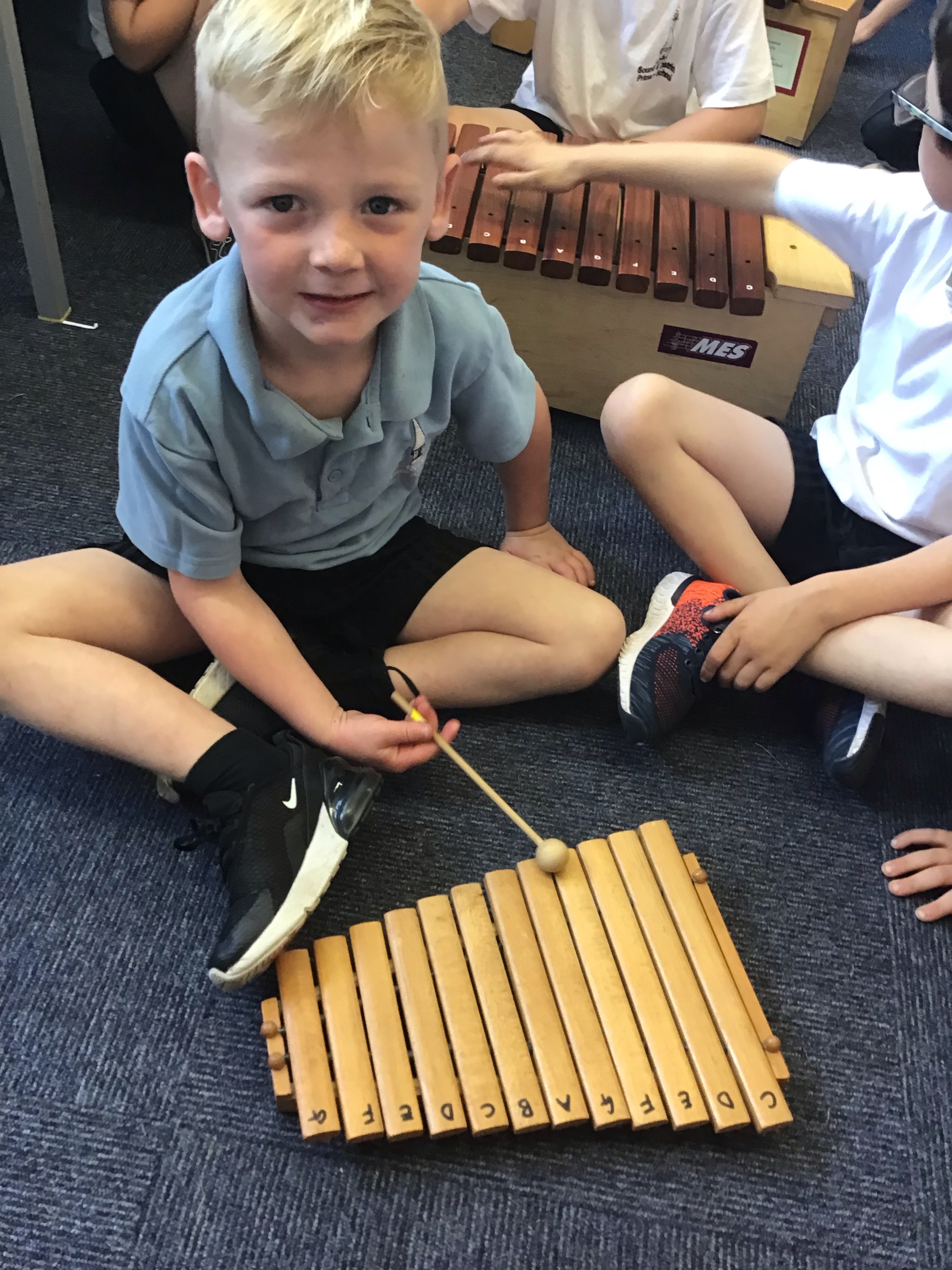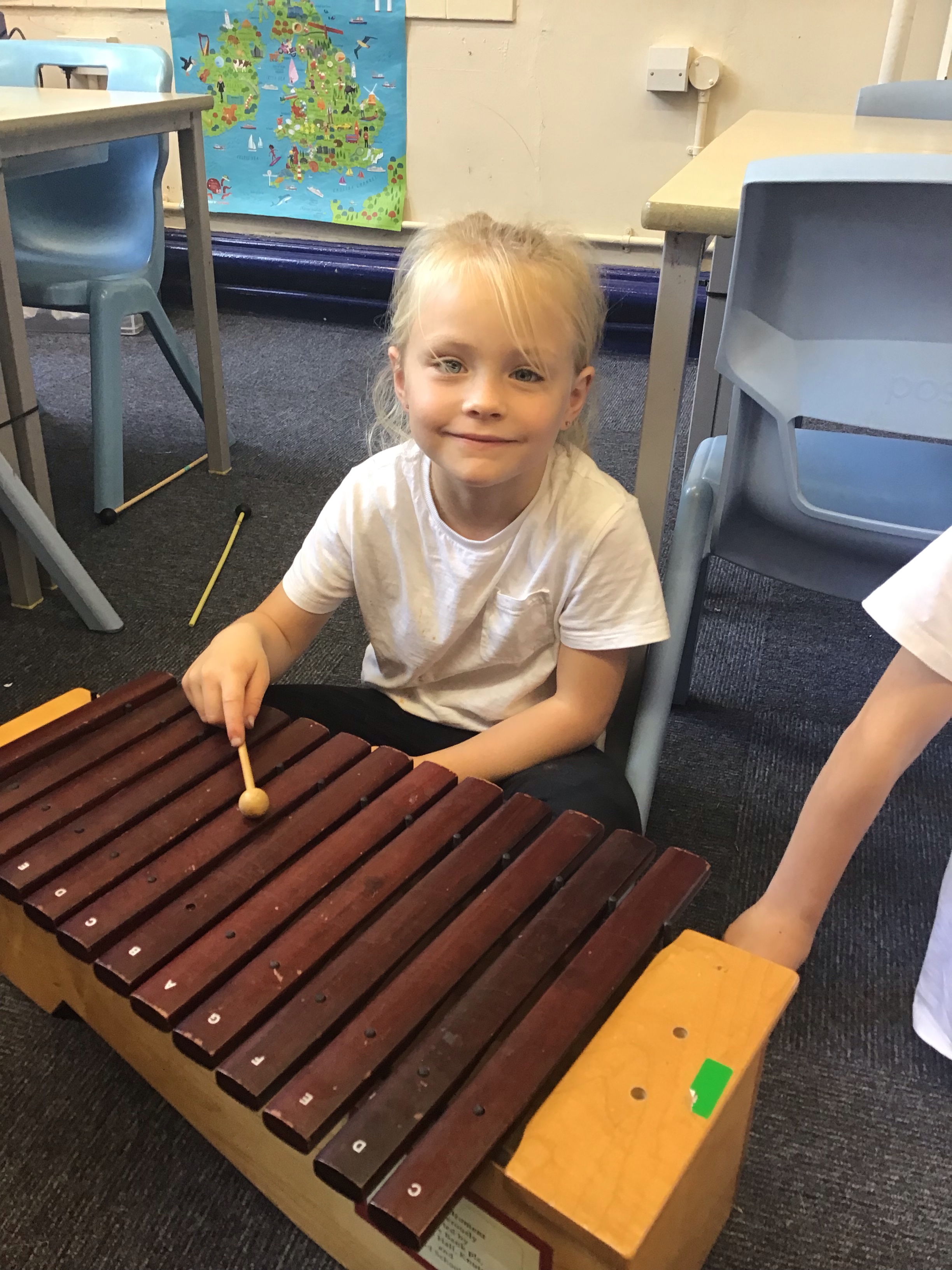 We then listened to our song for the half term, ‘Hands, Feet, Heart’ and began to learn to how play a glockenspiel along to the beat!