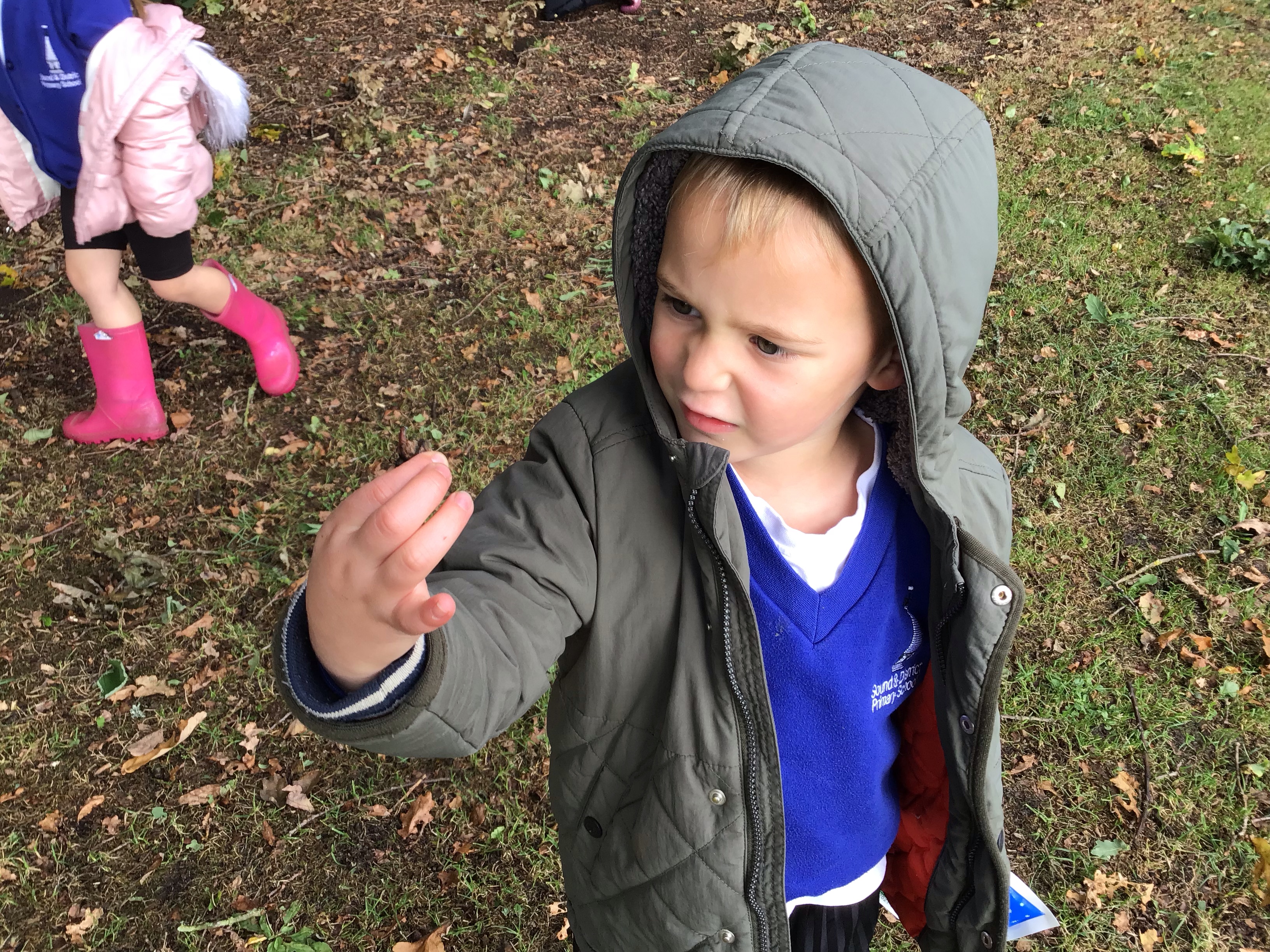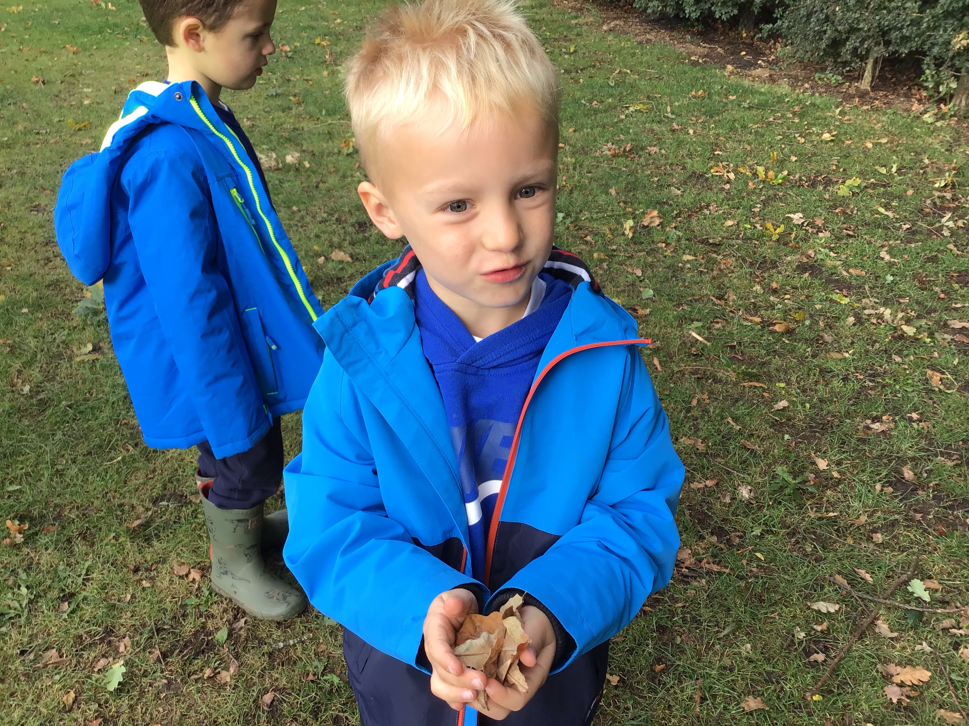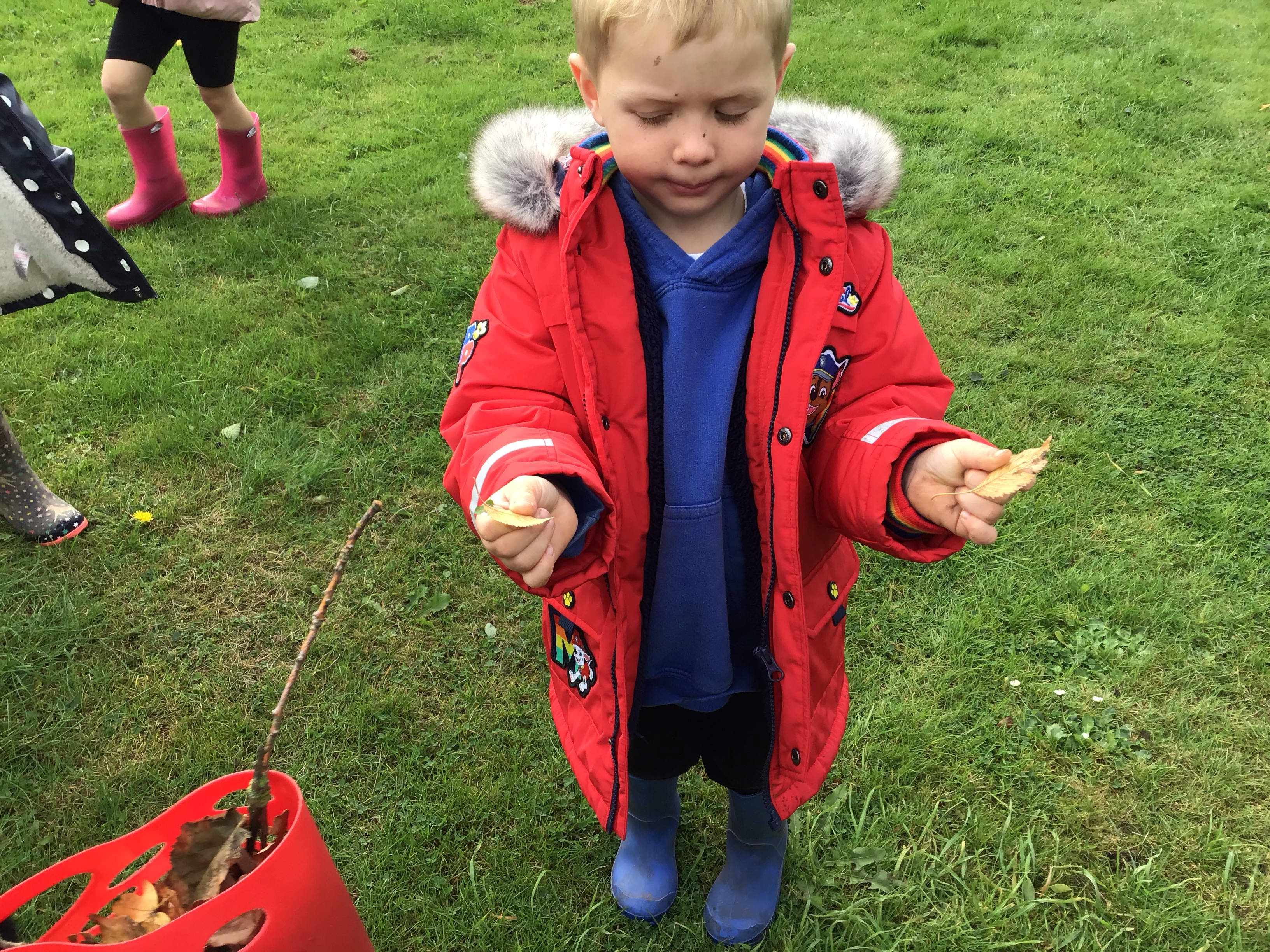 Today Diamond Class wrapped up nice and warm and went on a lovely Autumn walk. We were searching for signs of Autumn around our school grounds. We noticed that lots of the leaves on the trees were starting to change colour. We spotted yellow, orange, brown and red leaves on the trees and the ground.šš