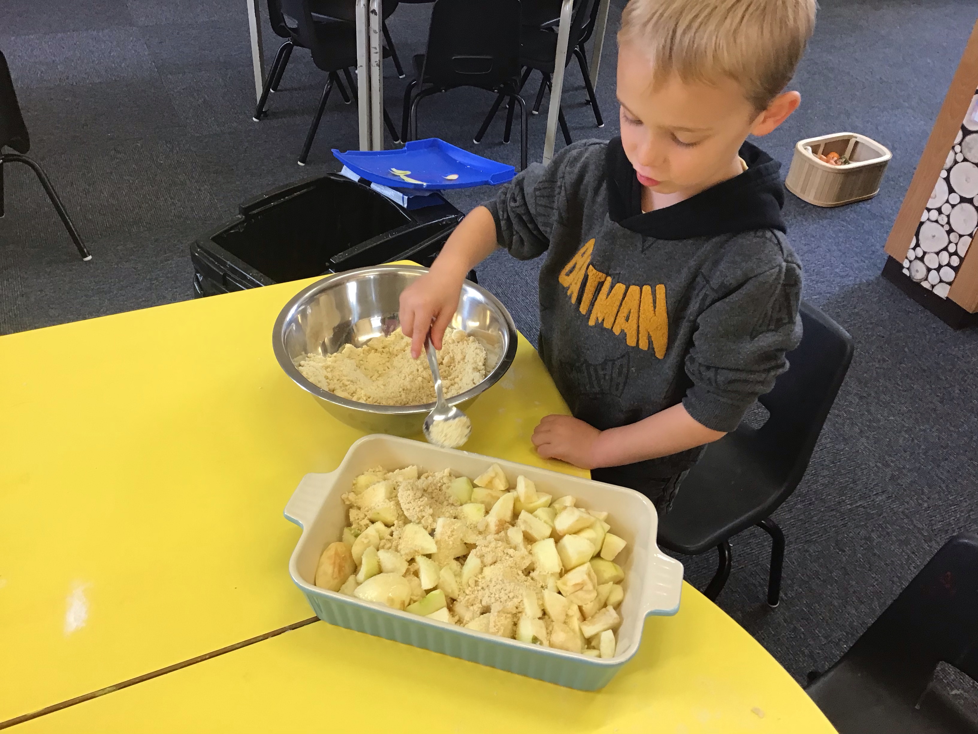 Today Diamond Class had lots of fun making an apple crumble with the apples we collected on our Autumn walk. We worked as a team to create the tasty treat! We learned why it is important to wash our hands before we start cooking and how to be safe around knives. Diamond Class were amazing at cooking! I suspect this will be the first of many tasty treats this year! 😀💎