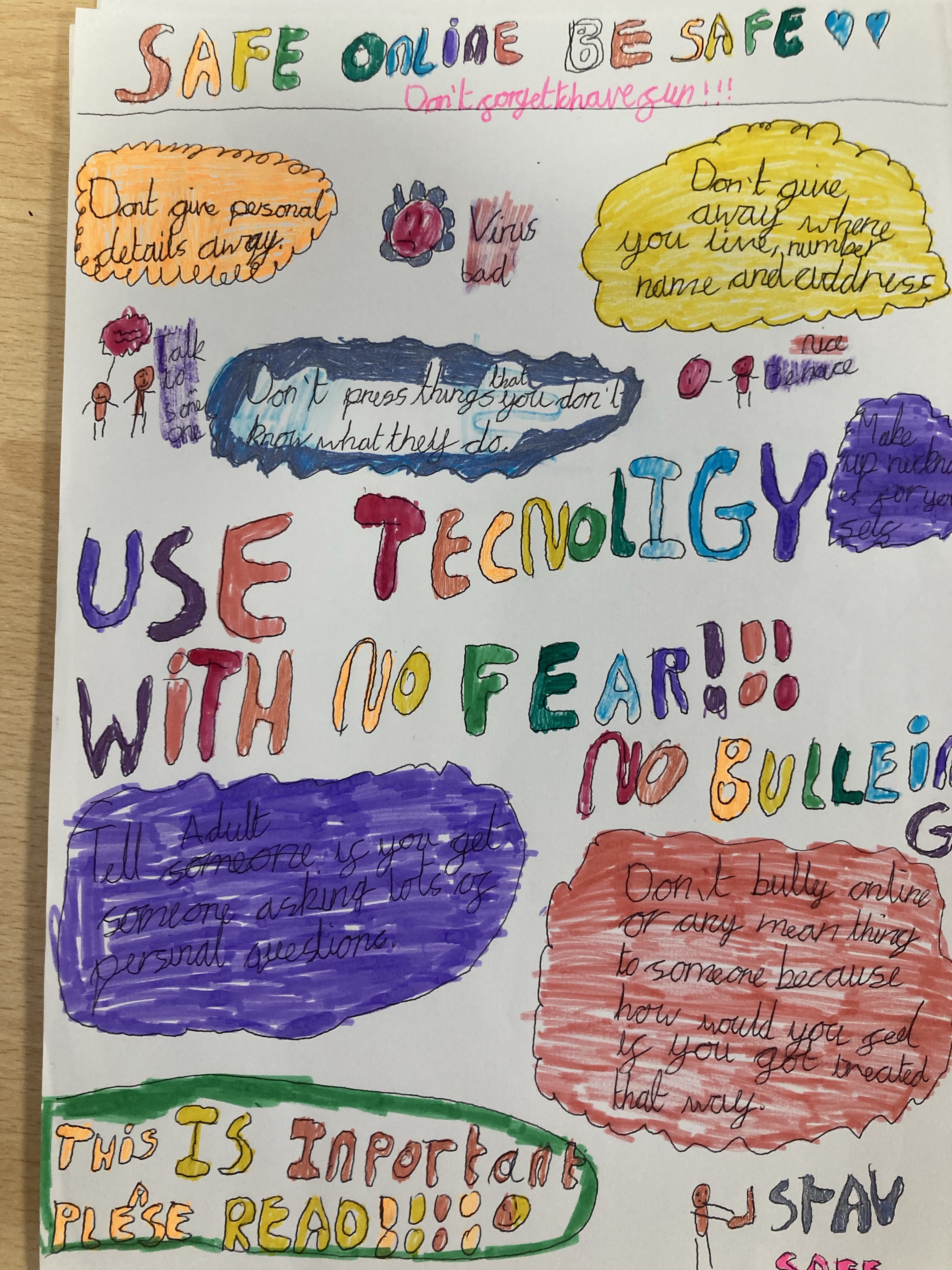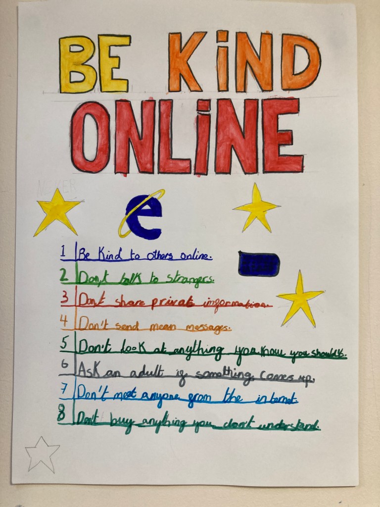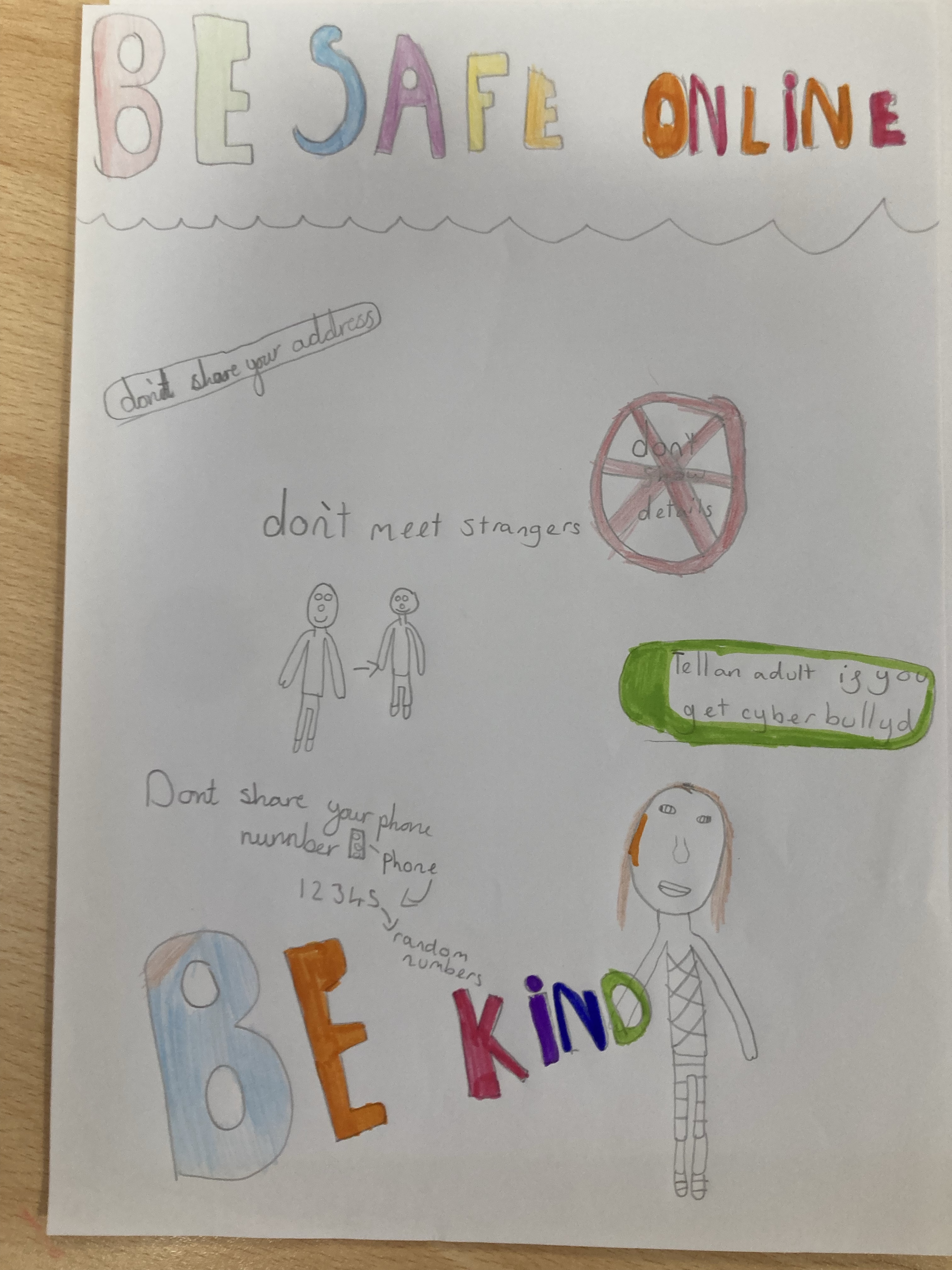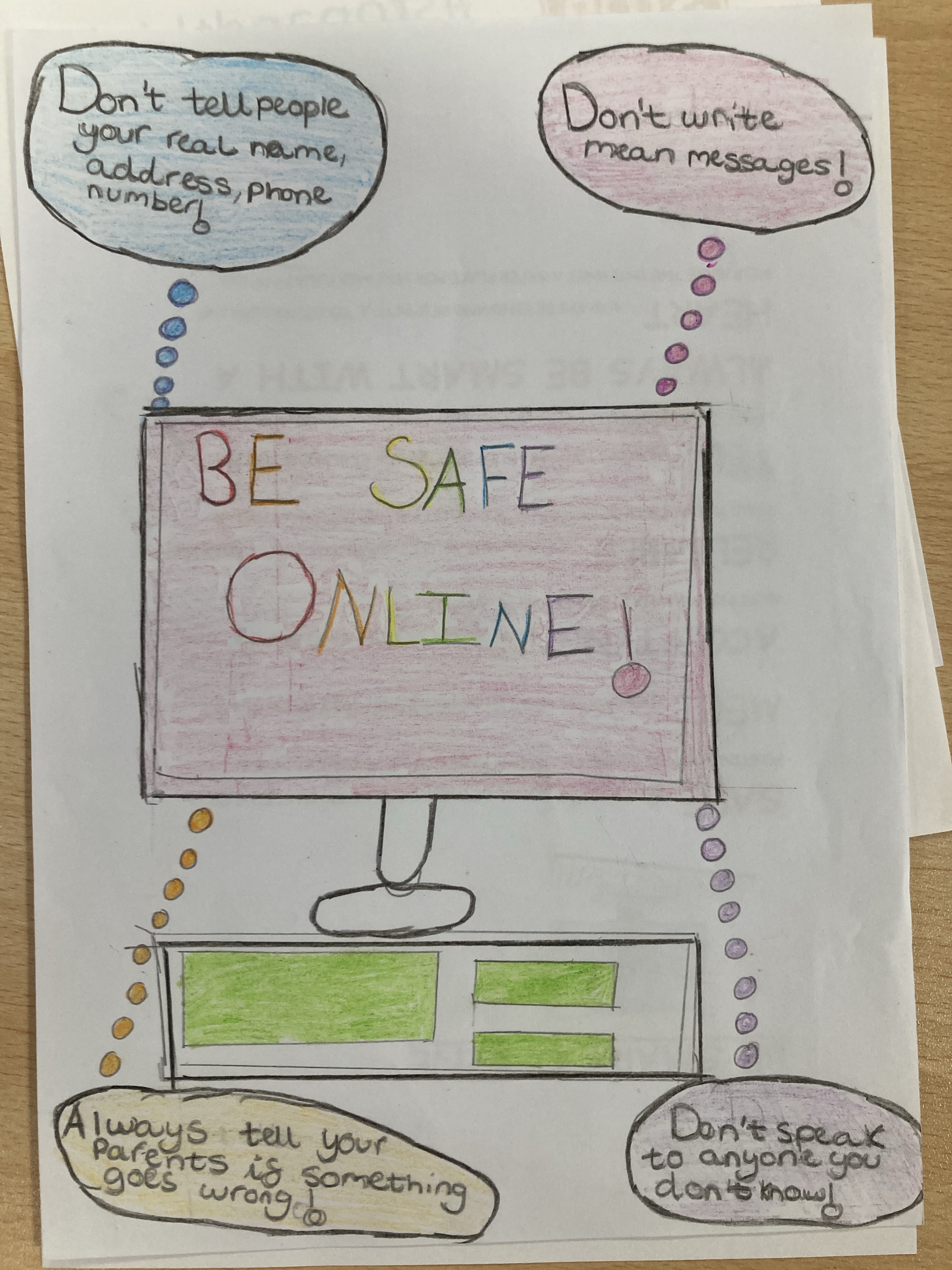 Over the past few weeks, we have been thinking about how to be safe online. The children collated all their learning and created fantastic posters to share the message and remind us all how to stay safe online. These are now displayed around the school and classroom.