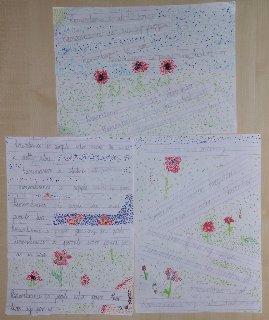 As part of our learning about remembrance day we created list poems focusing on what remembrance is.