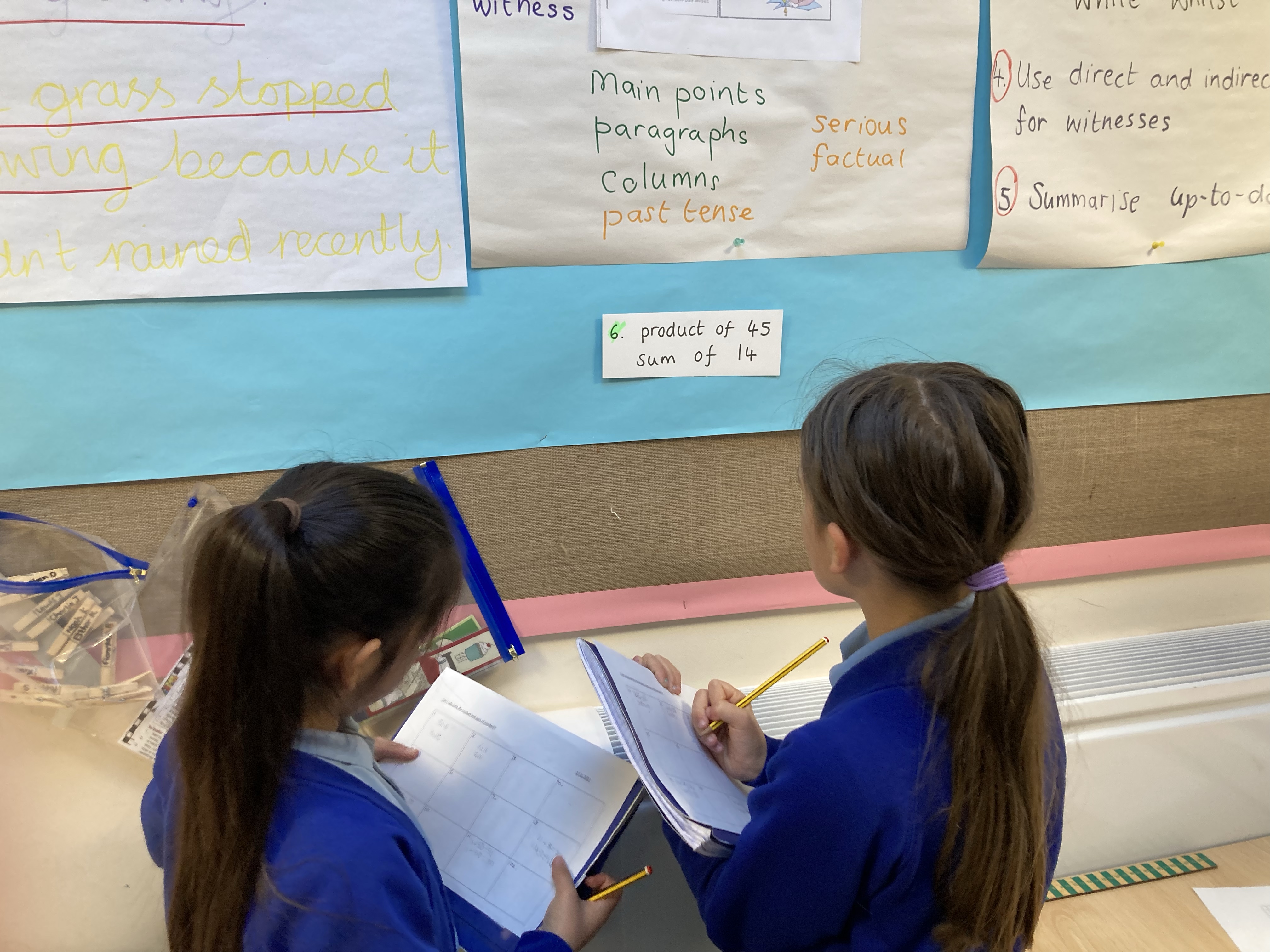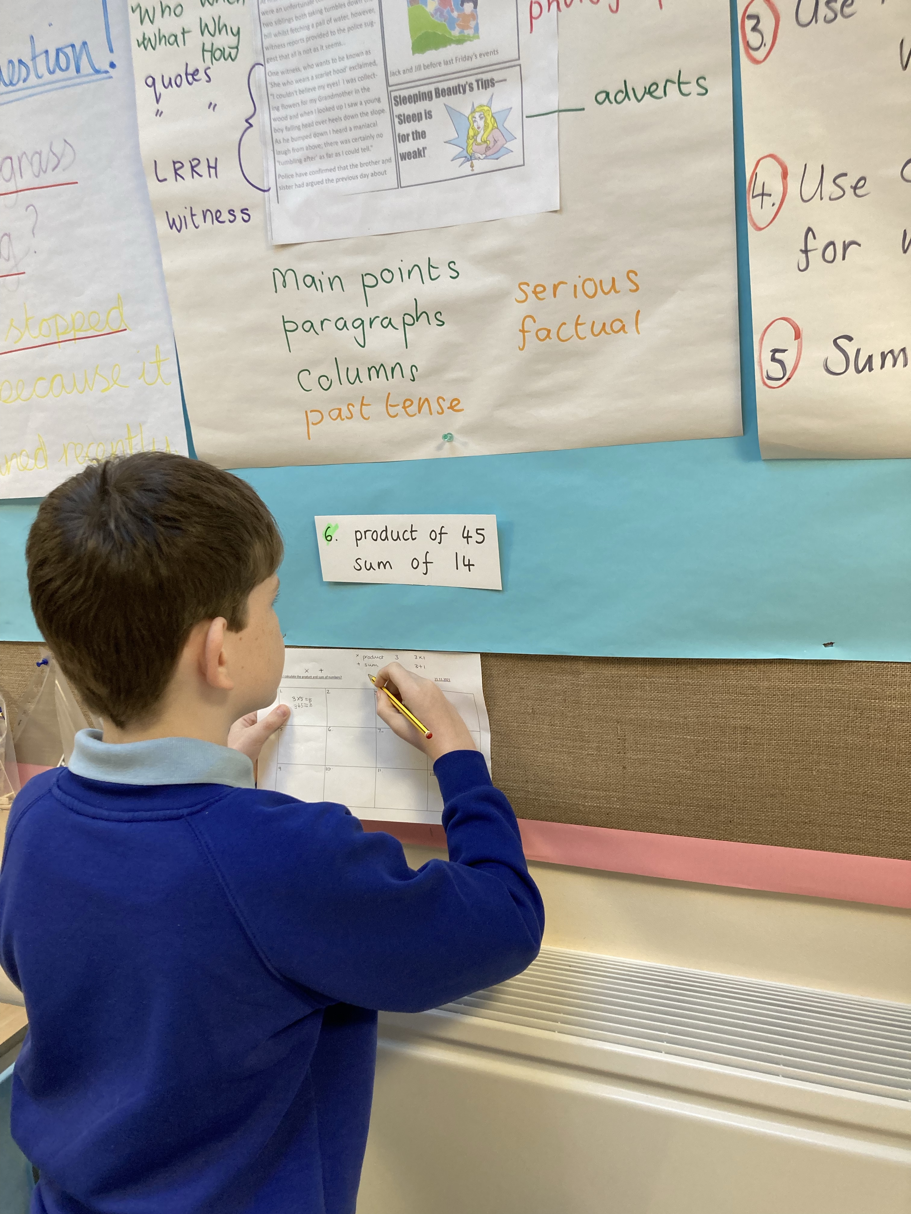 The children in Topaz Class enjoyed working with a partner to solve product and sum problems around the classroom.