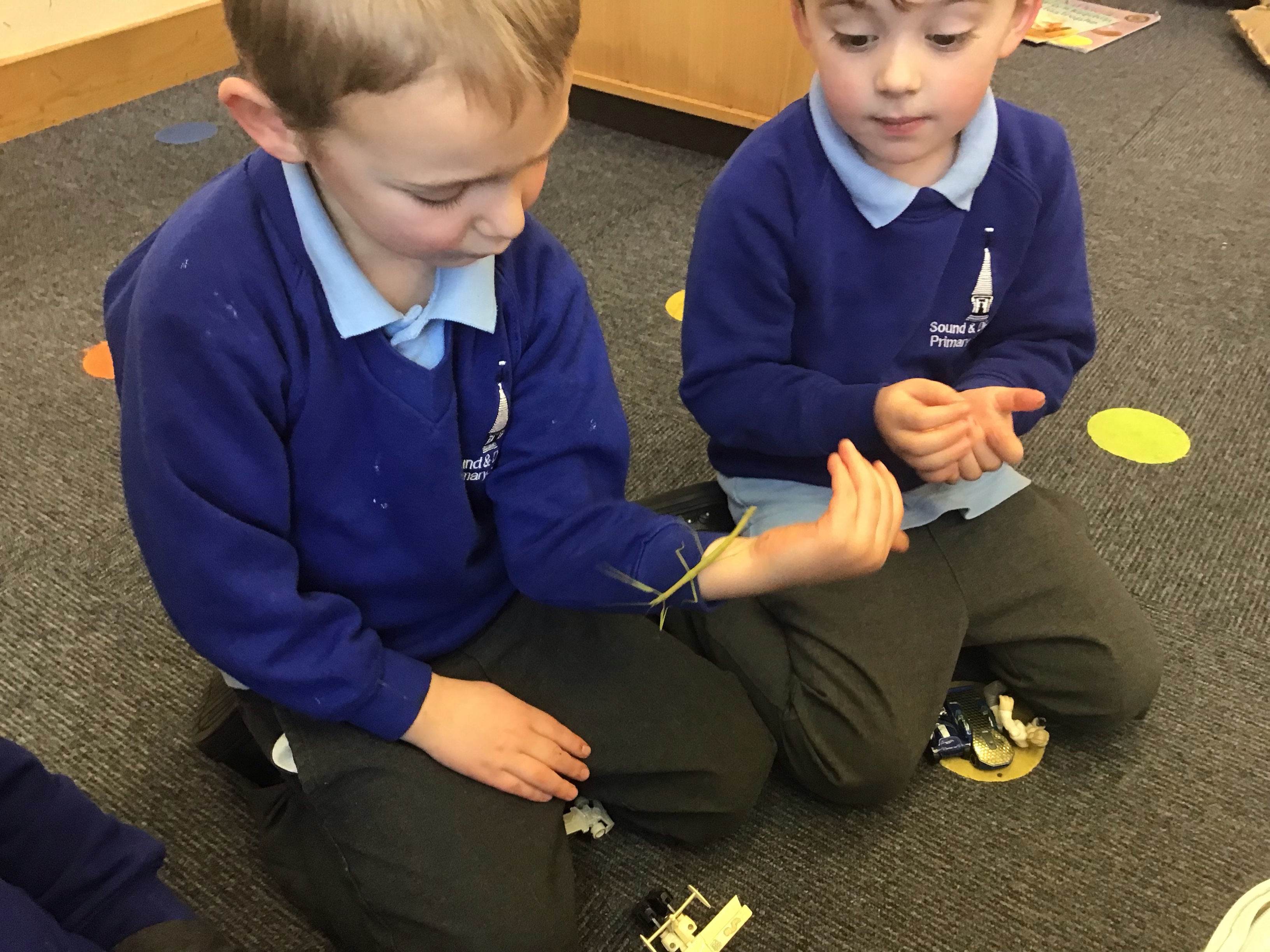 We talked about why they have red legs, what they eat and drink and how we look after them! The children had the chance to hold them if they wanted and lots were a little nervous but tried anyway!