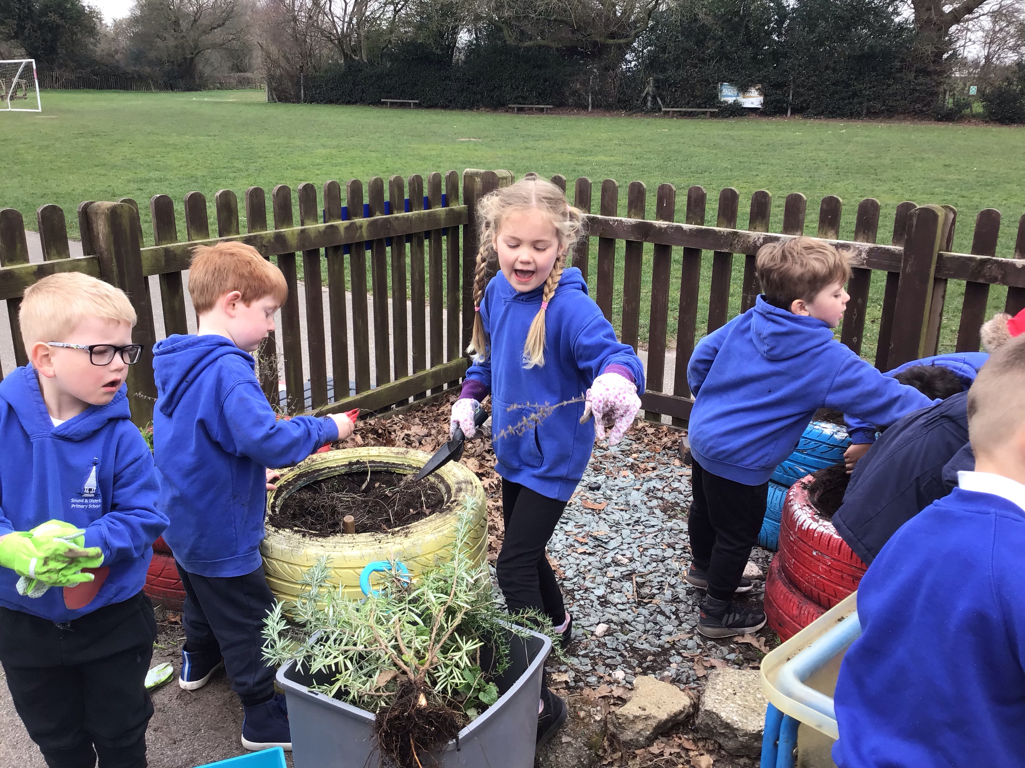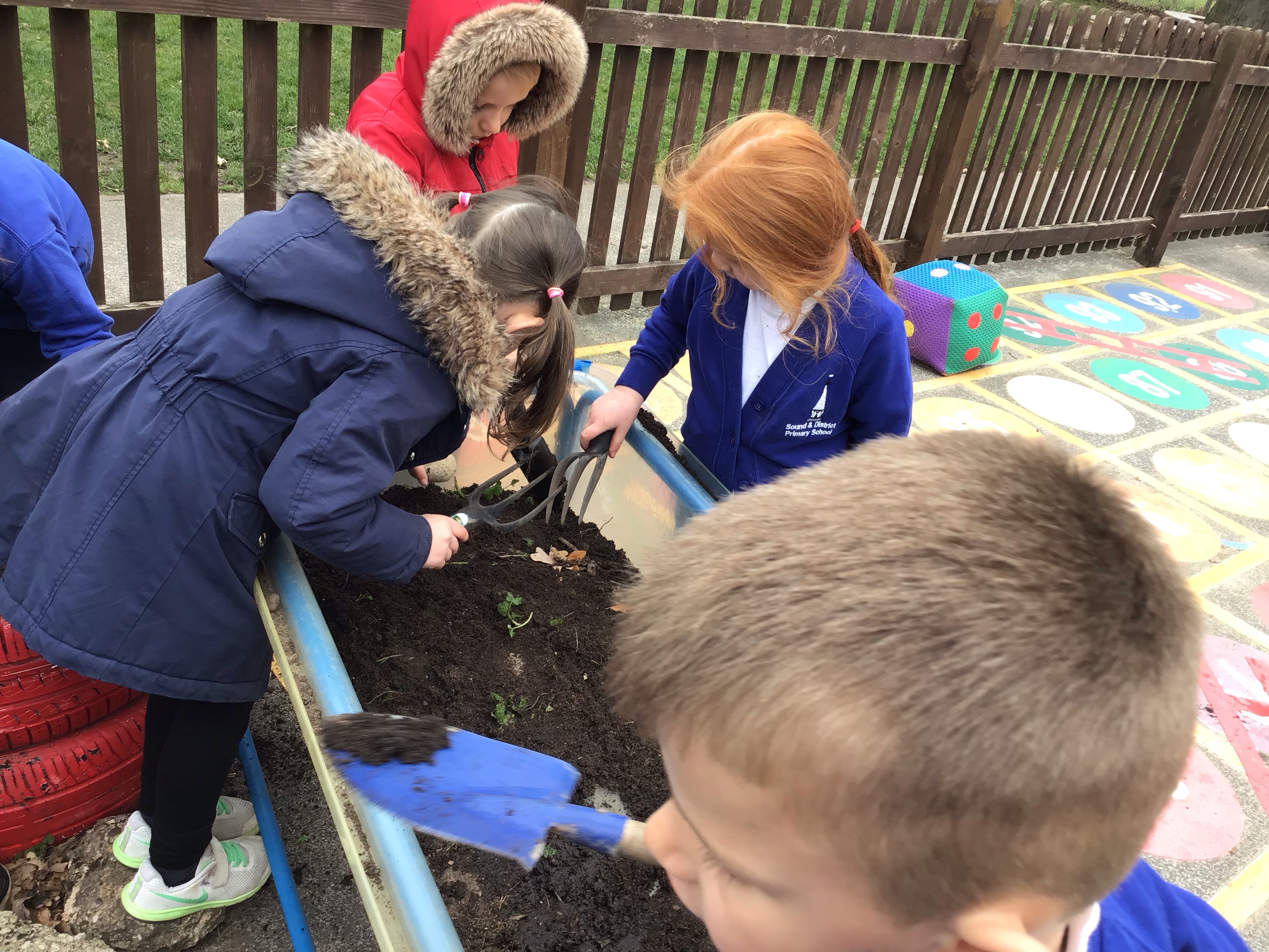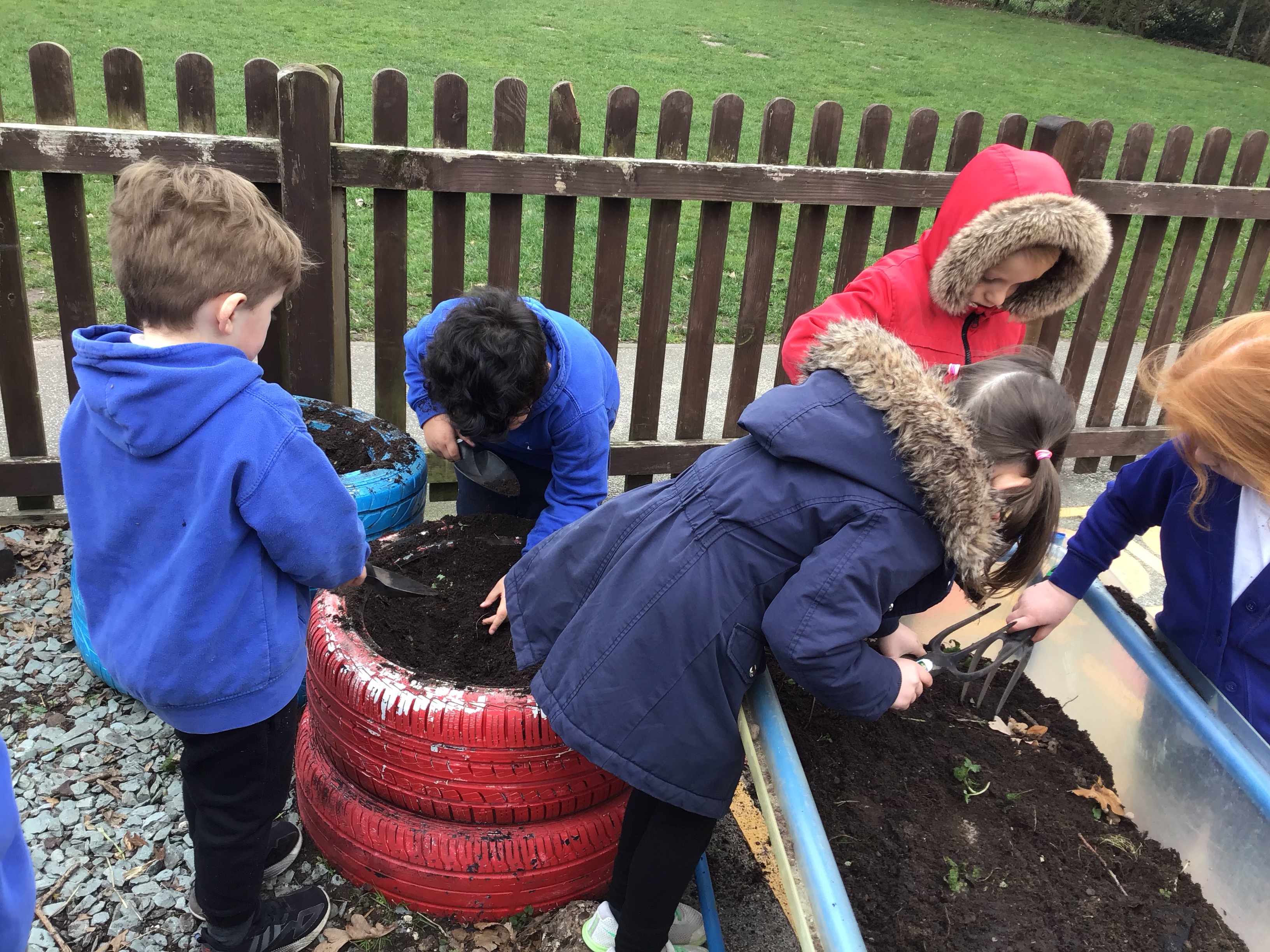 Diamond Class are working hard to create a bee friendly environment full of nature in our outside area! We have started to pull out all of the old plants and turn the soil over, we can’t wait to paint the planters up and start planting new seeds!