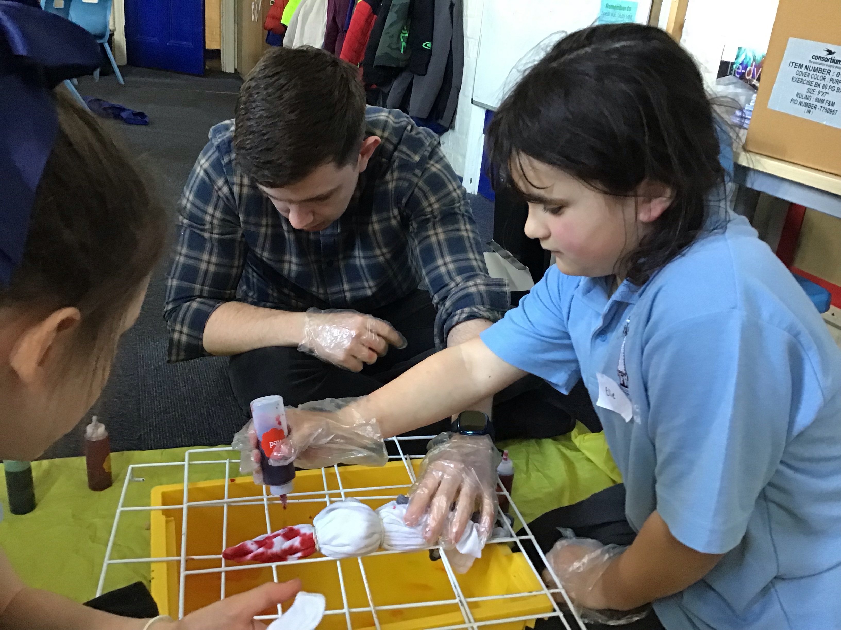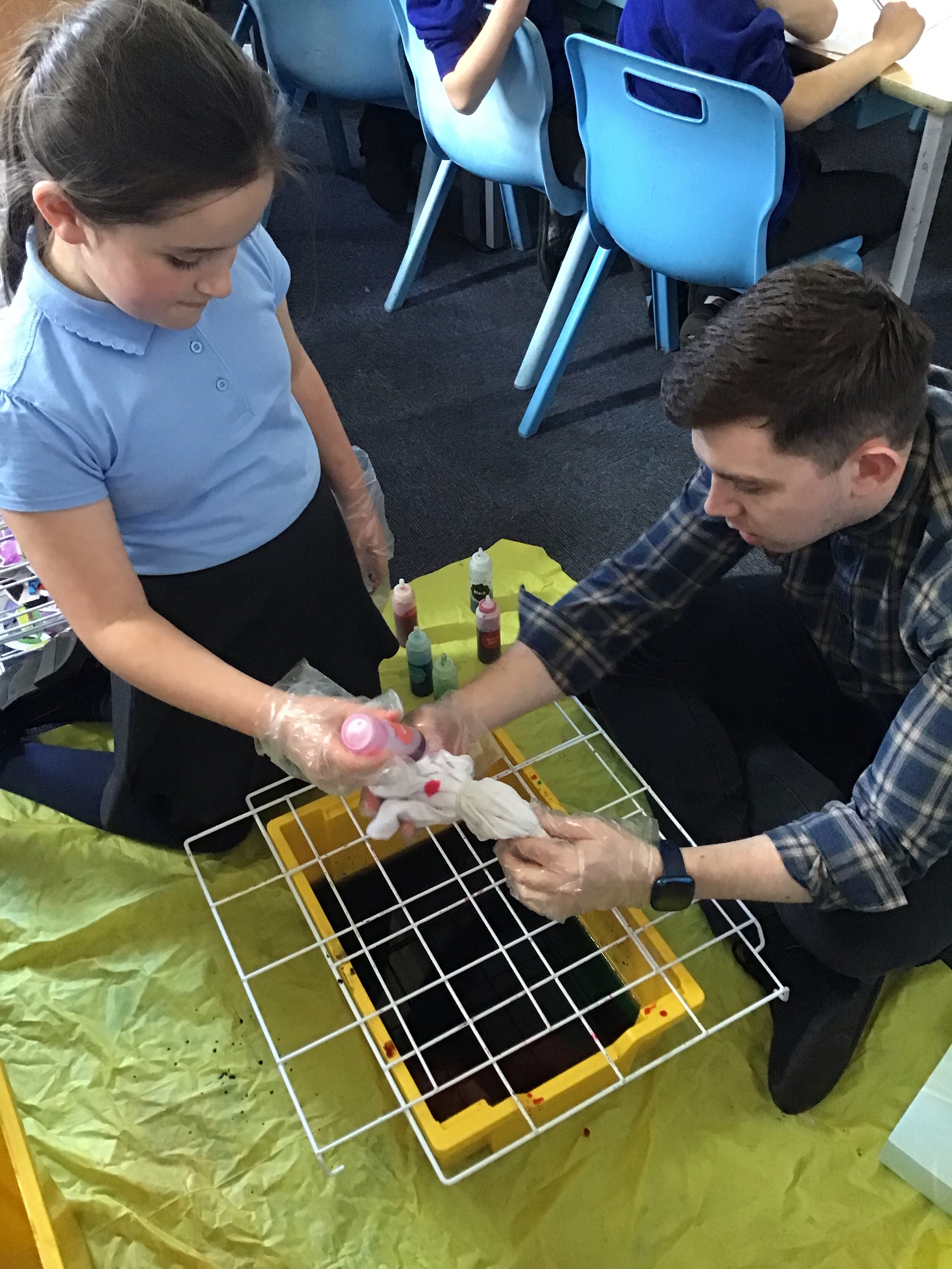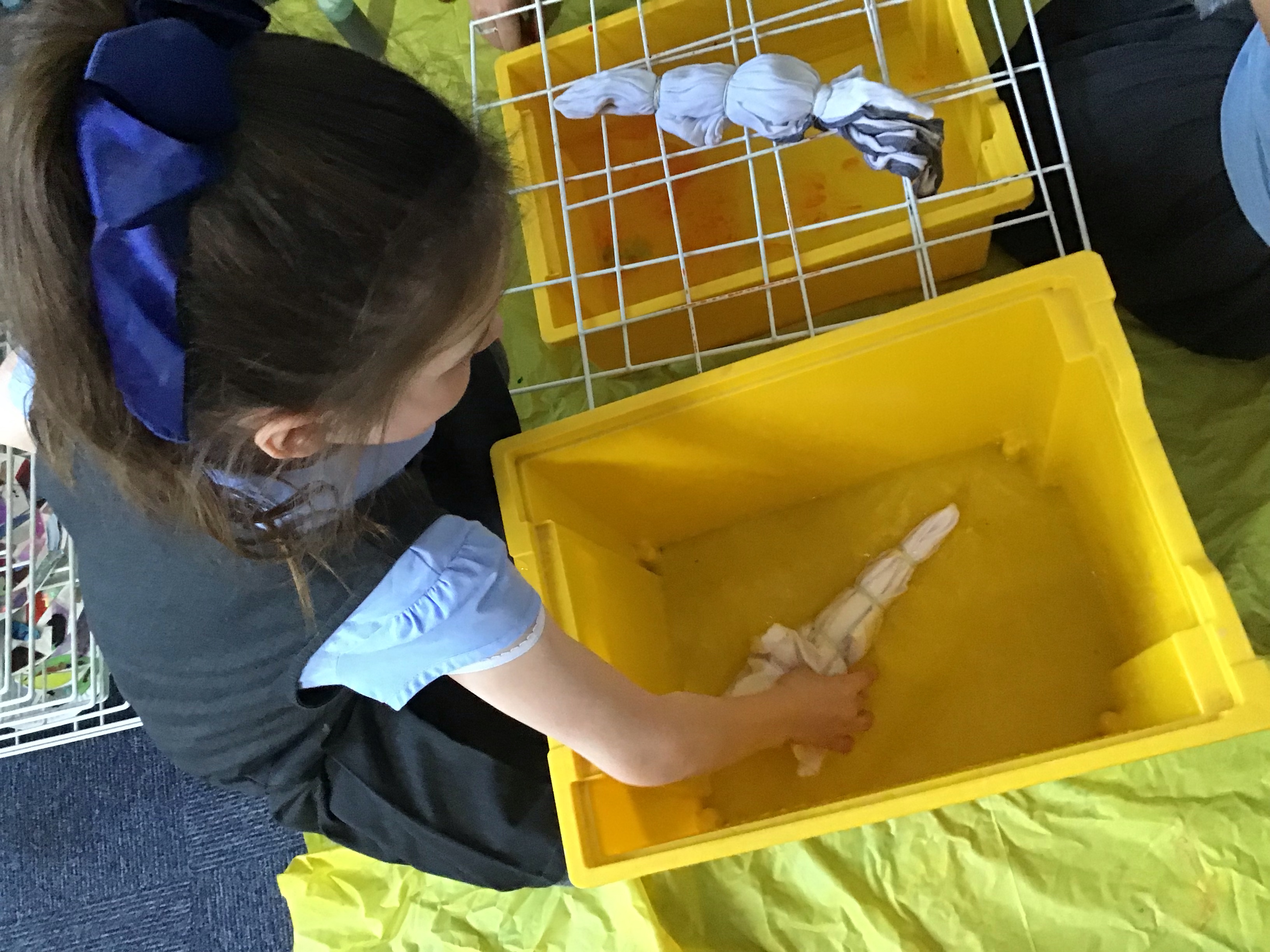 The children couldn’t wait to get started and despite a minor hitch with a leaking bucket, the dying stage is complete. Check back tomorrow for the results.