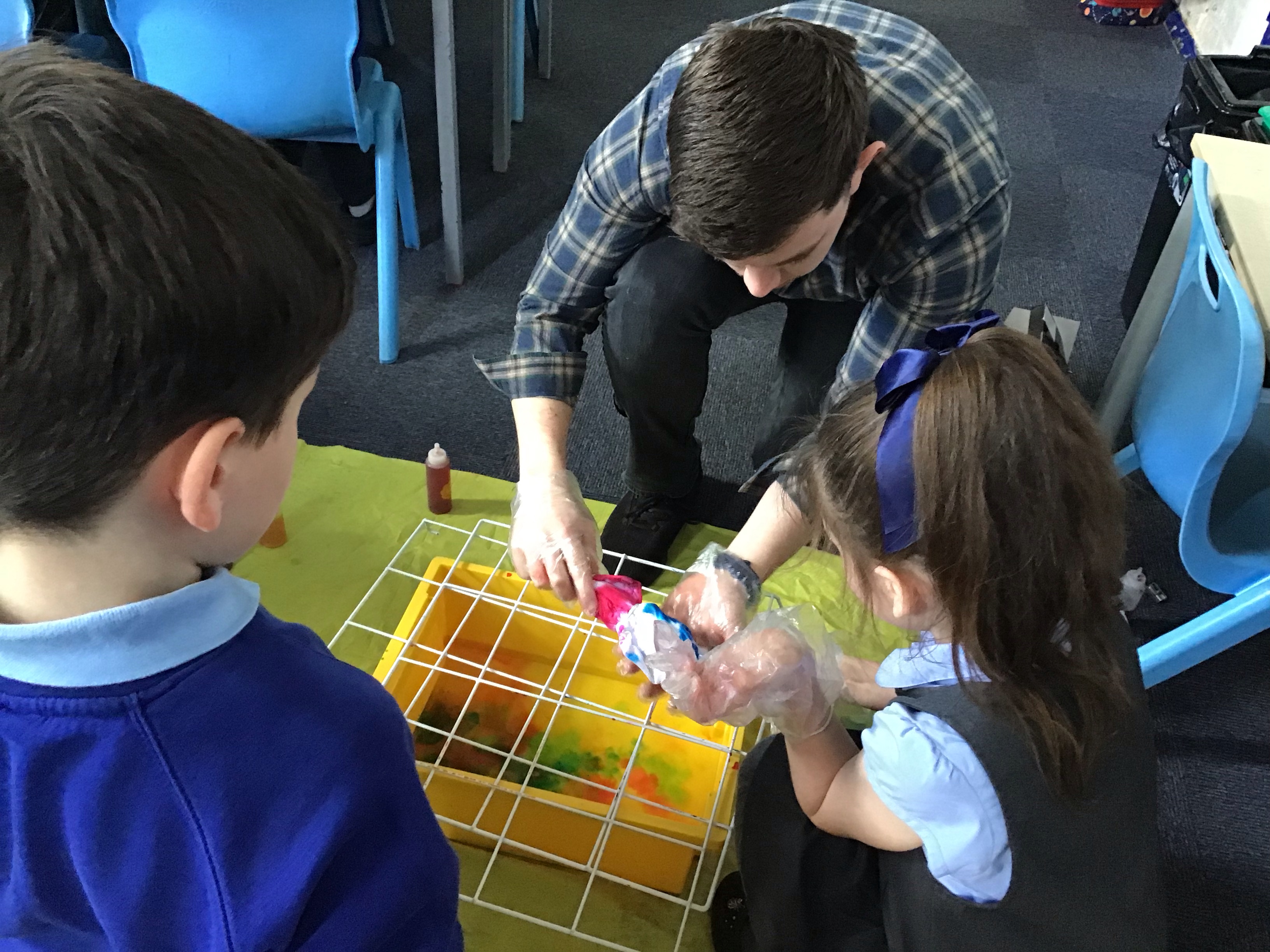 Today Opal class was full of excitement as it was finally time to tie dye our t-shirts.