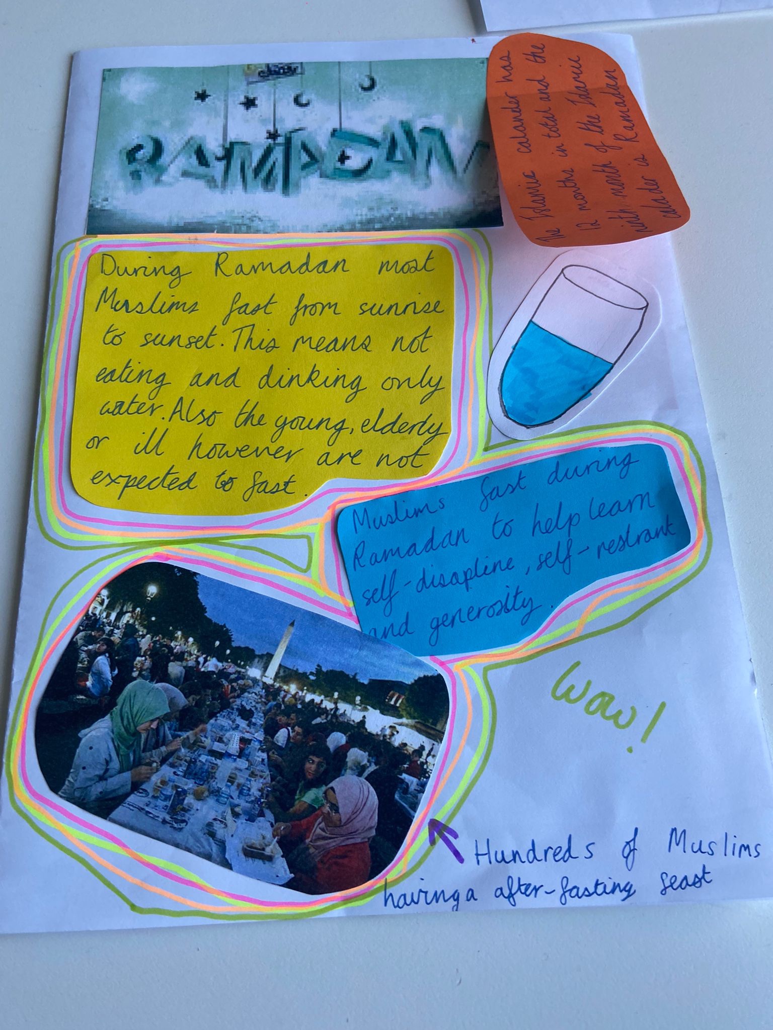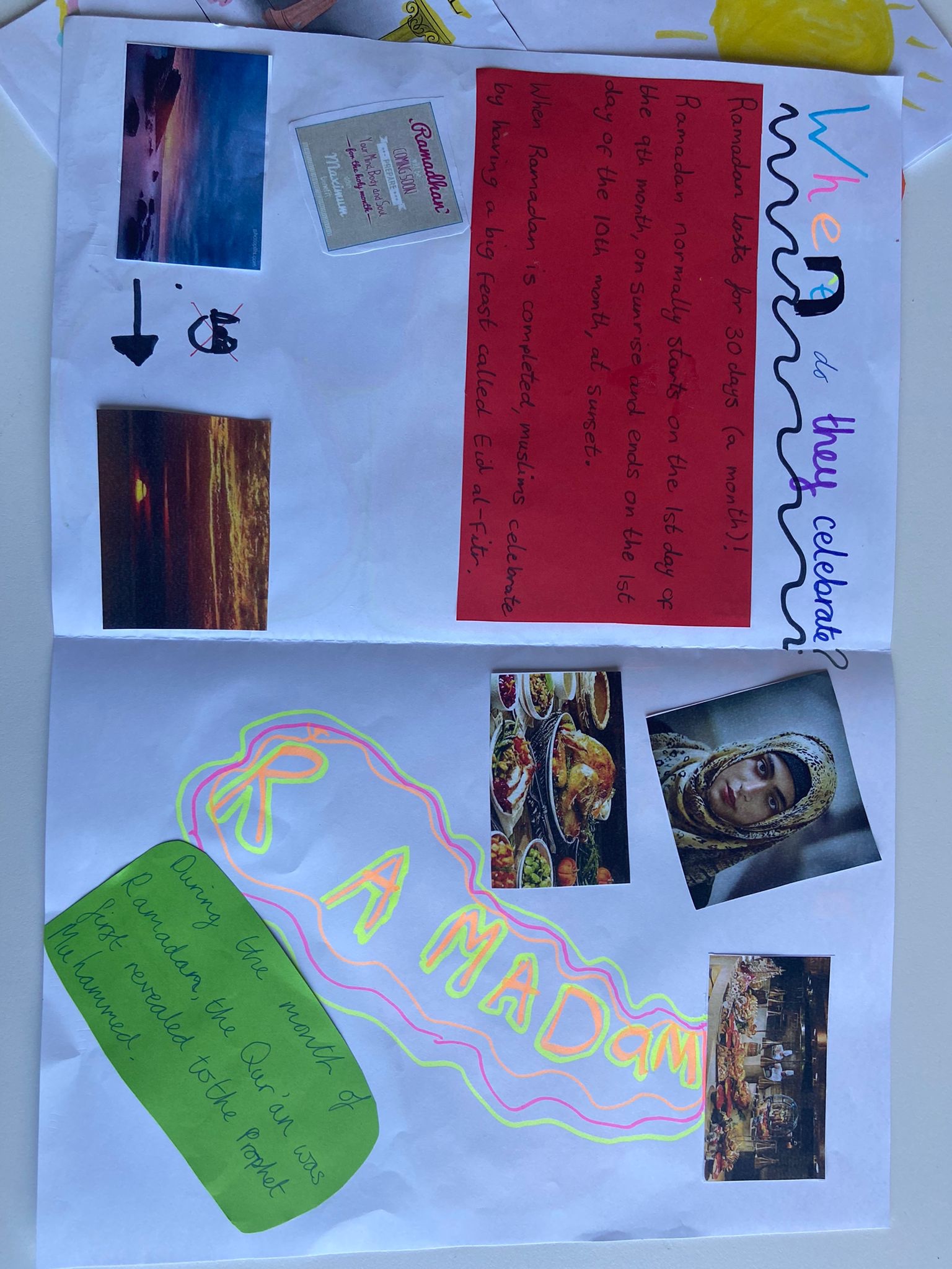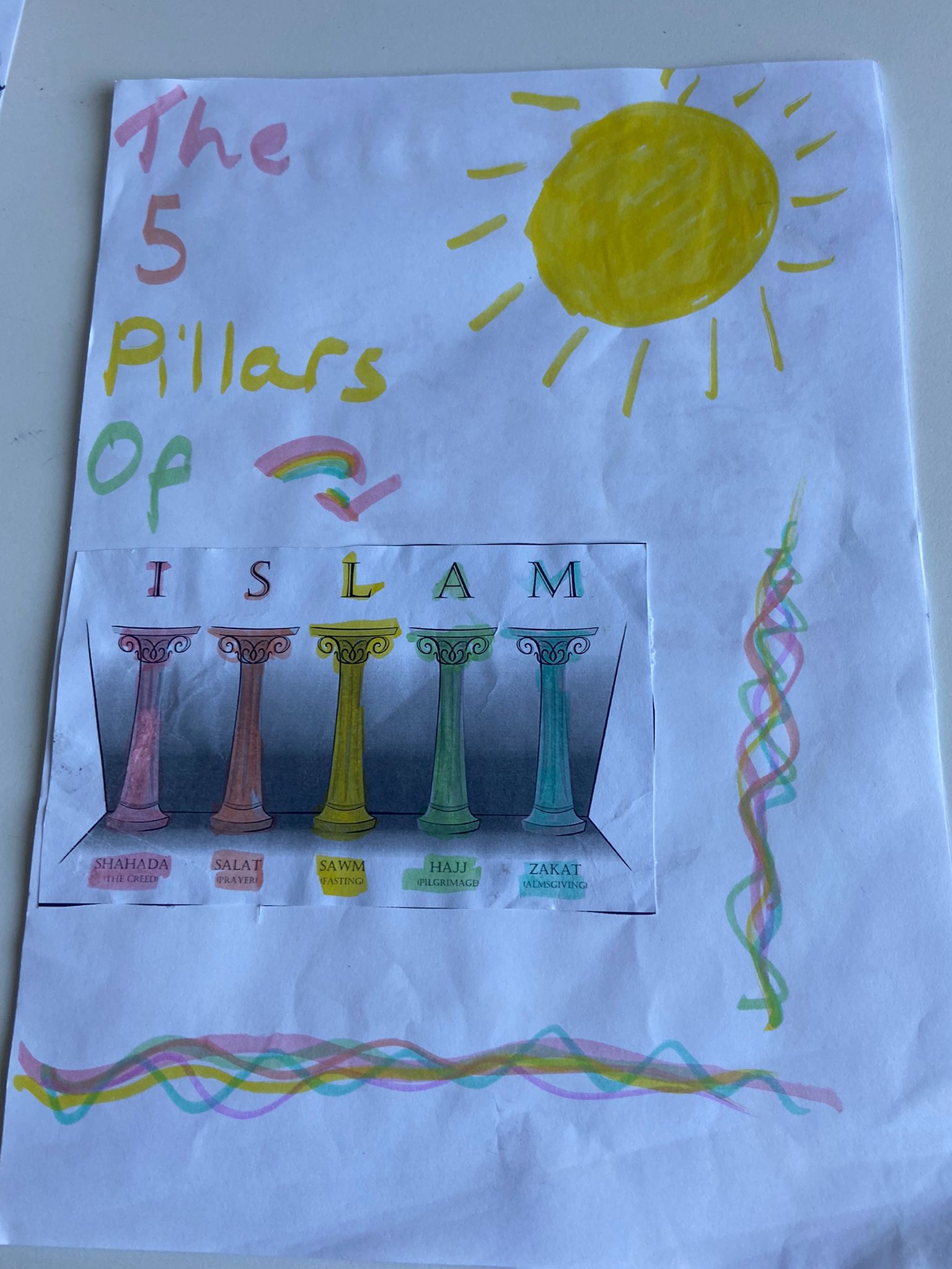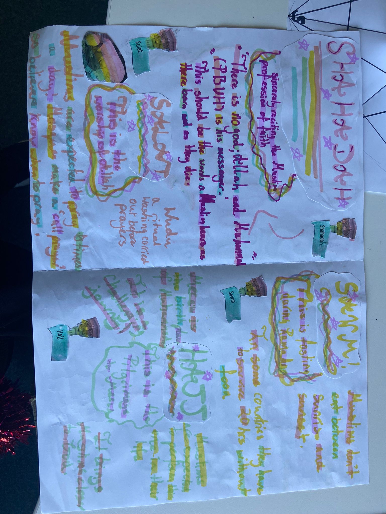 Today we have been looking at Islam. We have researched their festivals, prayer practices, the Qur’an, the afterlife and the 5 pillars of Islam. We have created fact files and even had a go at our own Islamic geometric patterns!
