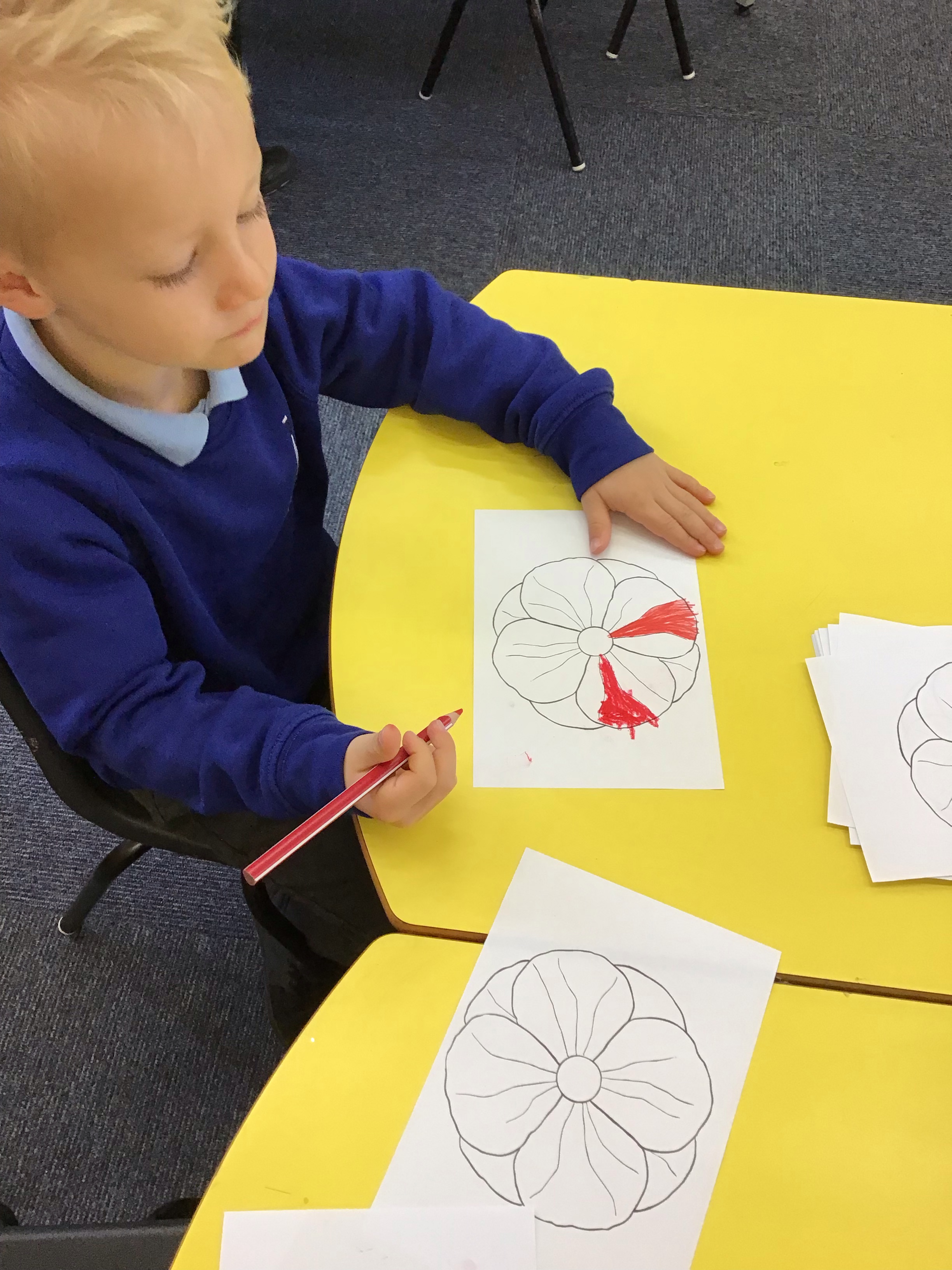 “We wear poppies because when the war ended the soldiers saw poppies growing in the mud and it made them feel happy again” Jon