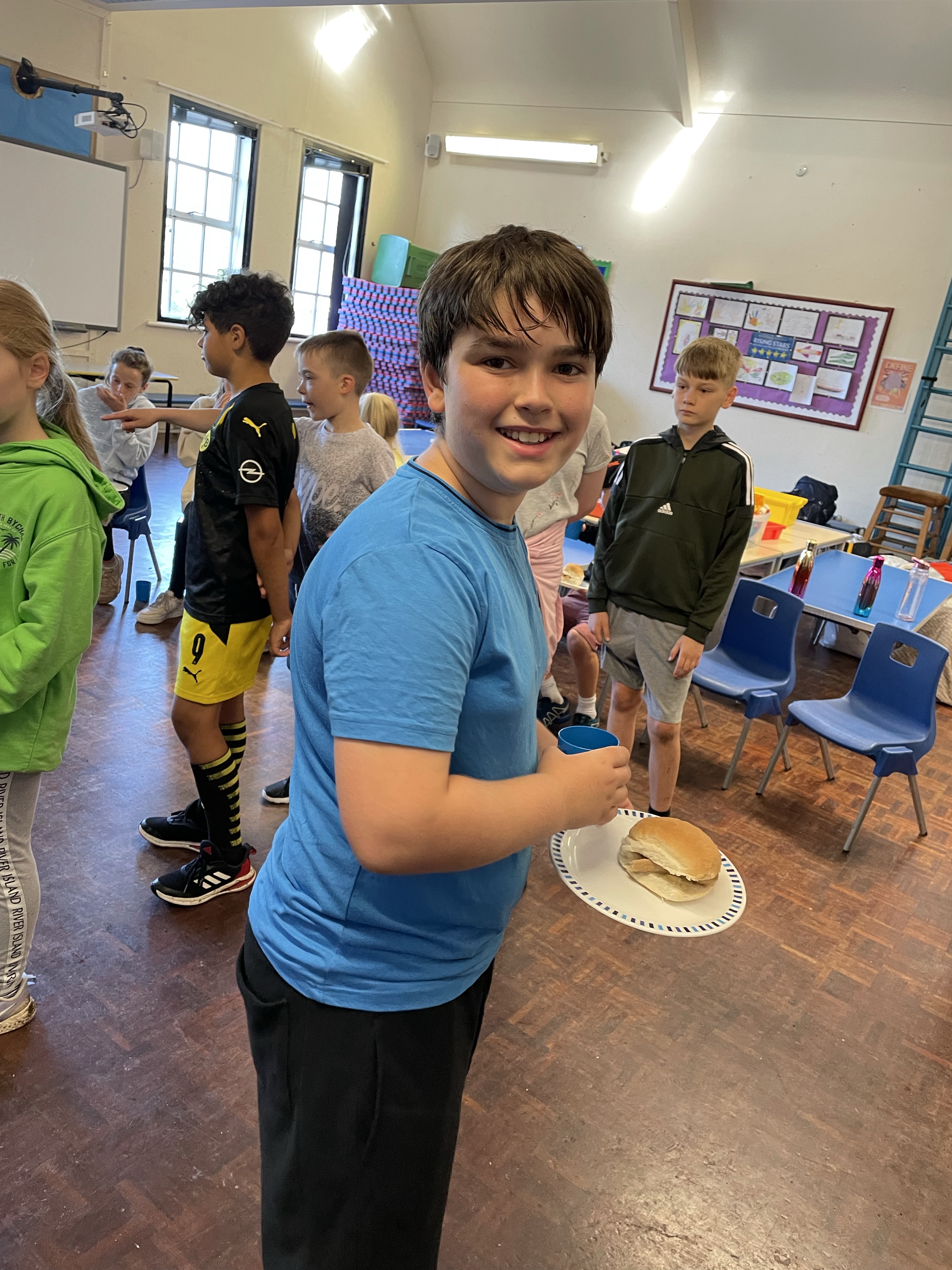 After a VERY long night, we awoke to beautiful sunshine and another fantastic day of fun! After packing away and getting the classrooms back together, we headed into the hall for a yummy bacon or sausage bap cooked by Mrs Burt! Breakfast had never tasted so good!