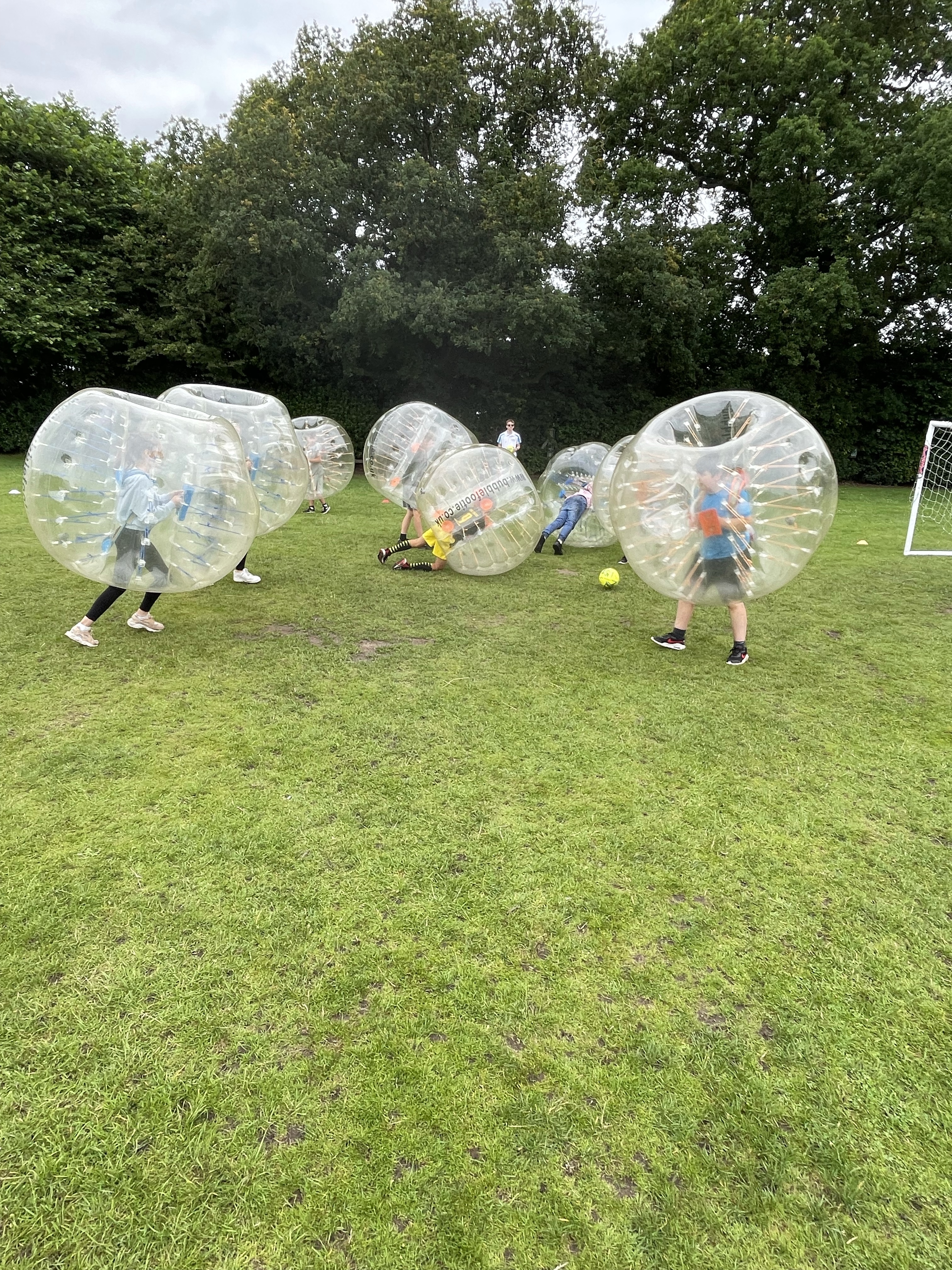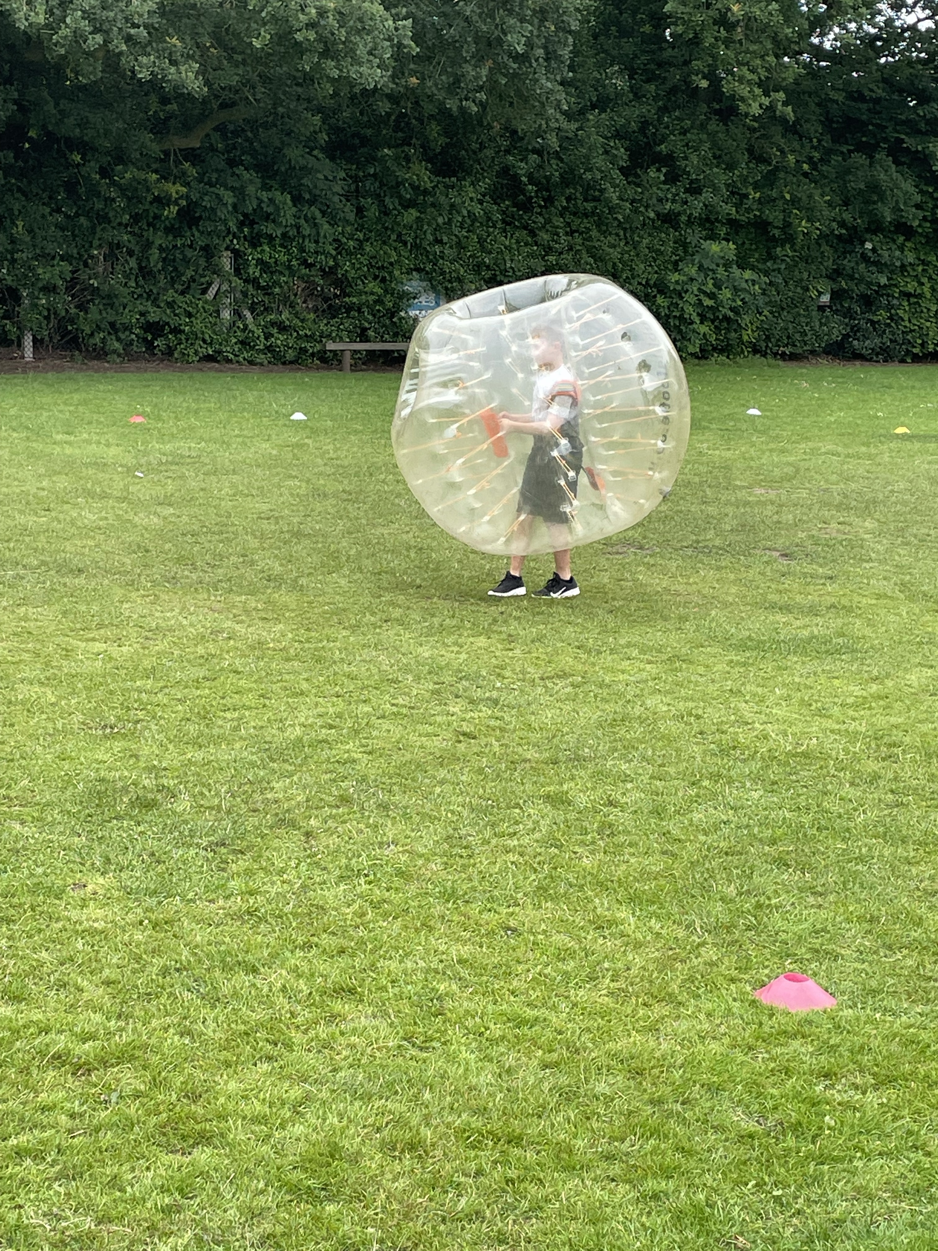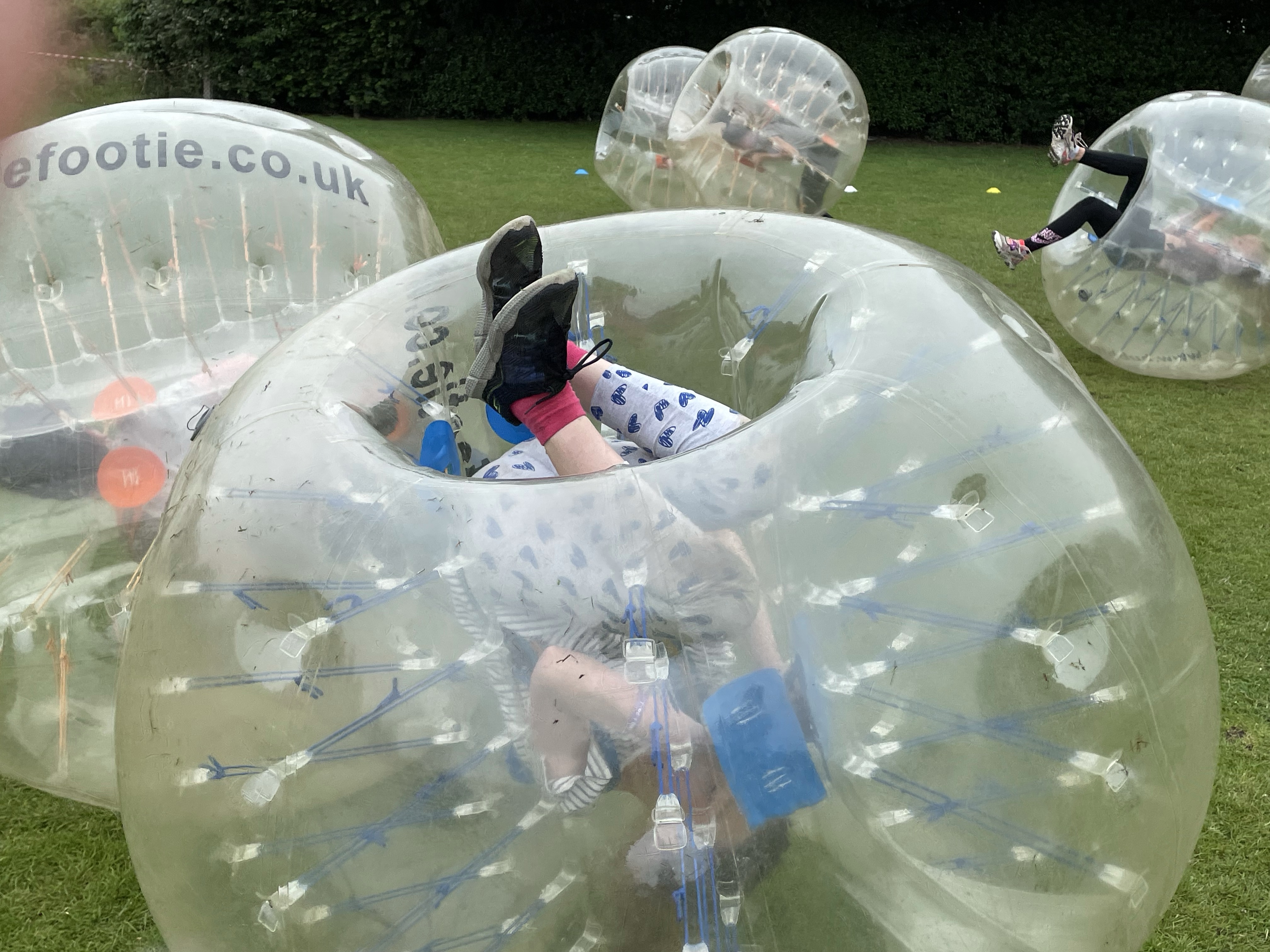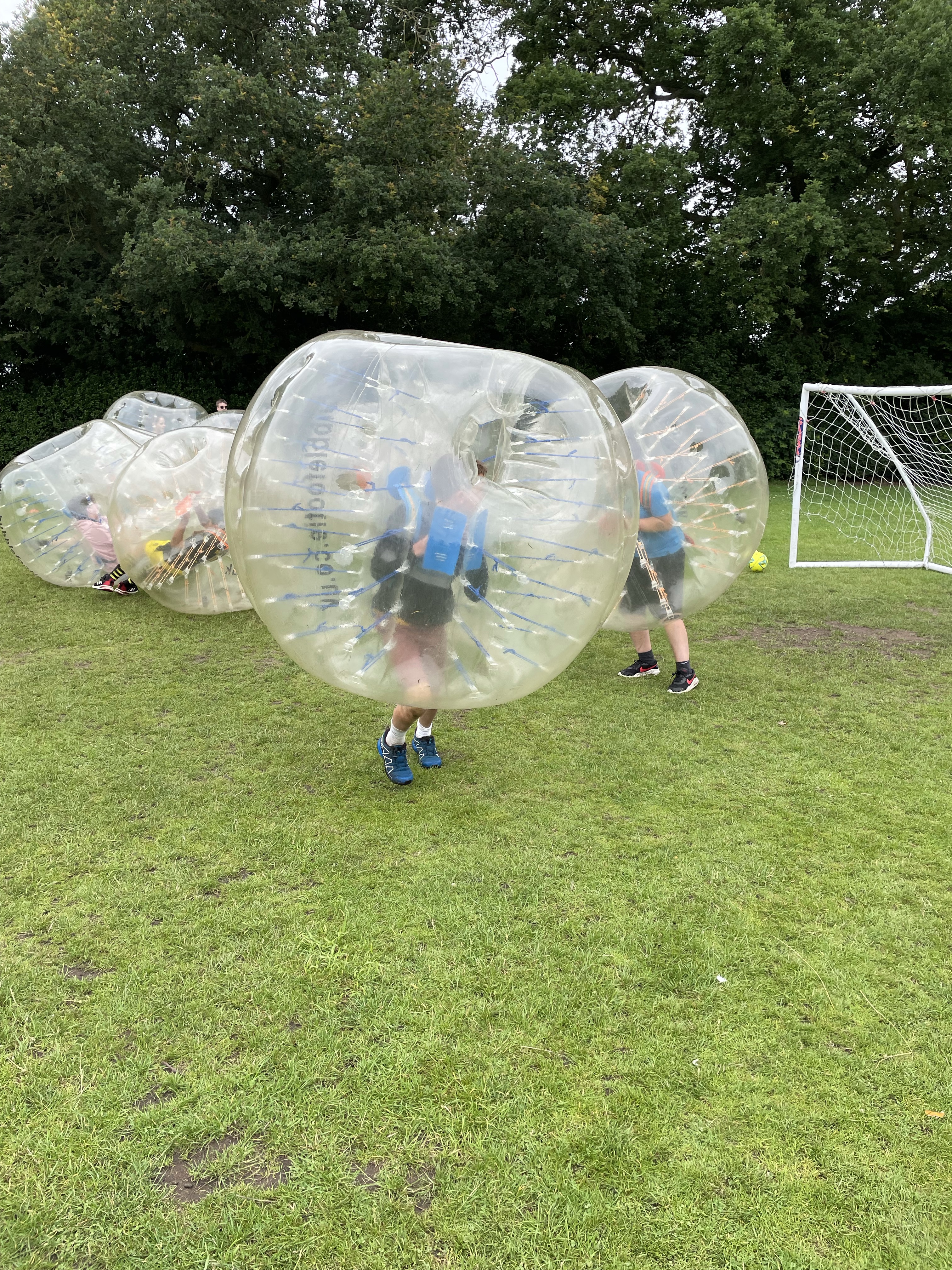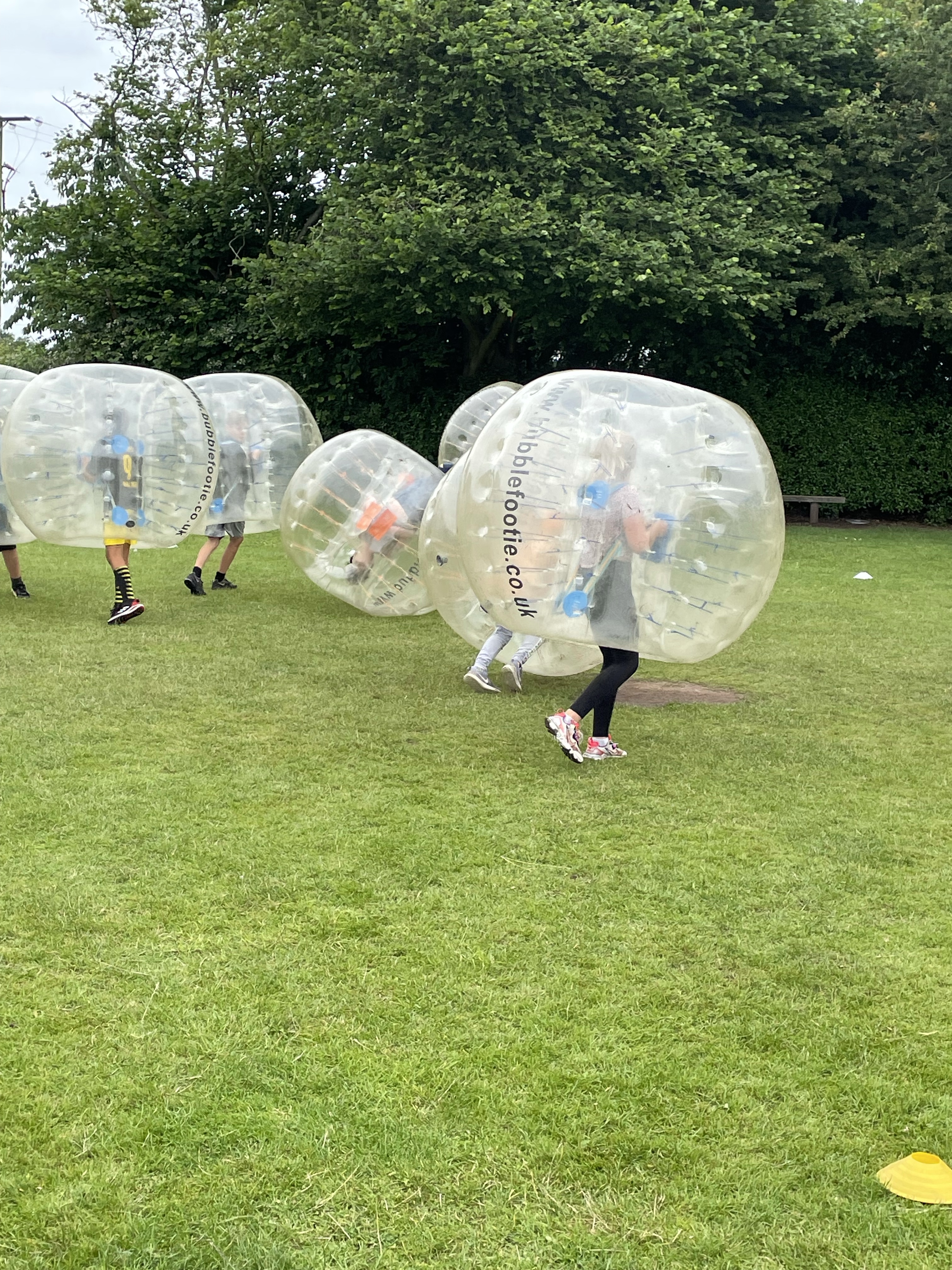 Then, it was time for a very apt activity…. BUBBLE FOOTBALL! We had soo much fun playing loads of different games, bashing into people and getting stuck upside down! Even Mrs Booth got to have a go, whilst being chased by Luke, Will and Callum!