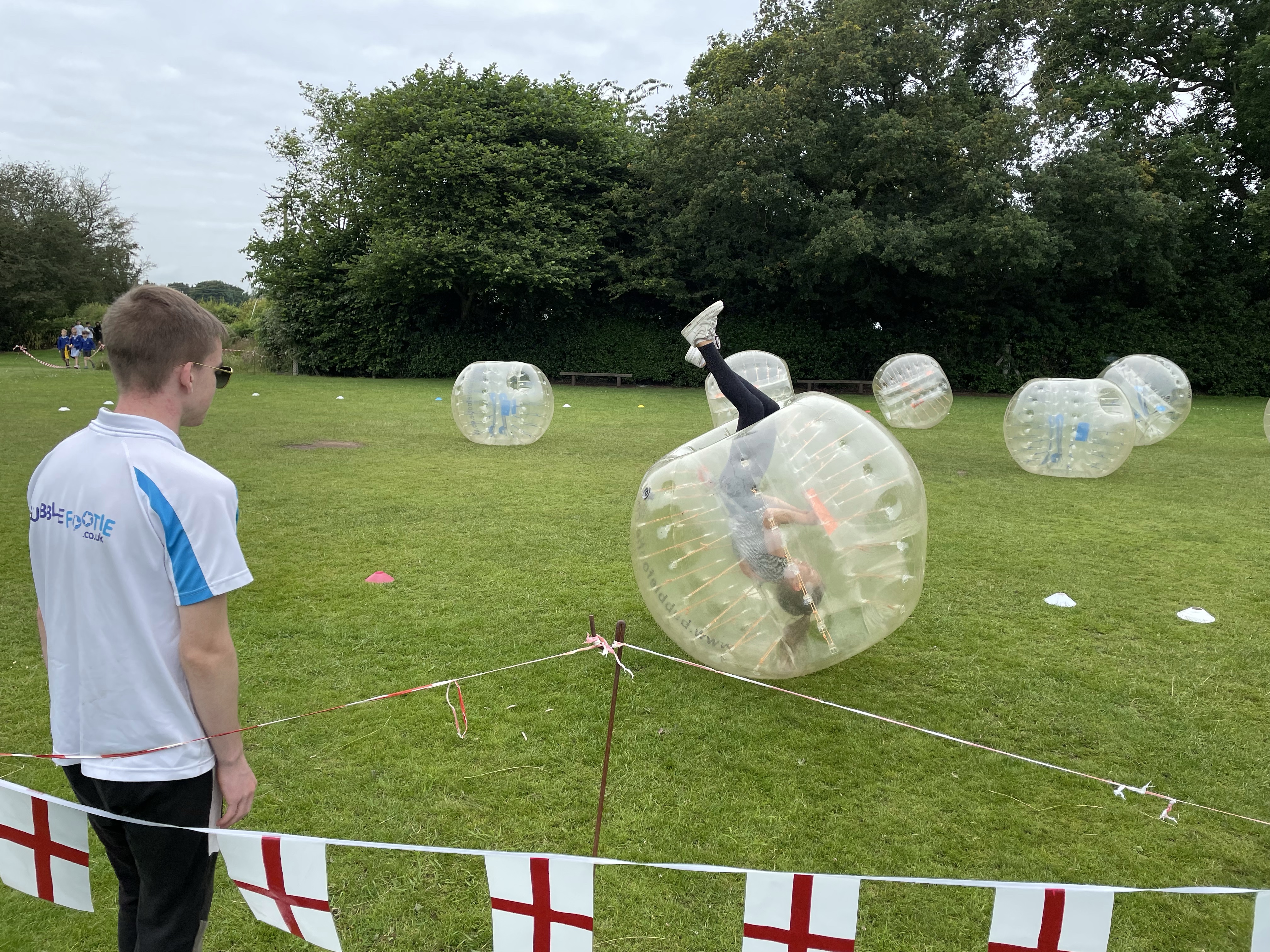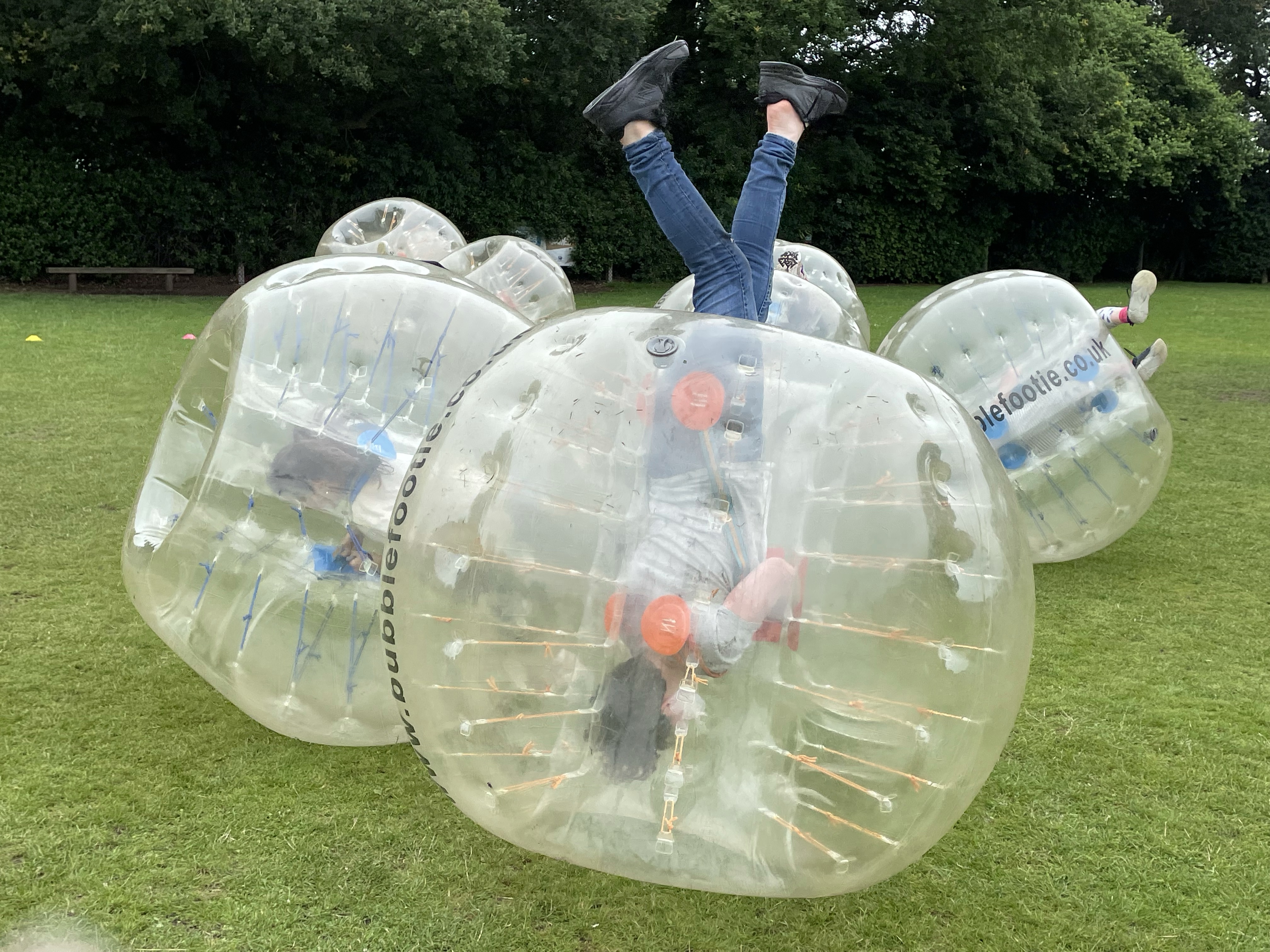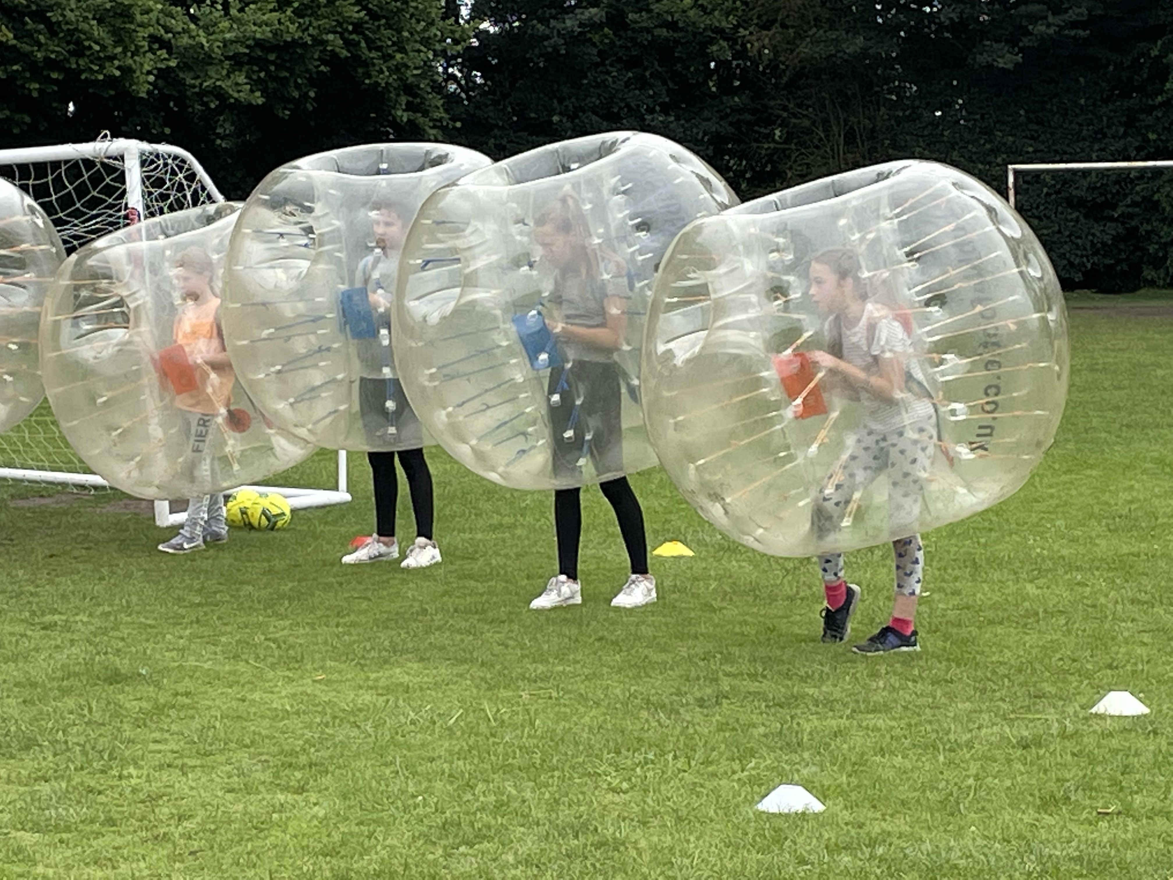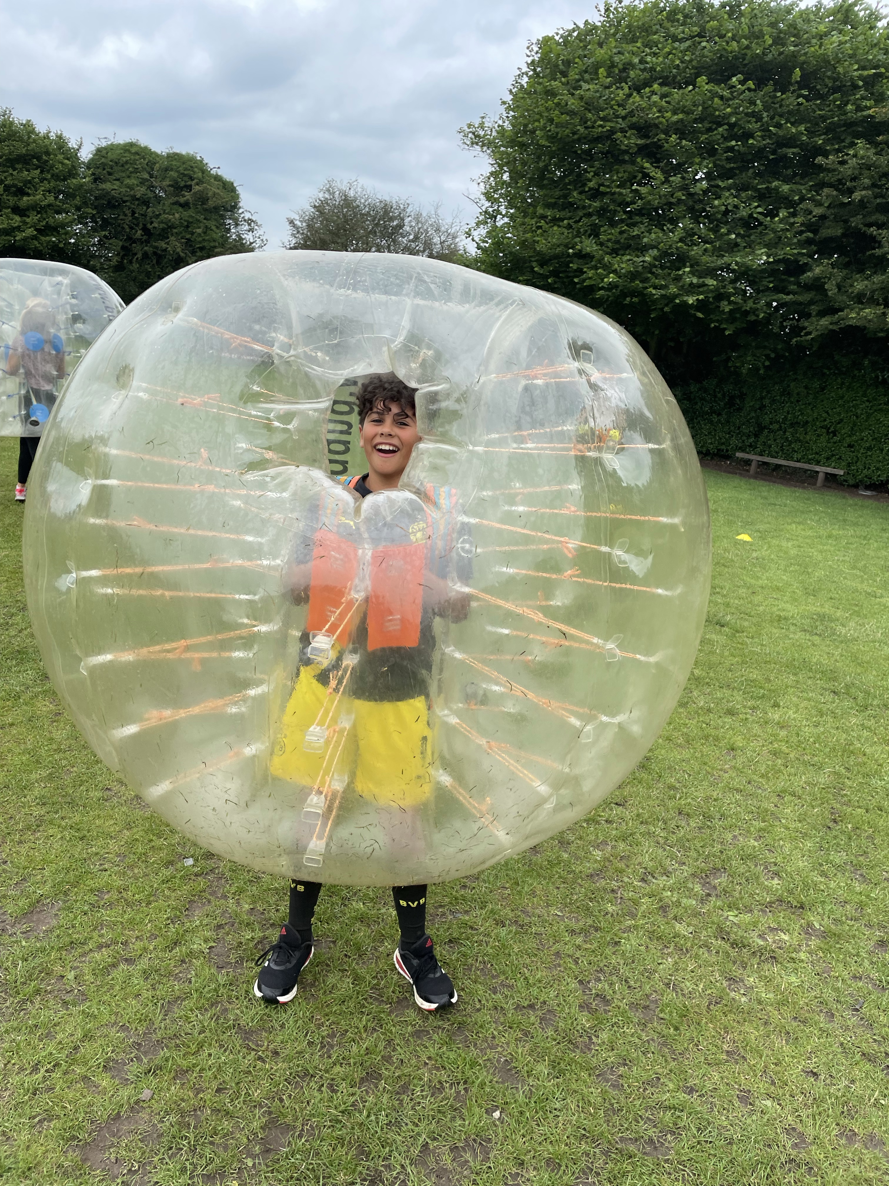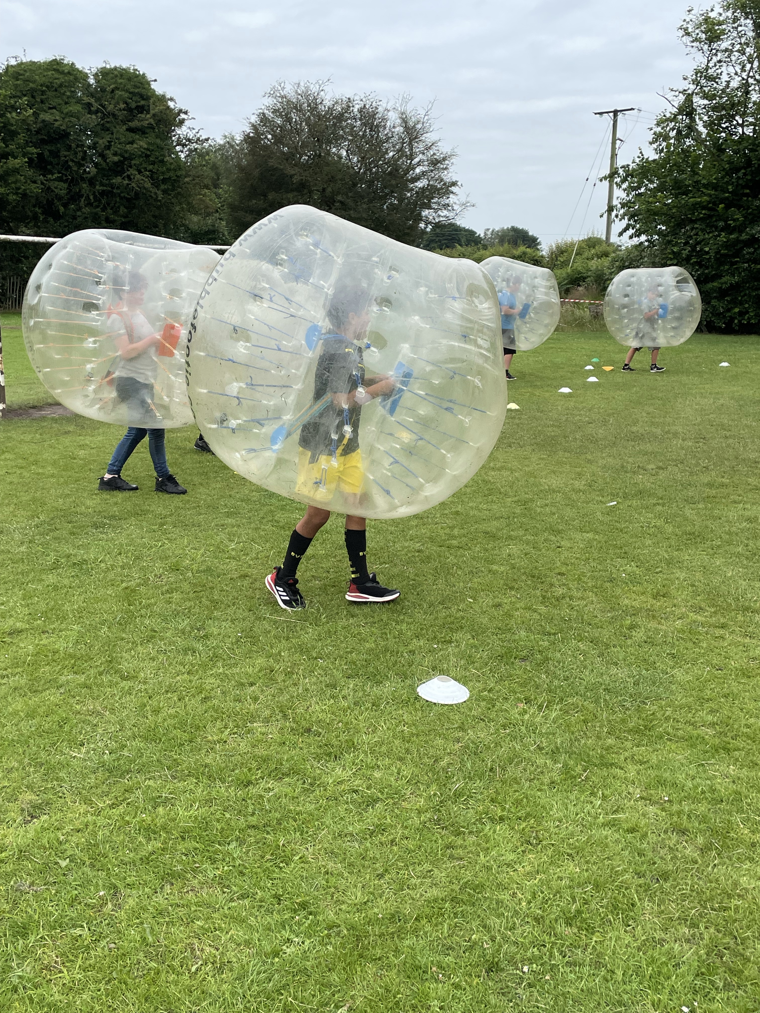 Then, it was time for a very apt activity…. BUBBLE FOOTBALL! We had soo much fun playing loads of different games, bashing into people and getting stuck upside down! Even Mrs Booth got to have a go, whilst being chased by Luke, Will and Callum!