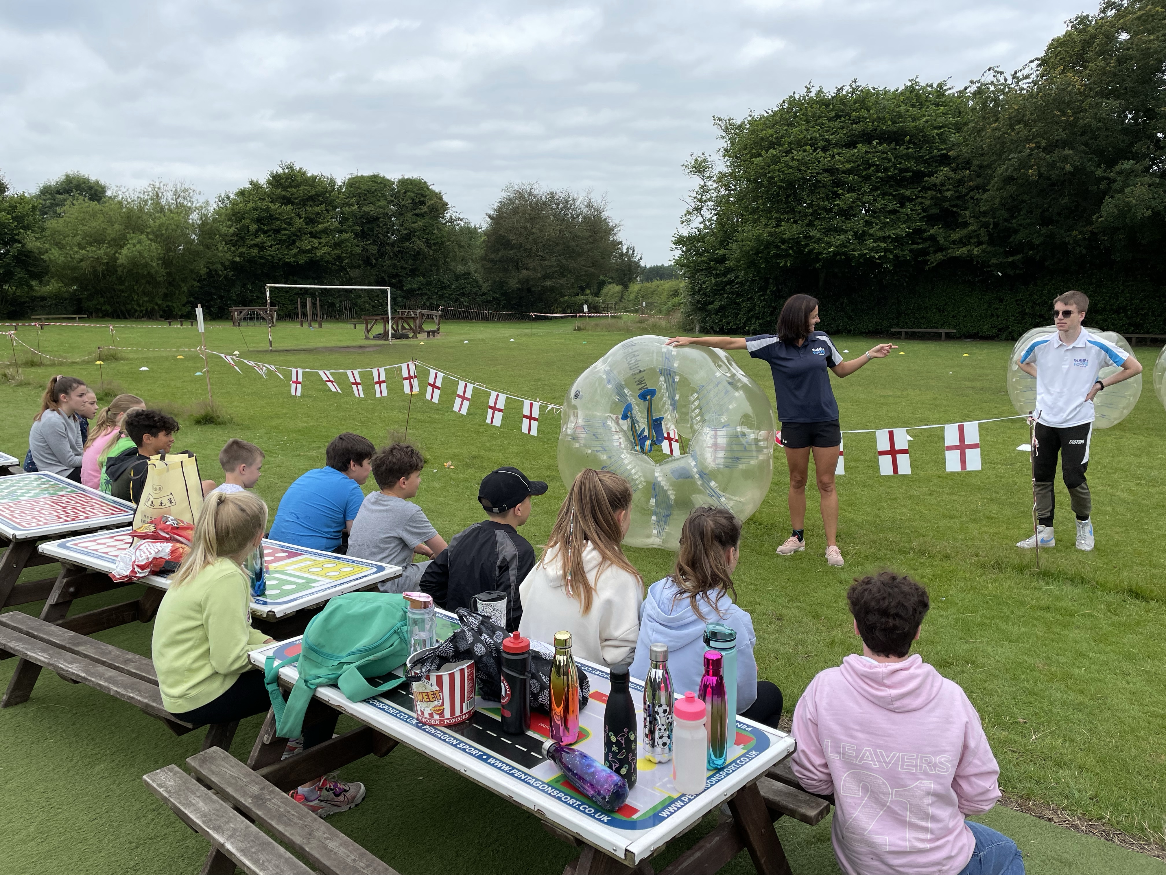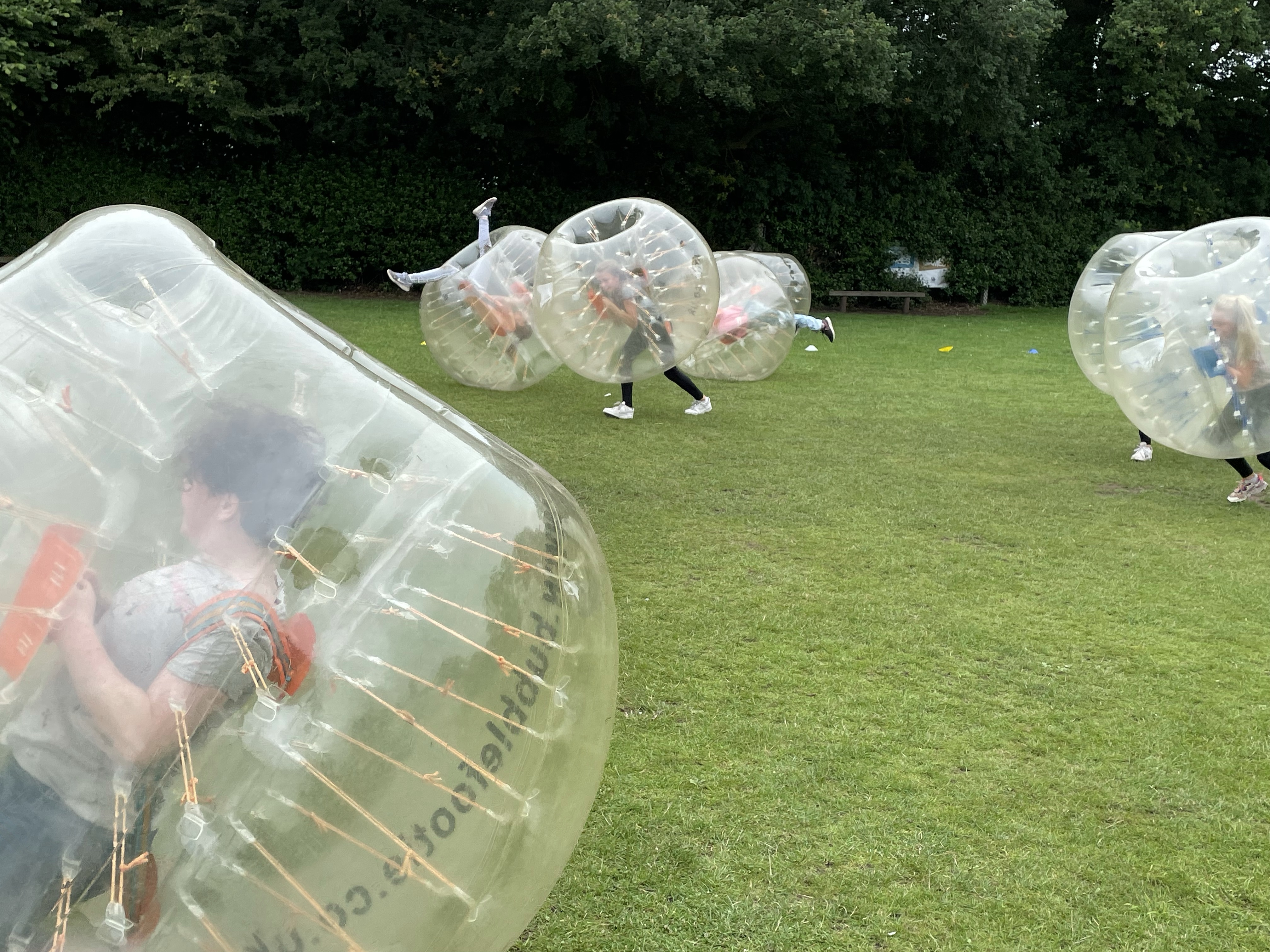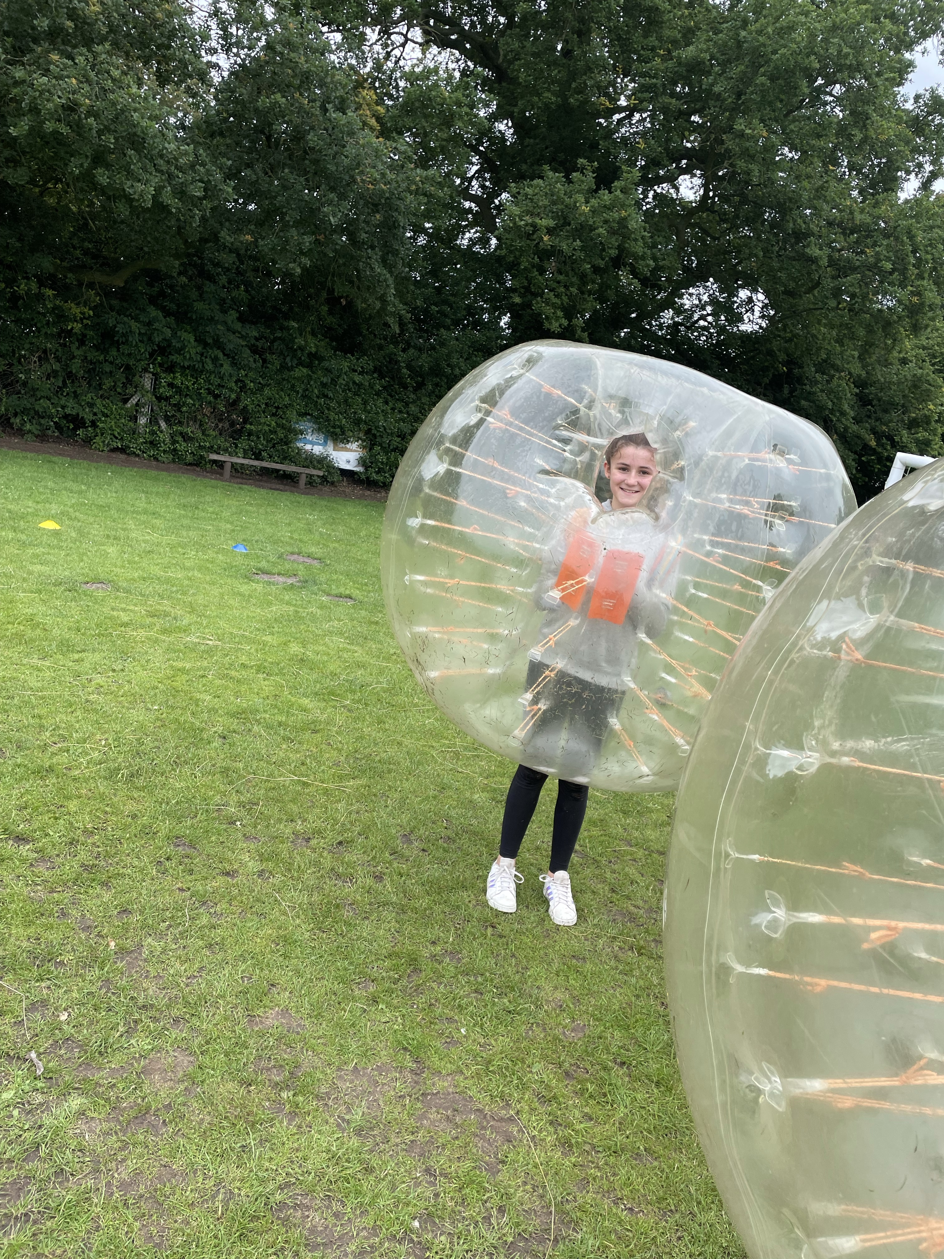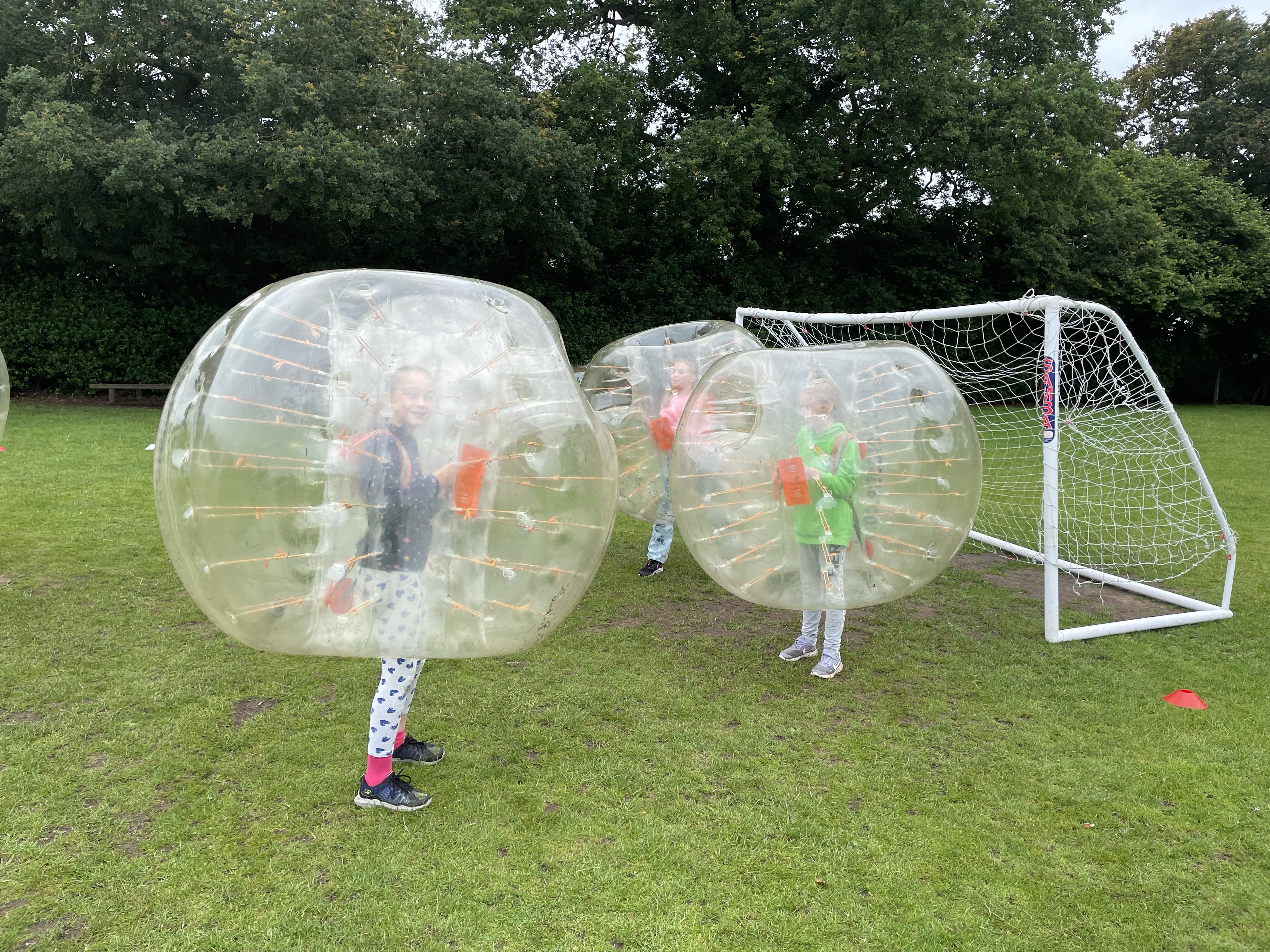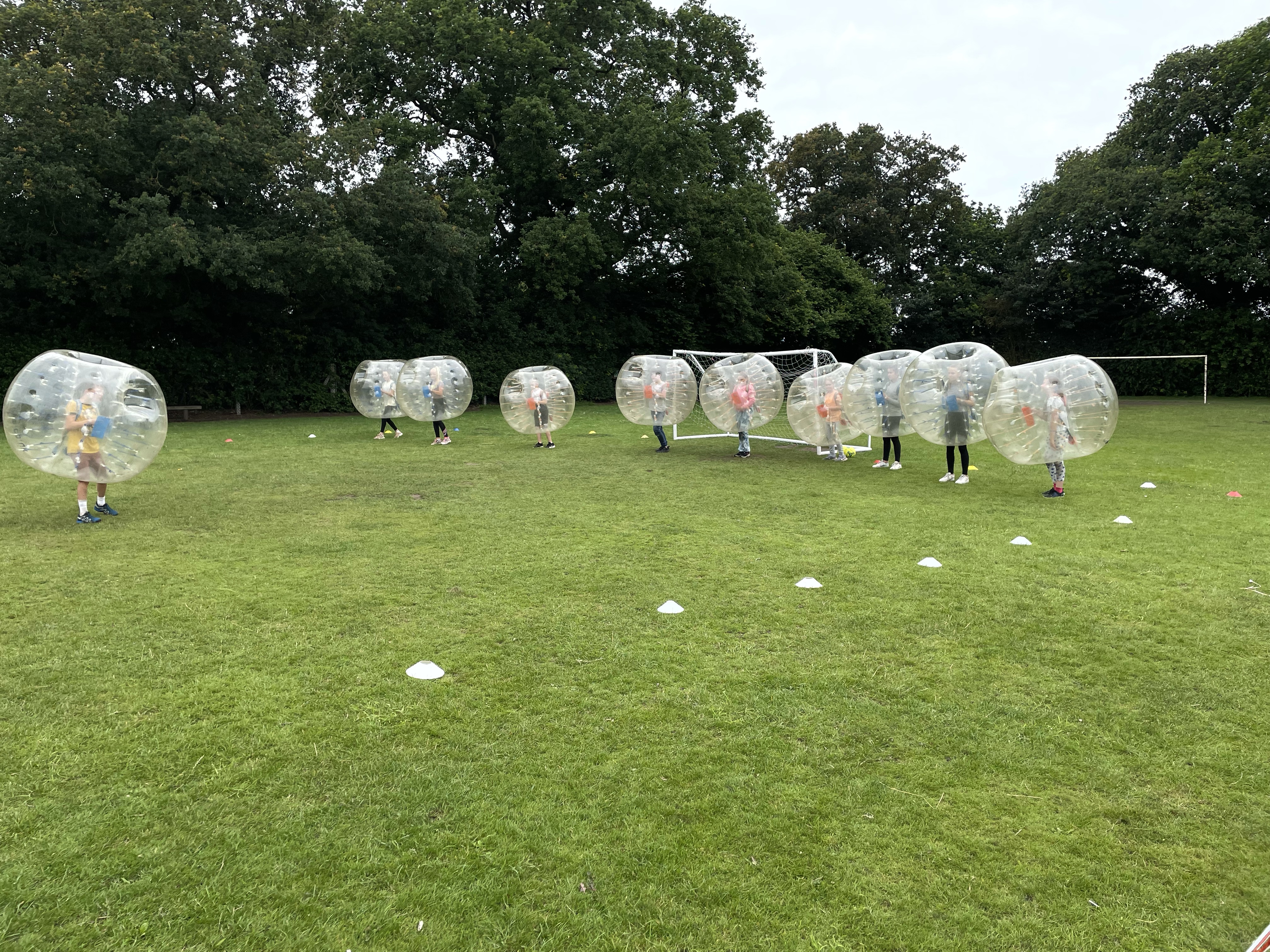 Then, it was time for a very apt activity…. BUBBLE FOOTBALL! We had soo much fun playing loads of different games, bashing into people and getting stuck upside down! Even Mrs Booth got to have a go, whilst being chased by Luke, Will and Callum!