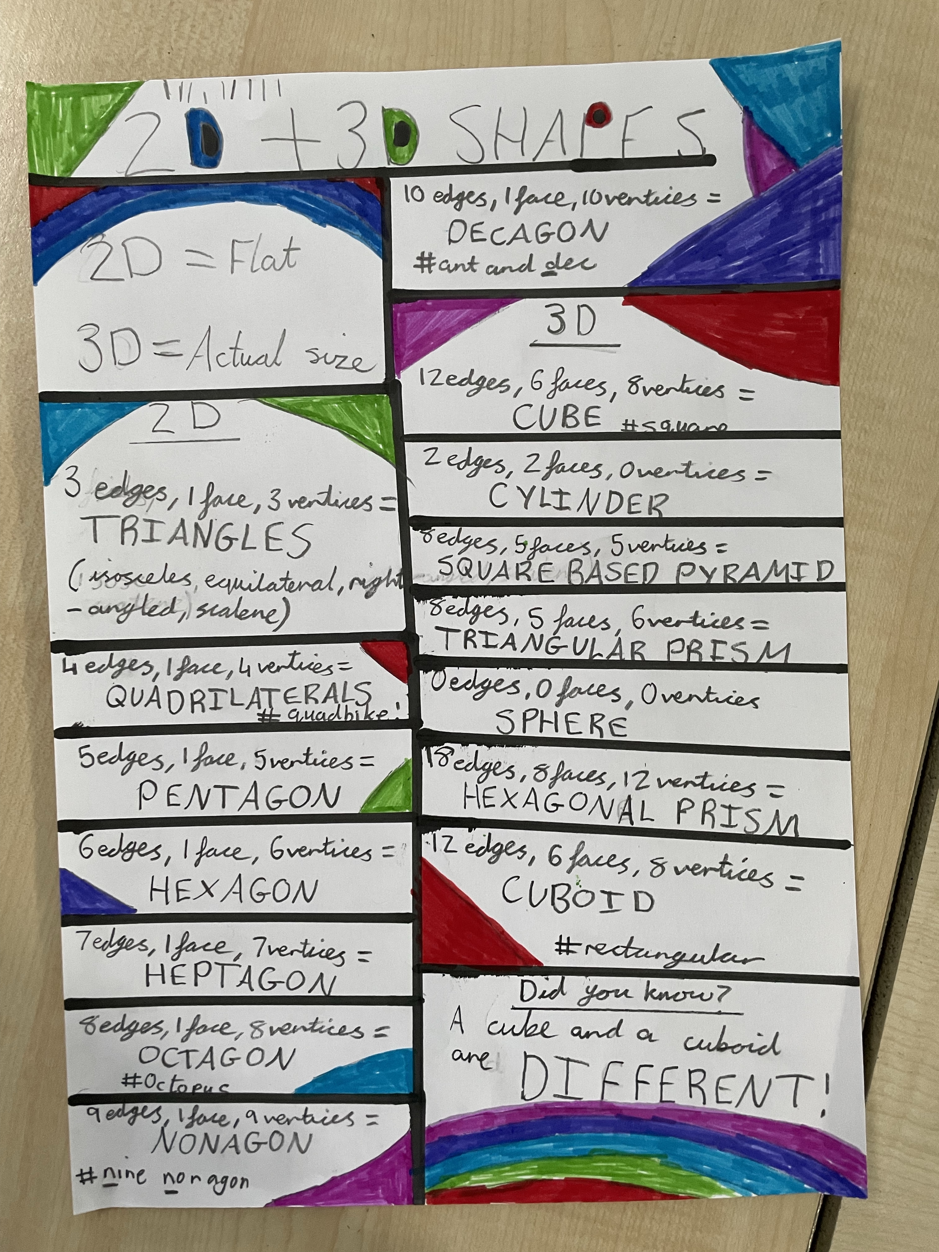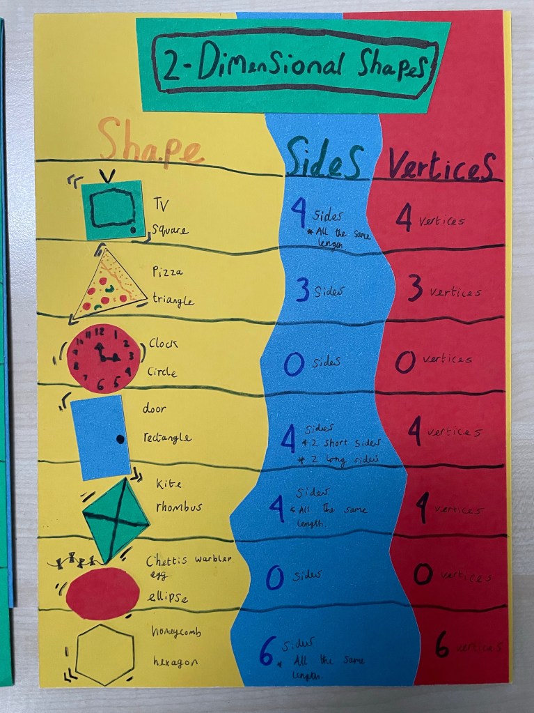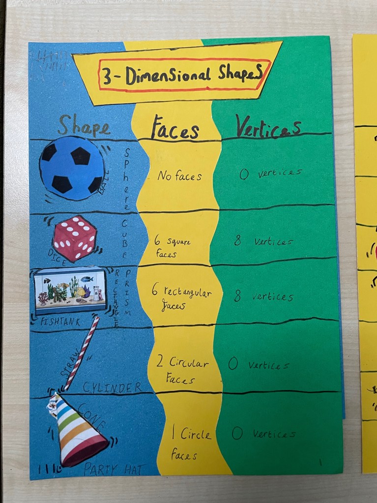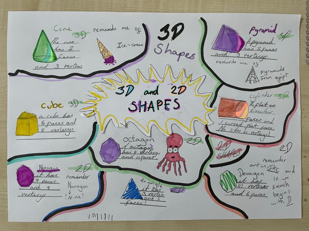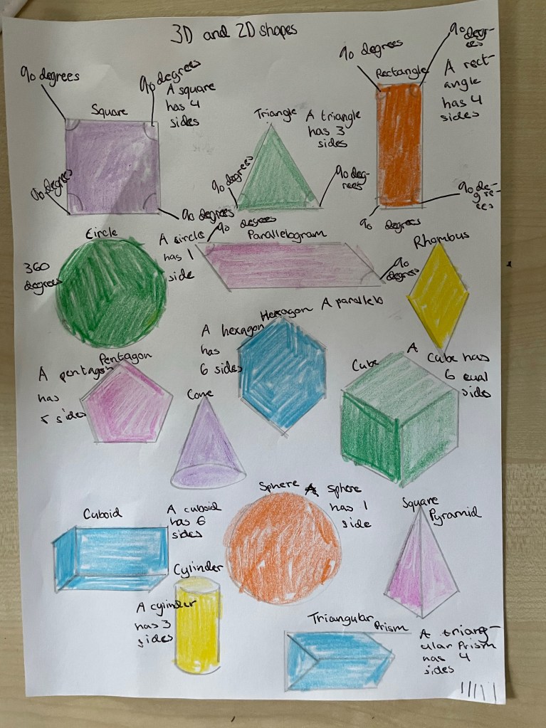 Have a look at the wonderful memory posters we have made to help us to remember our 2D and 3D shapes….