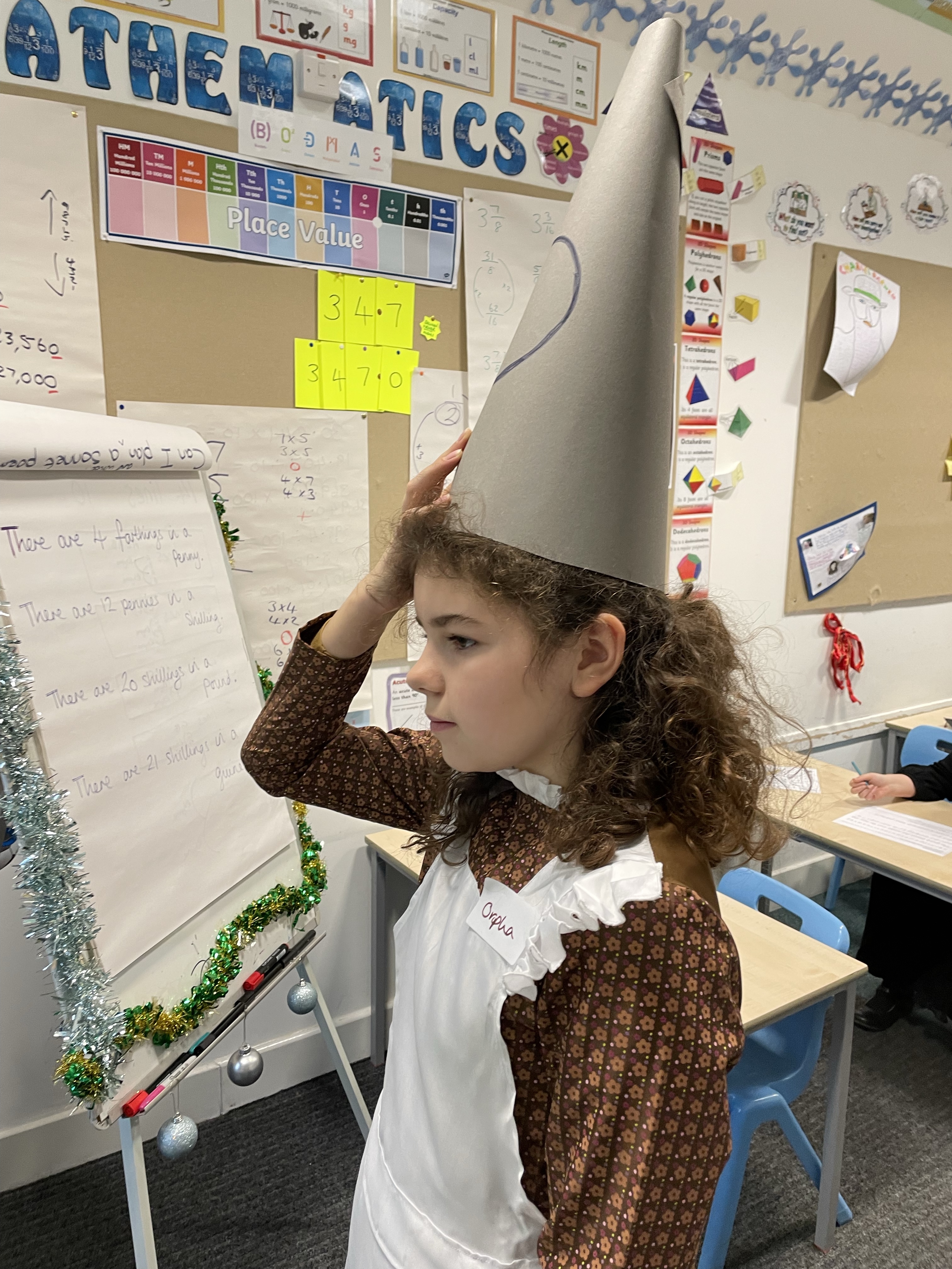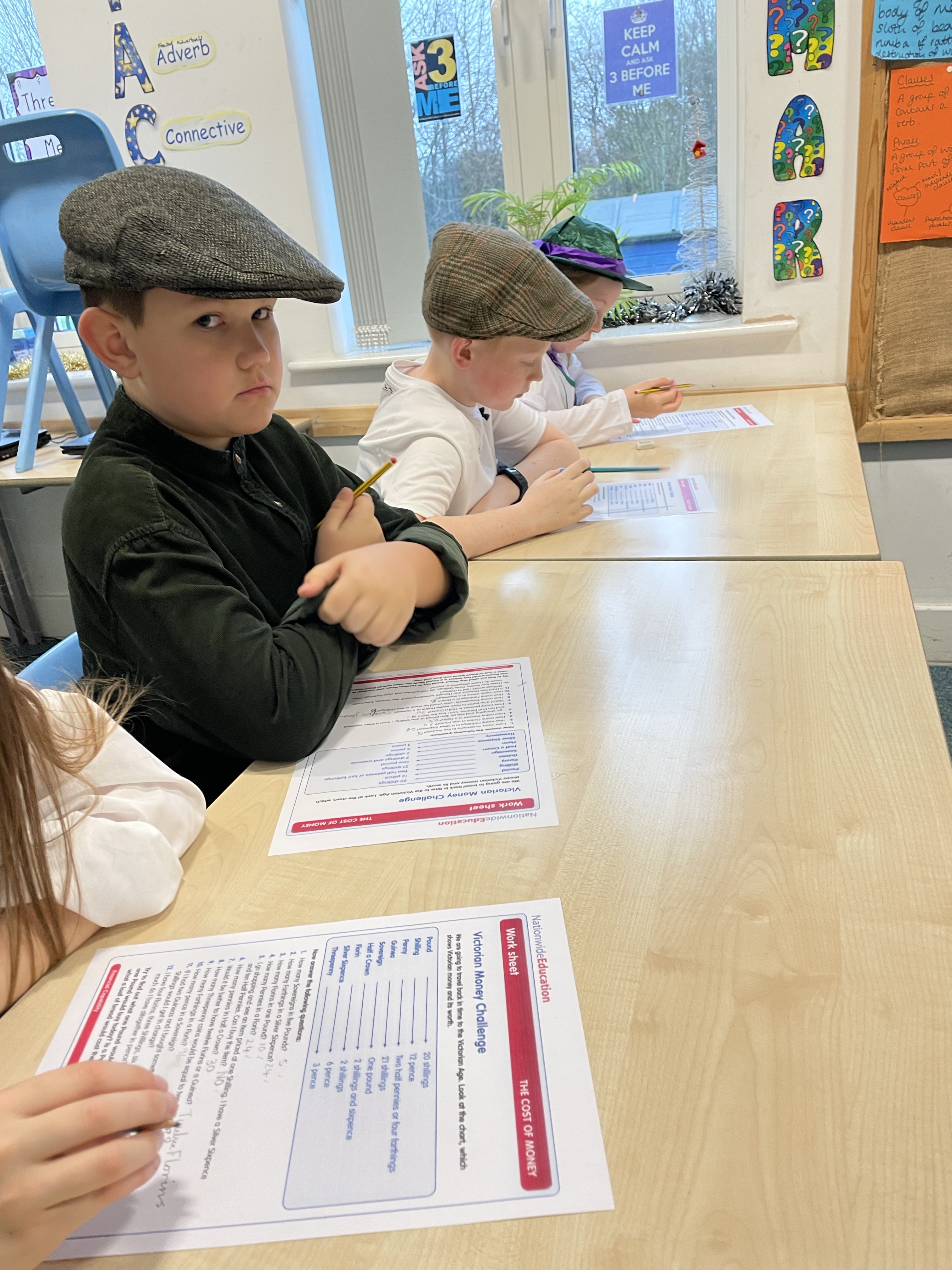 Next it was arithmetic time. Real-life money problems were the focus and we learnt how to convert between all the different units of money. We repeated key facts out loud and realised that money was very complicated back in the Victorian era.