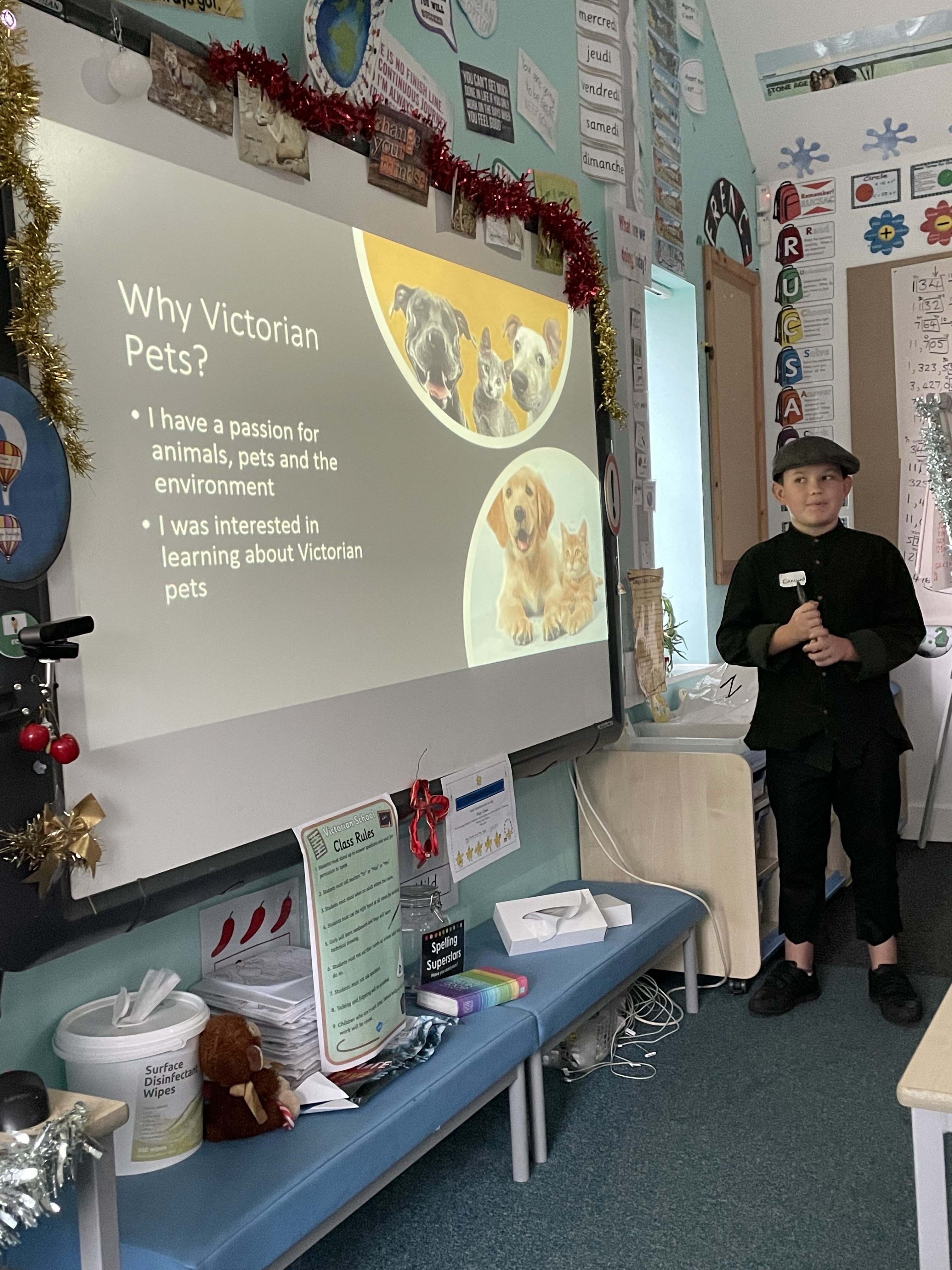 Finally, it was time to come out of role and listen to some of our wonderful Homework presentations. We learnt about Victorian jelly babies, fashion and pets from Florence, Elsie, George V, Evie, Katherine and Louisa and can’t wait to hear more tomorrow!