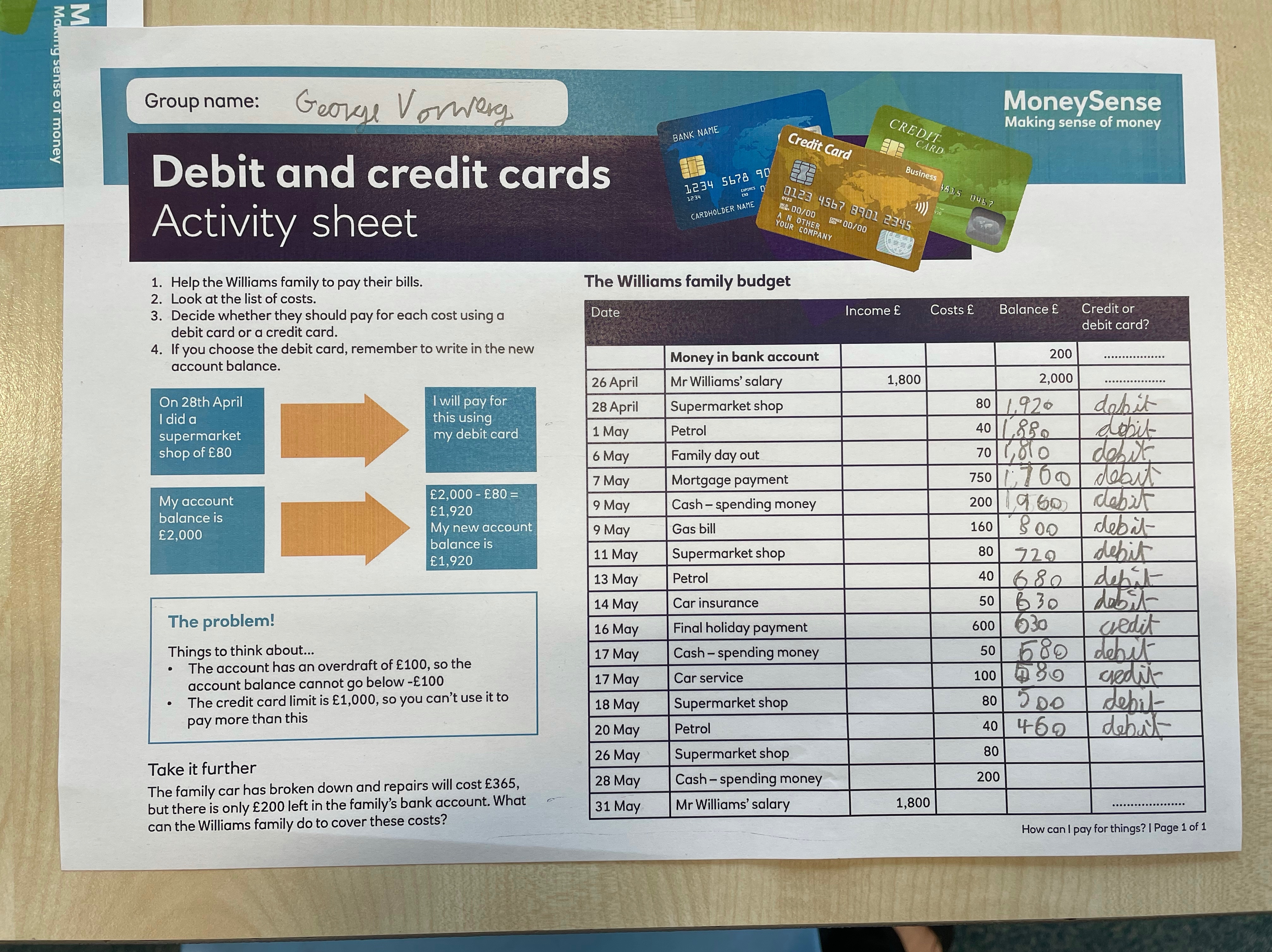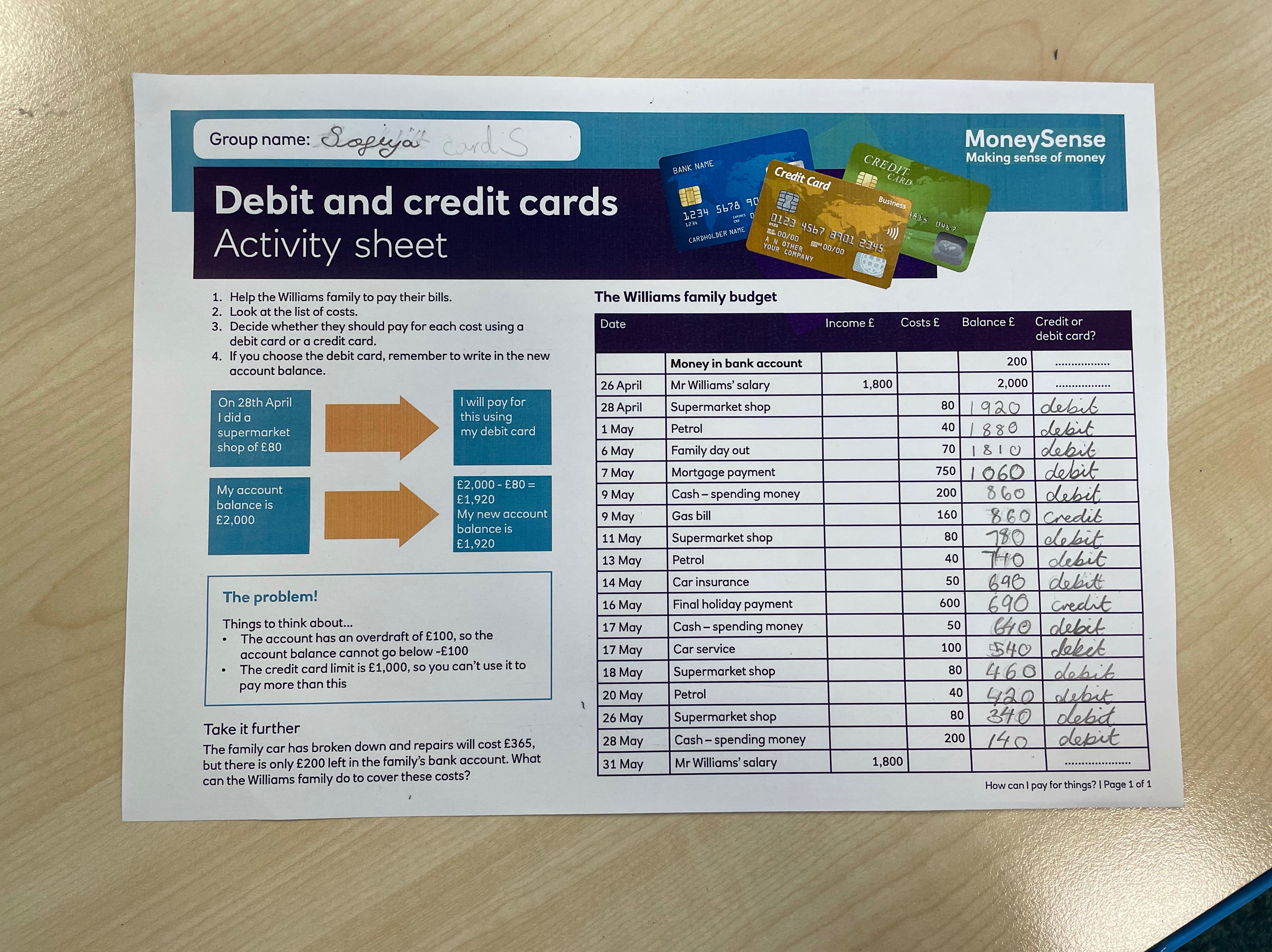 โThe difference between credit and debit cards. We didnโt realise that credit cards mean that we are borrowing from the bank and that they add charges onto this money so we end up paying back more!โ Jack