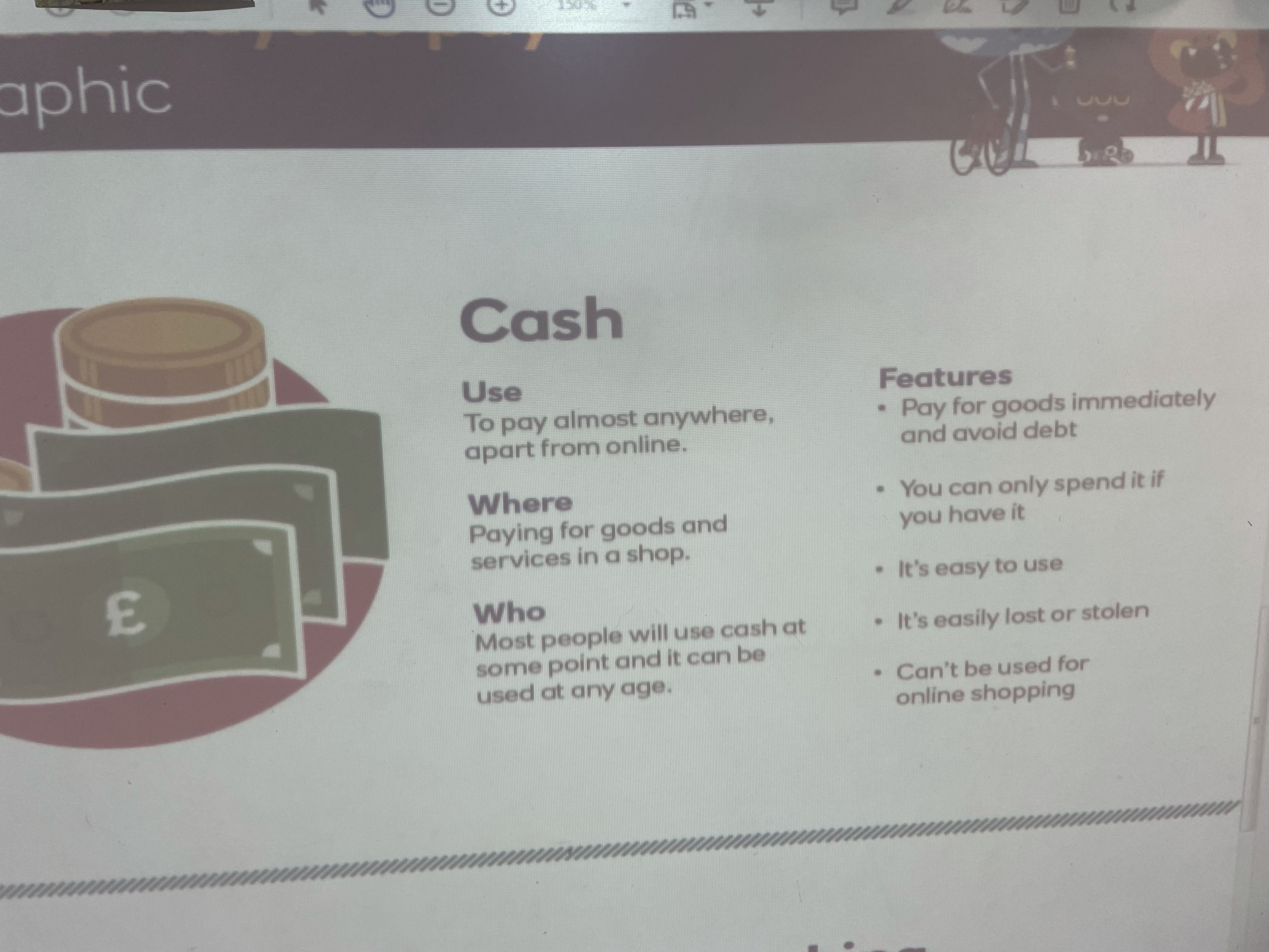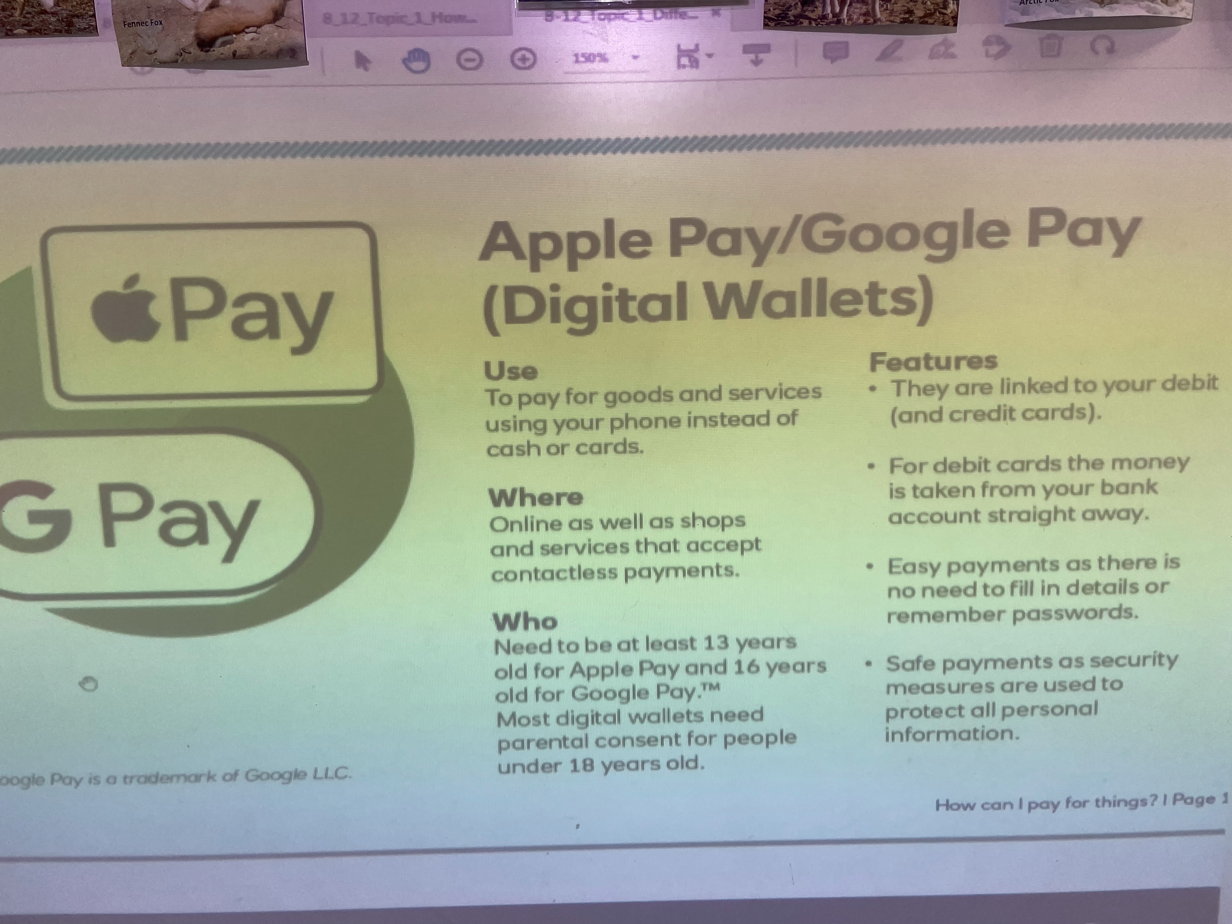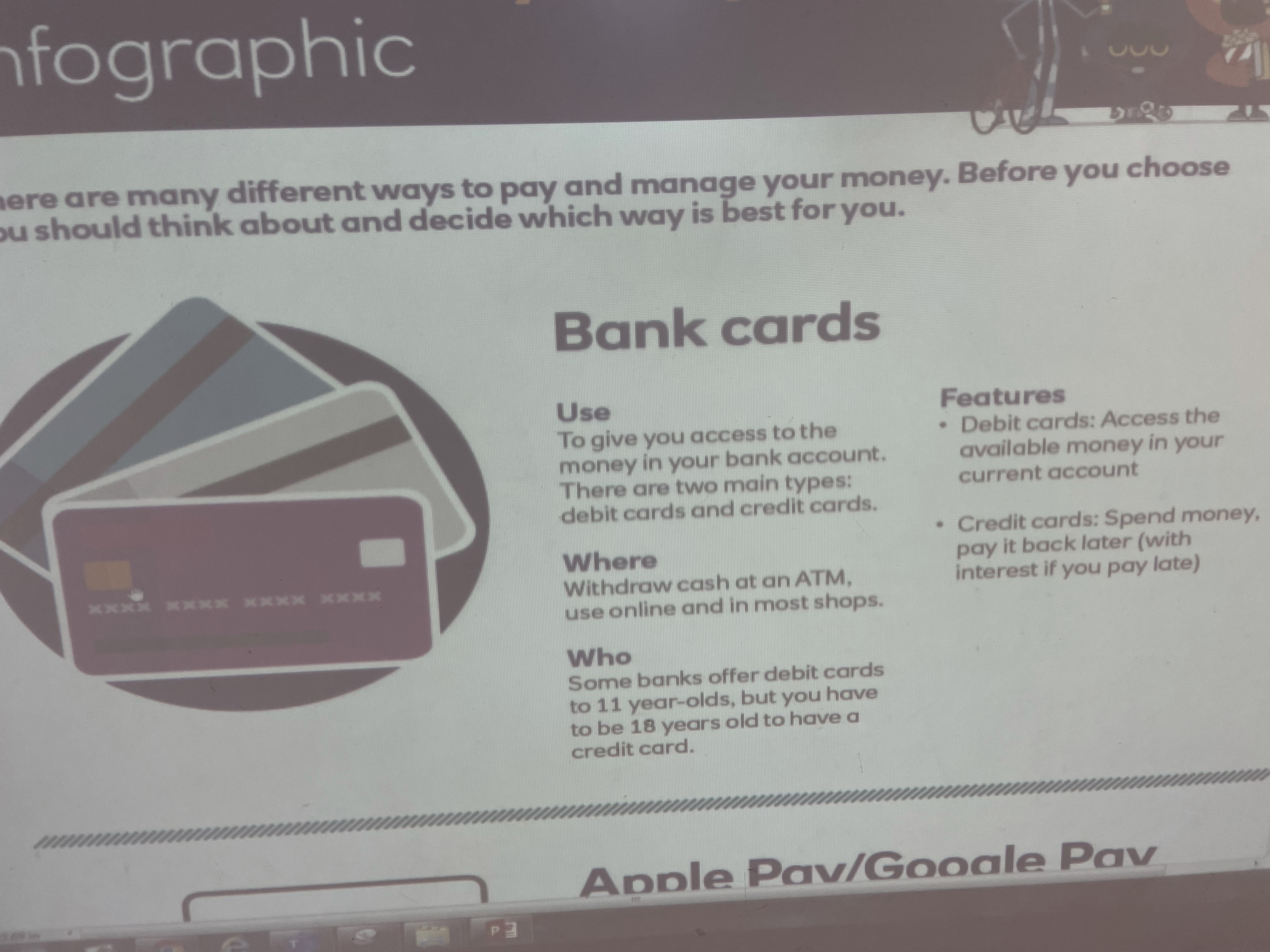 Yesterday, we learnt that there are many ways we can pay for things. We investigated why we would use one method for some things and a different one for others eg a debit card or Apple Pay to buy your weekly shopping and standing orders or direct debits to pay bills.