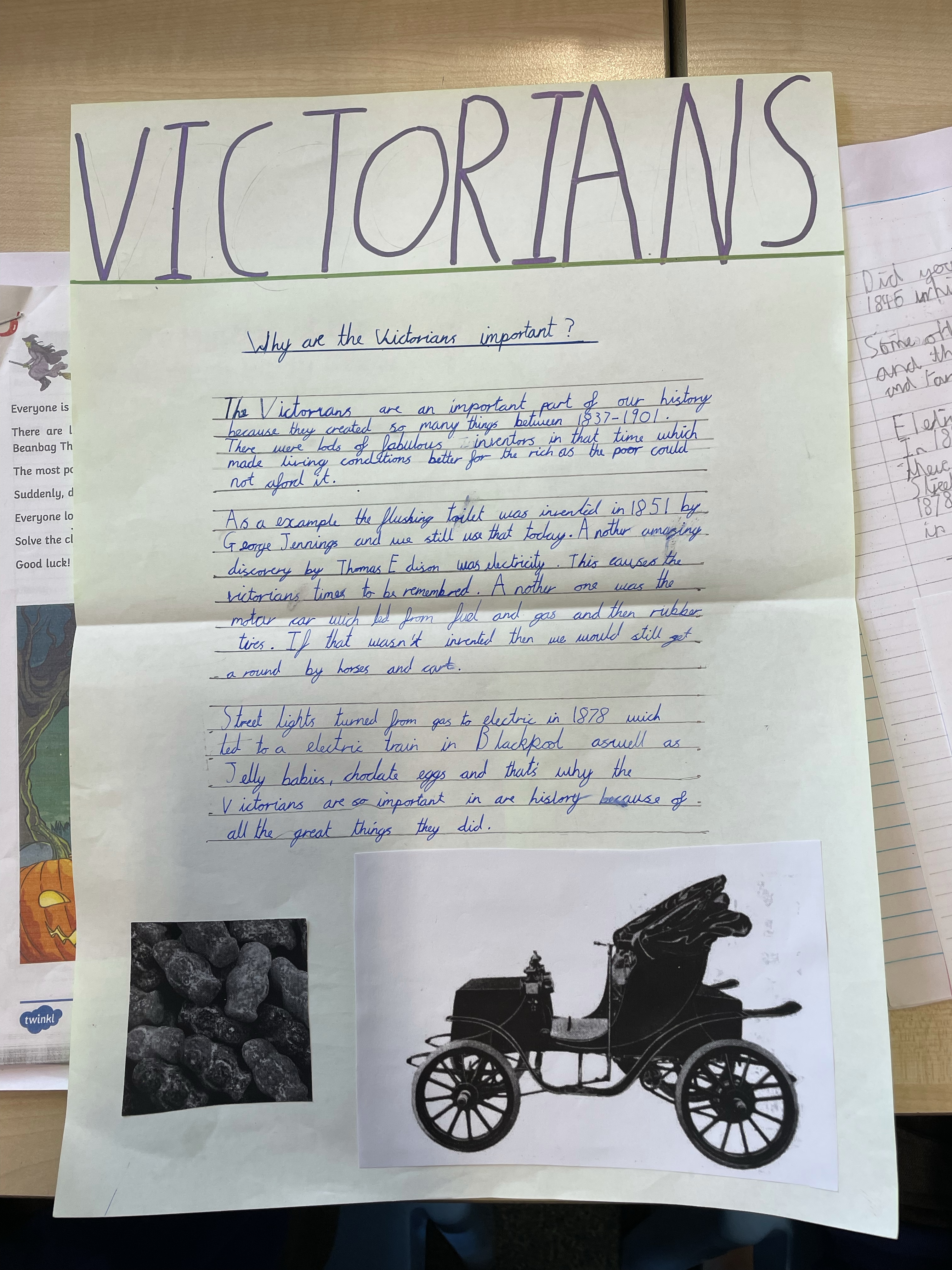 To end our explanation text writing, Onyx Class wrote their own pieces based on โWhy the Victorians are important in our history?โ