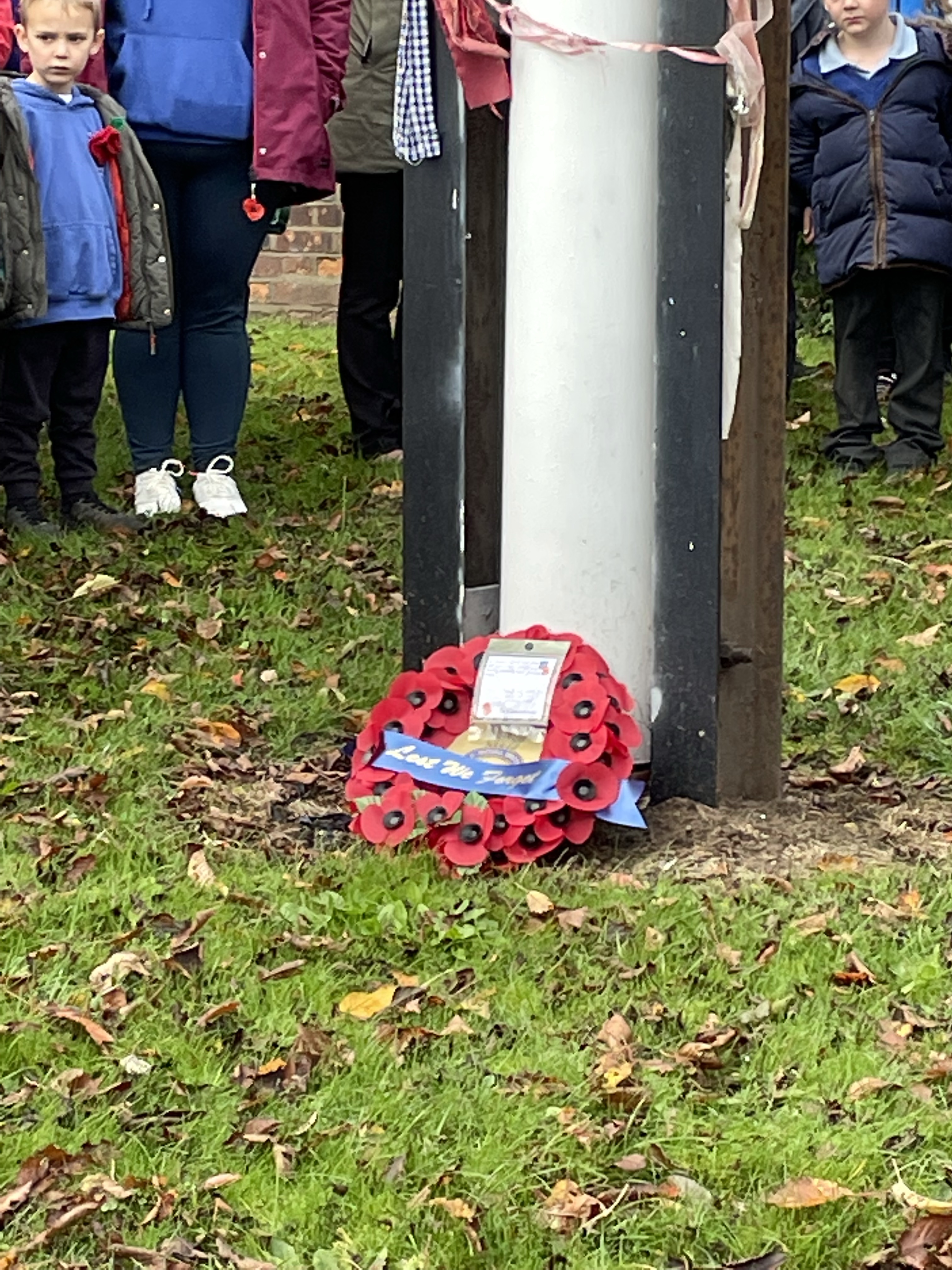 Next, the whole school gathered around our flag pole at the front of school where we shared a 2 minute silence in memory of all those affected by war and conflict. Caprice and Harry -our Head Boy and Girl- laid a wreath with a lovely message attached to it from everyone at Sound.