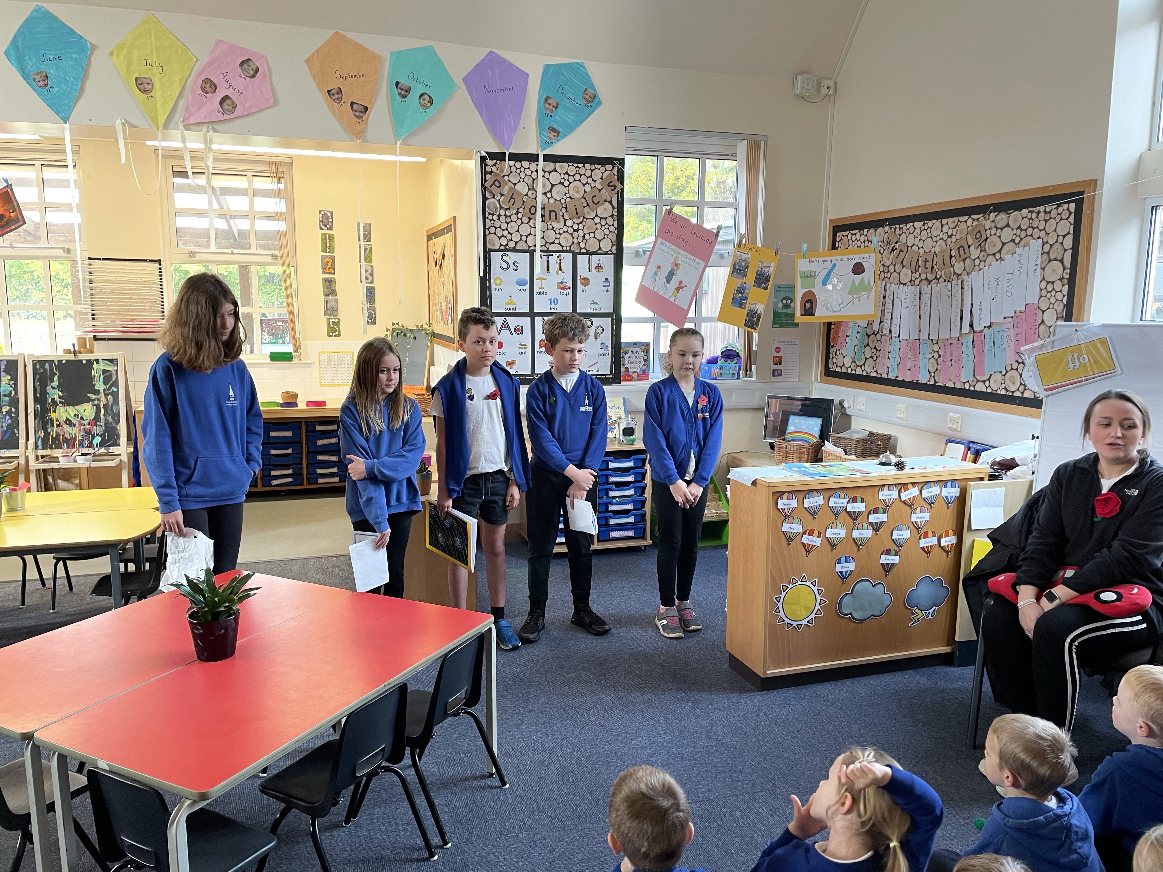 Back in school, Onyx Class then spread out into all classes and shared a range of Remembrance poems that they had learnt off by heart for their homework. They performed them beautifully and confidently and received lots of super feedback from the other children. Well done guys!