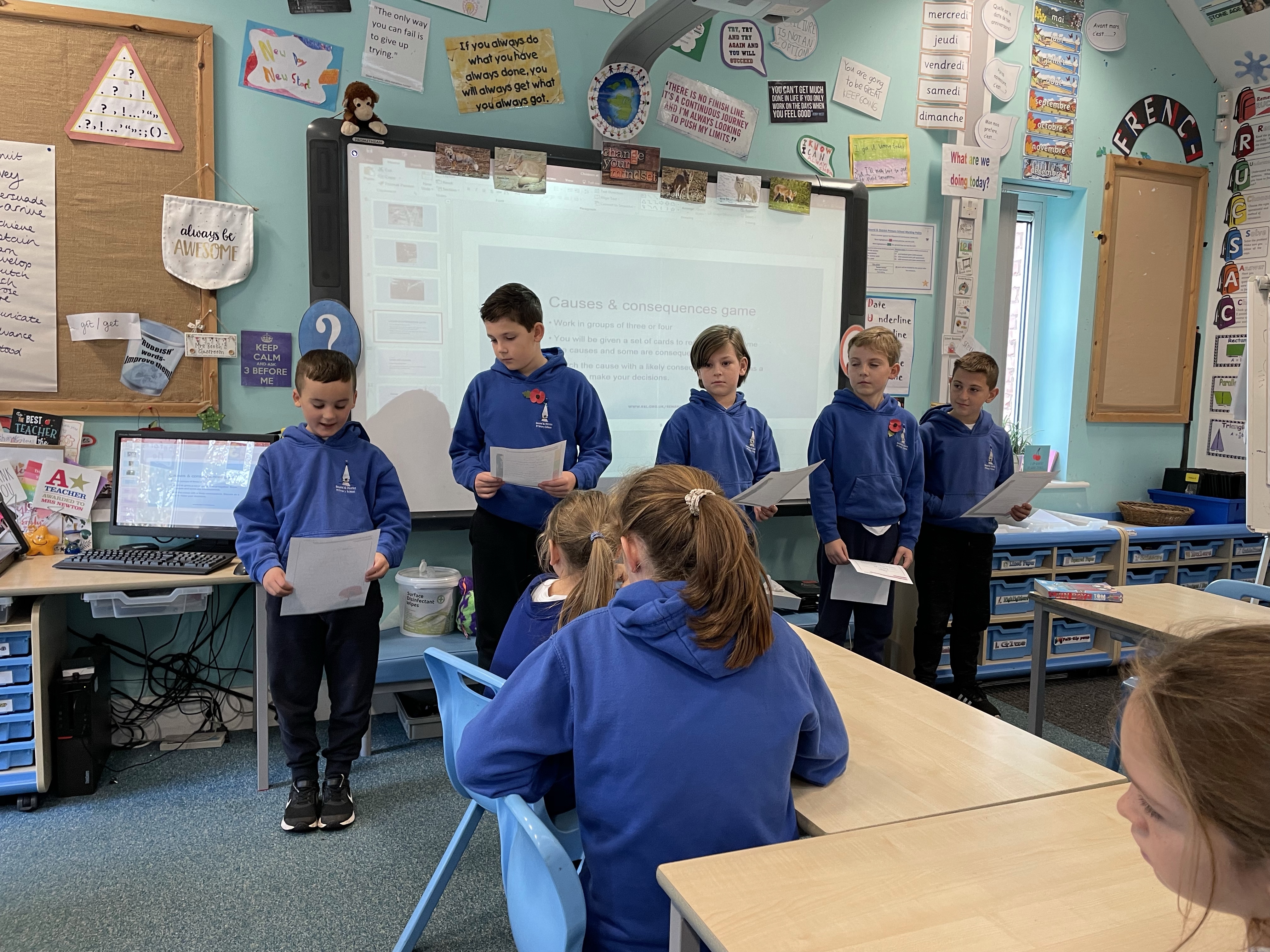 Finally, this afternoon Year 5/6 investigated the roles of those who didnโt go off to war and what part they played in the war effort. They looked at causes and consequences and realised that to win the war was a huge team effort. Peace was a team effort.