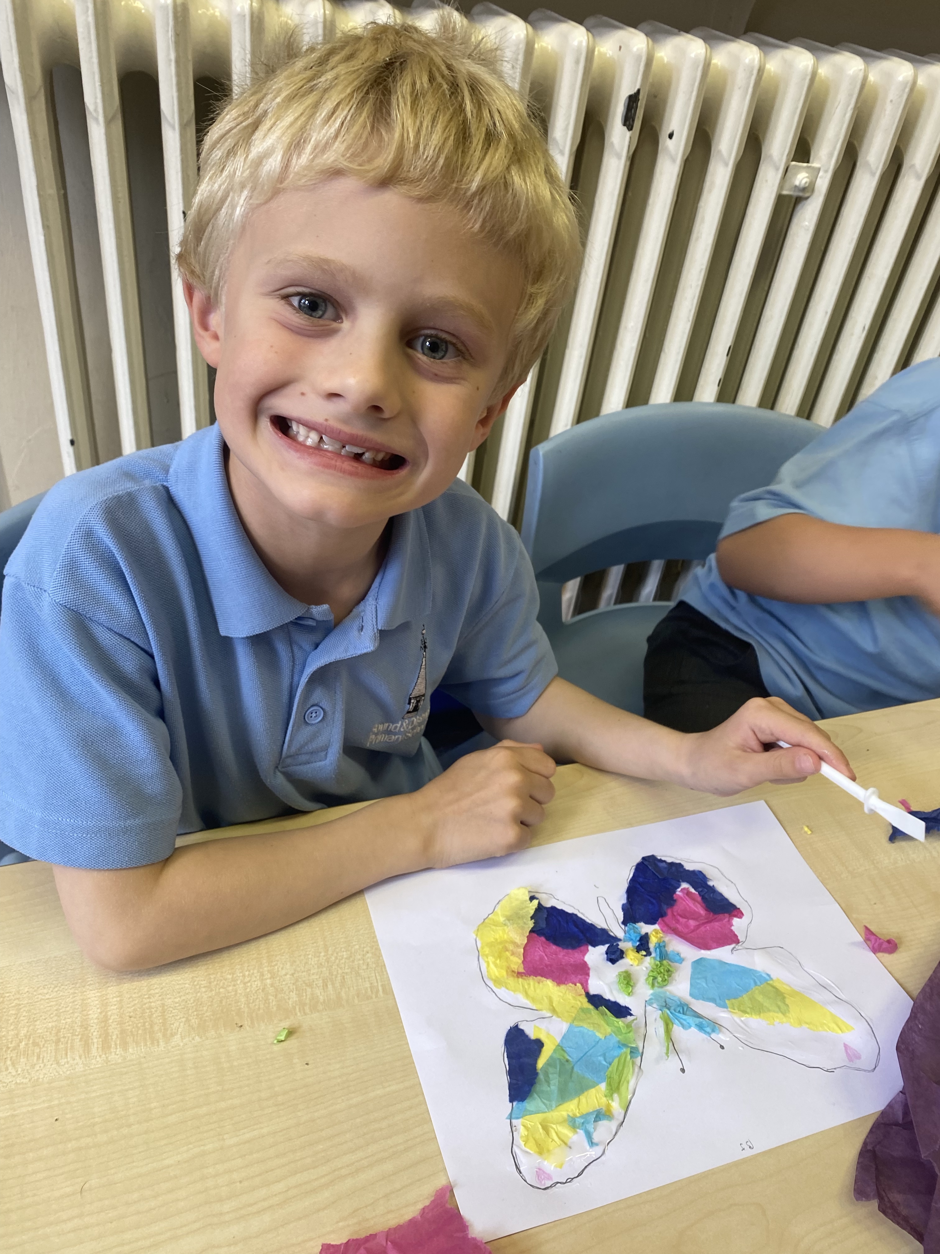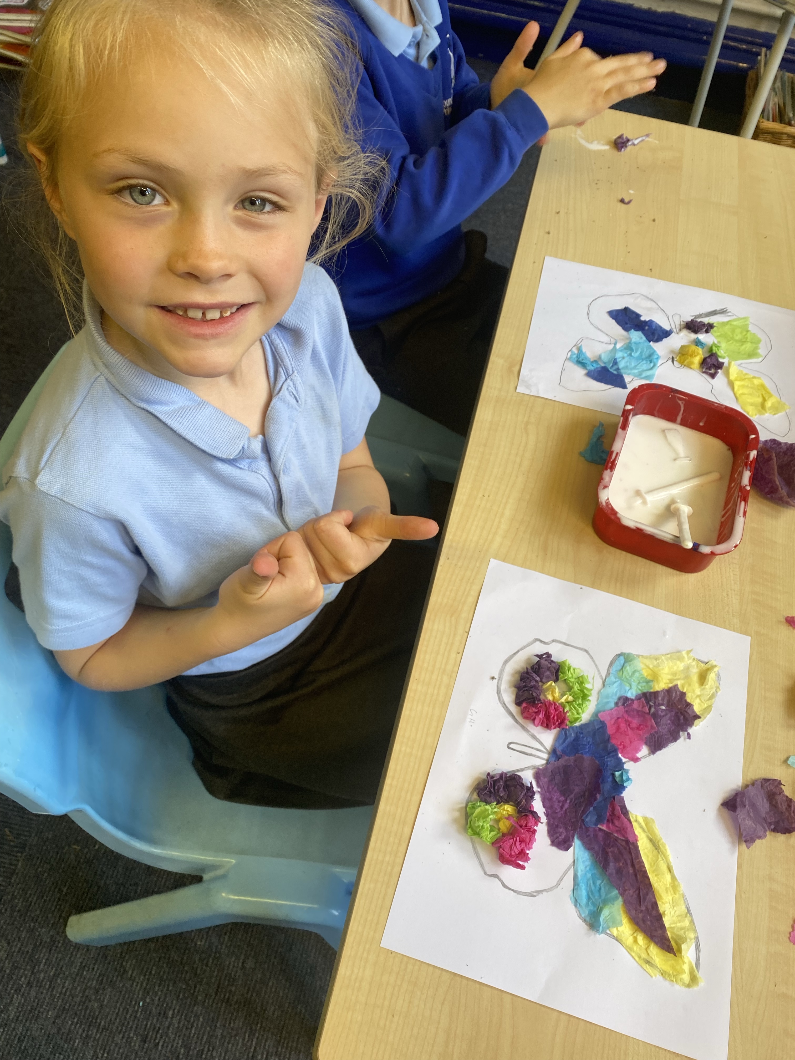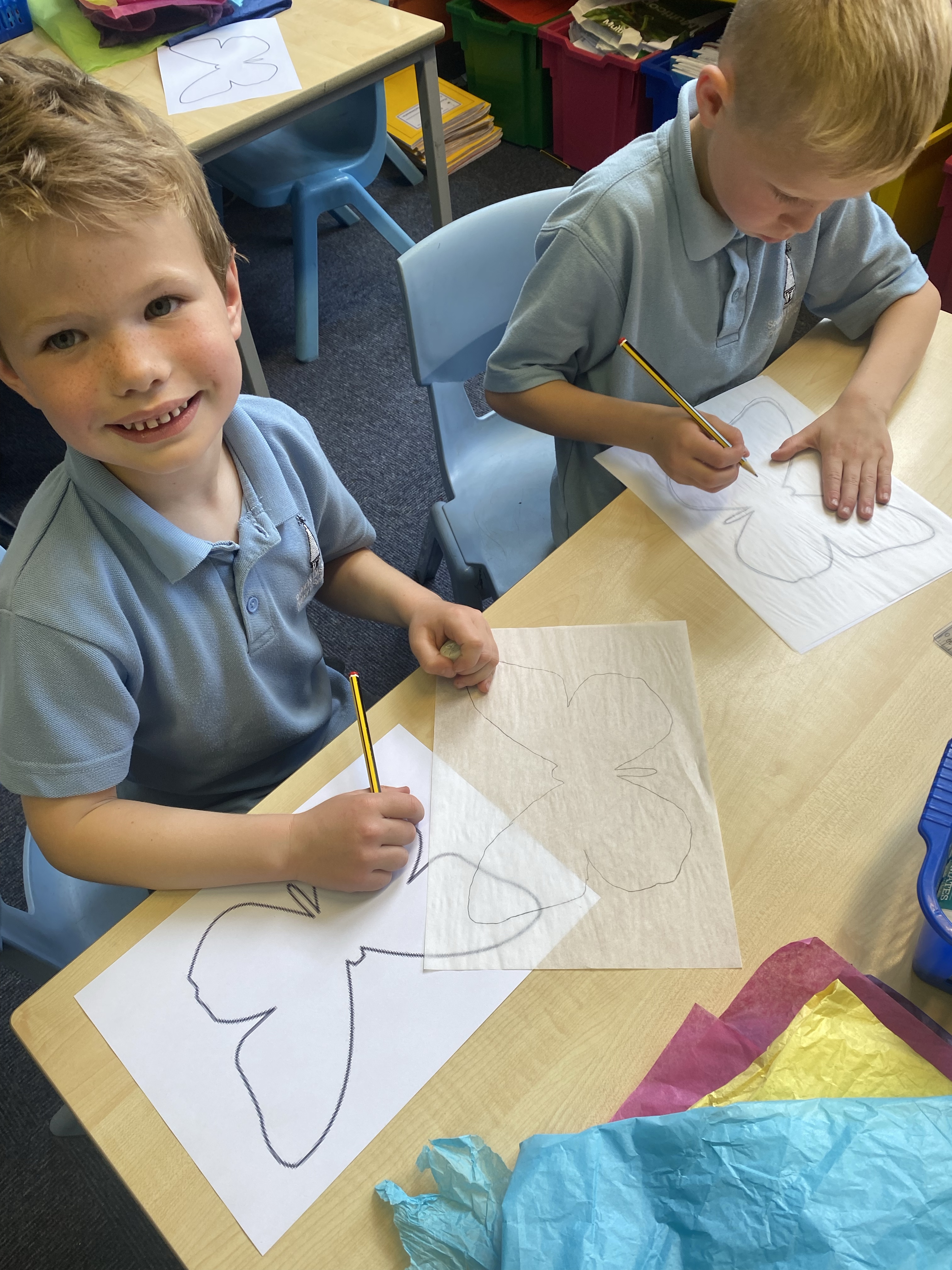 We learnt the new skill of using tracing paper to transfer the outline of our butterfly onto our paper, and then used different techniques of applying tissue paper to create wings that are as delicate and beautiful as those of a real butterfly! 🦋