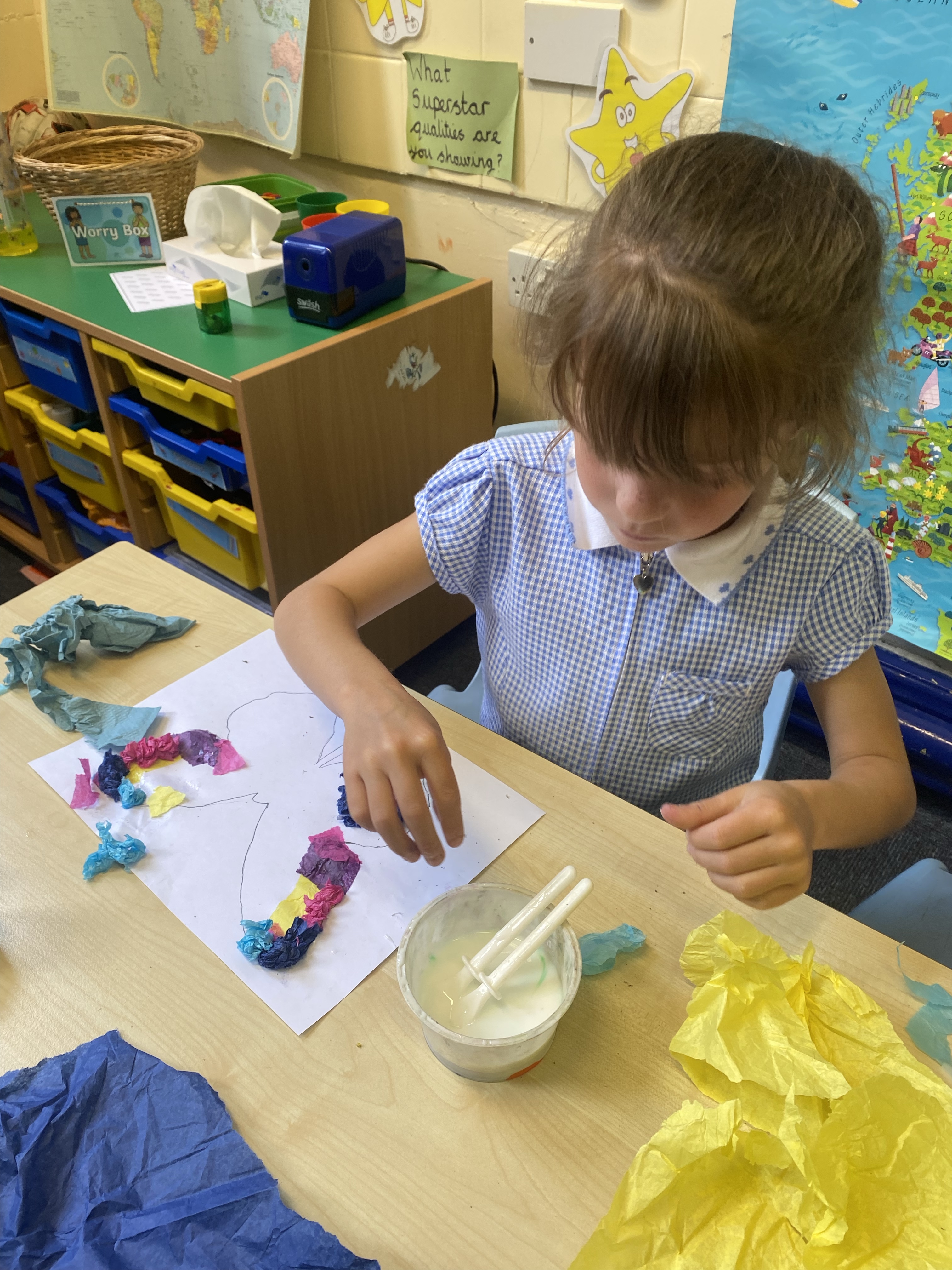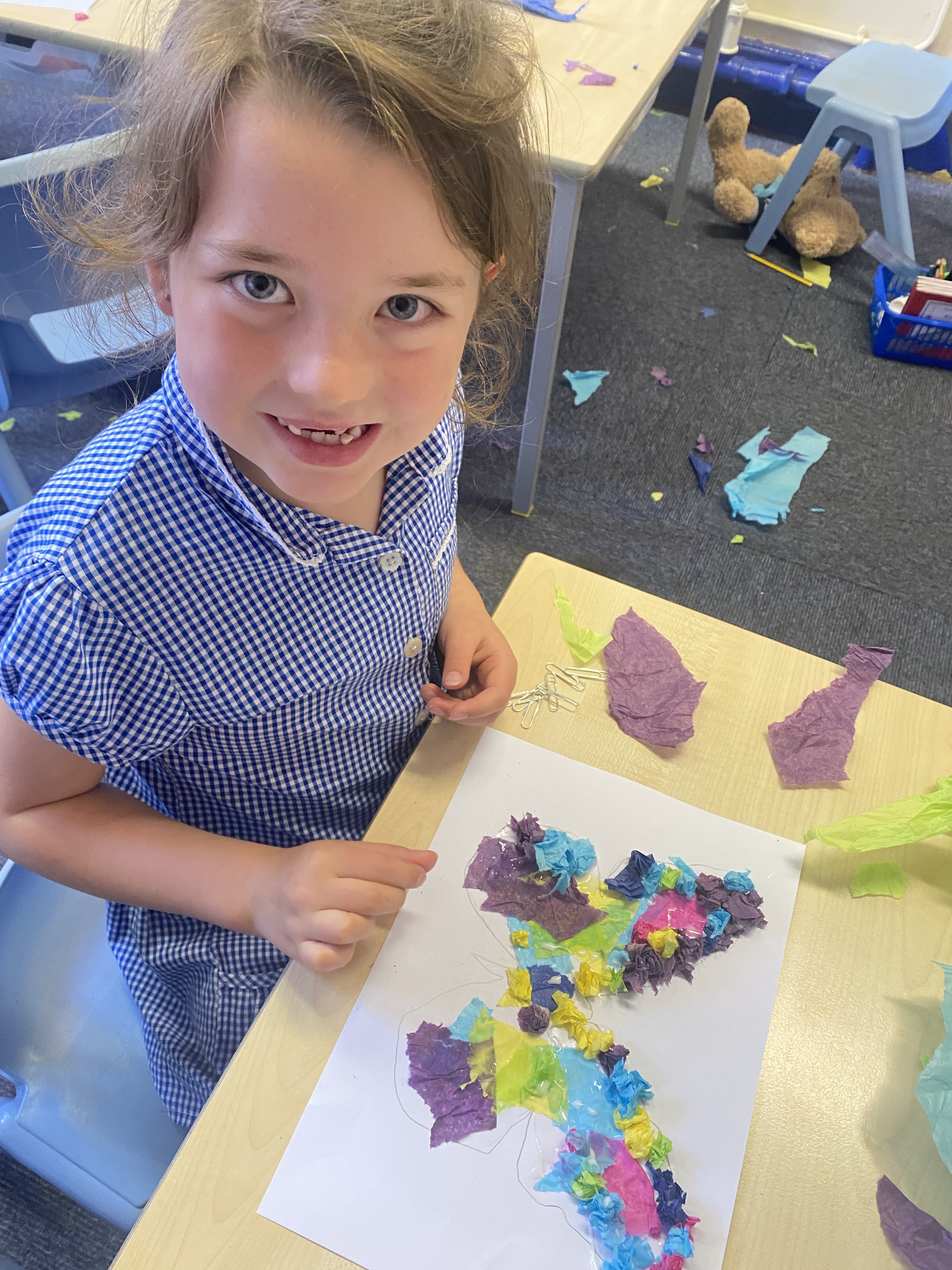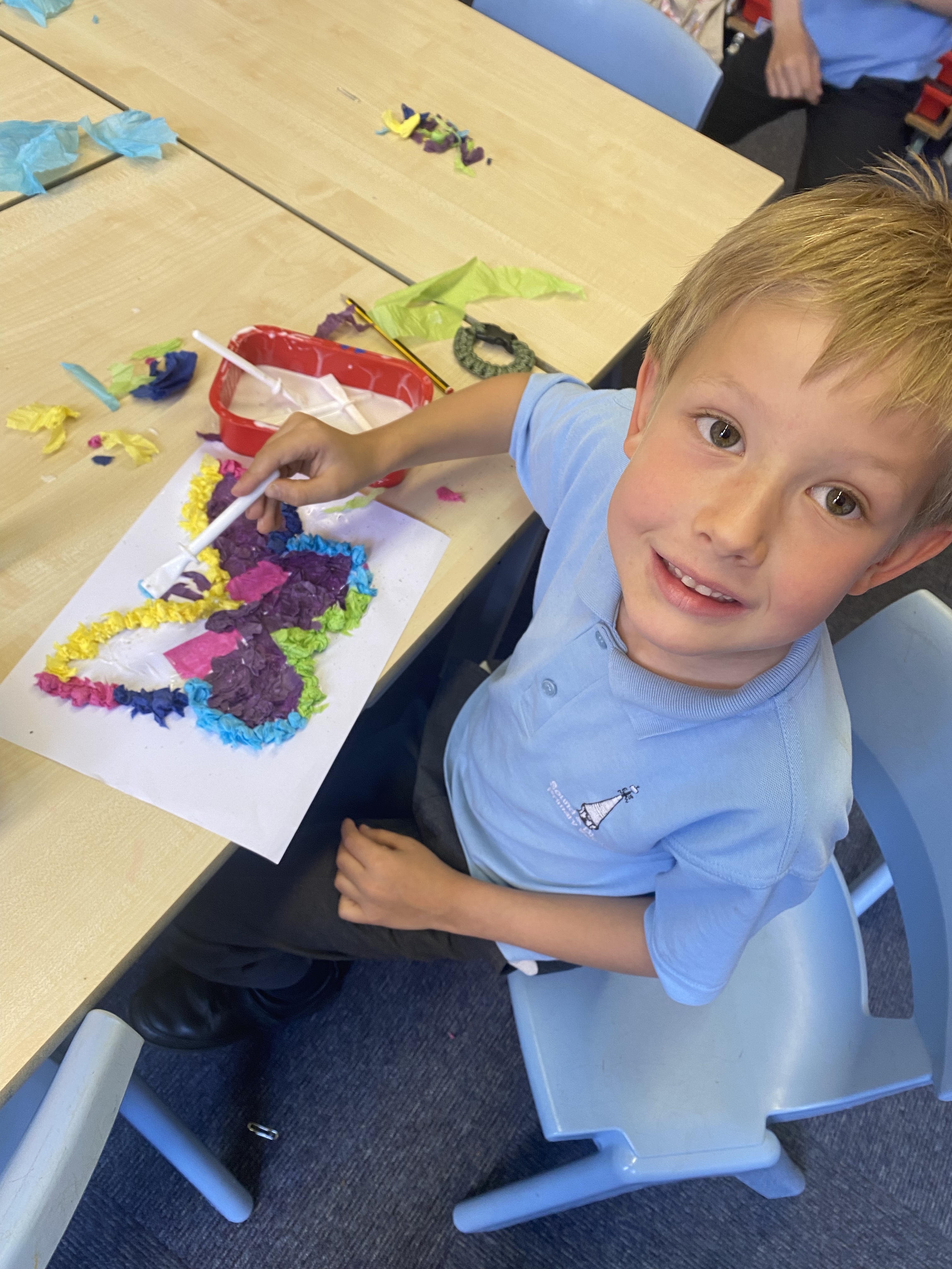 We learnt the new skill of using tracing paper to transfer the outline of our butterfly onto our paper, and then used different techniques of applying tissue paper to create wings that are as delicate and beautiful as those of a real butterfly! 🦋