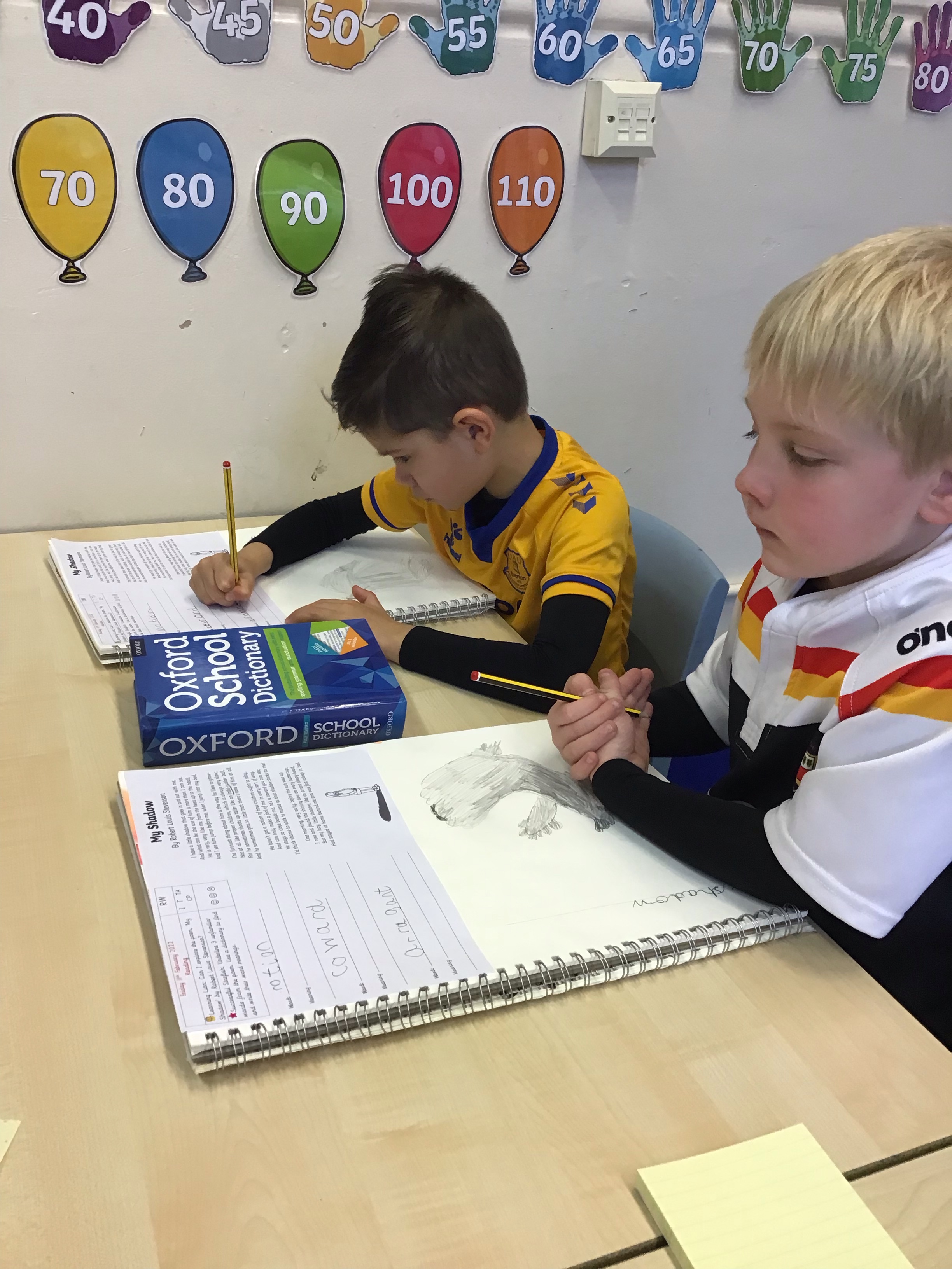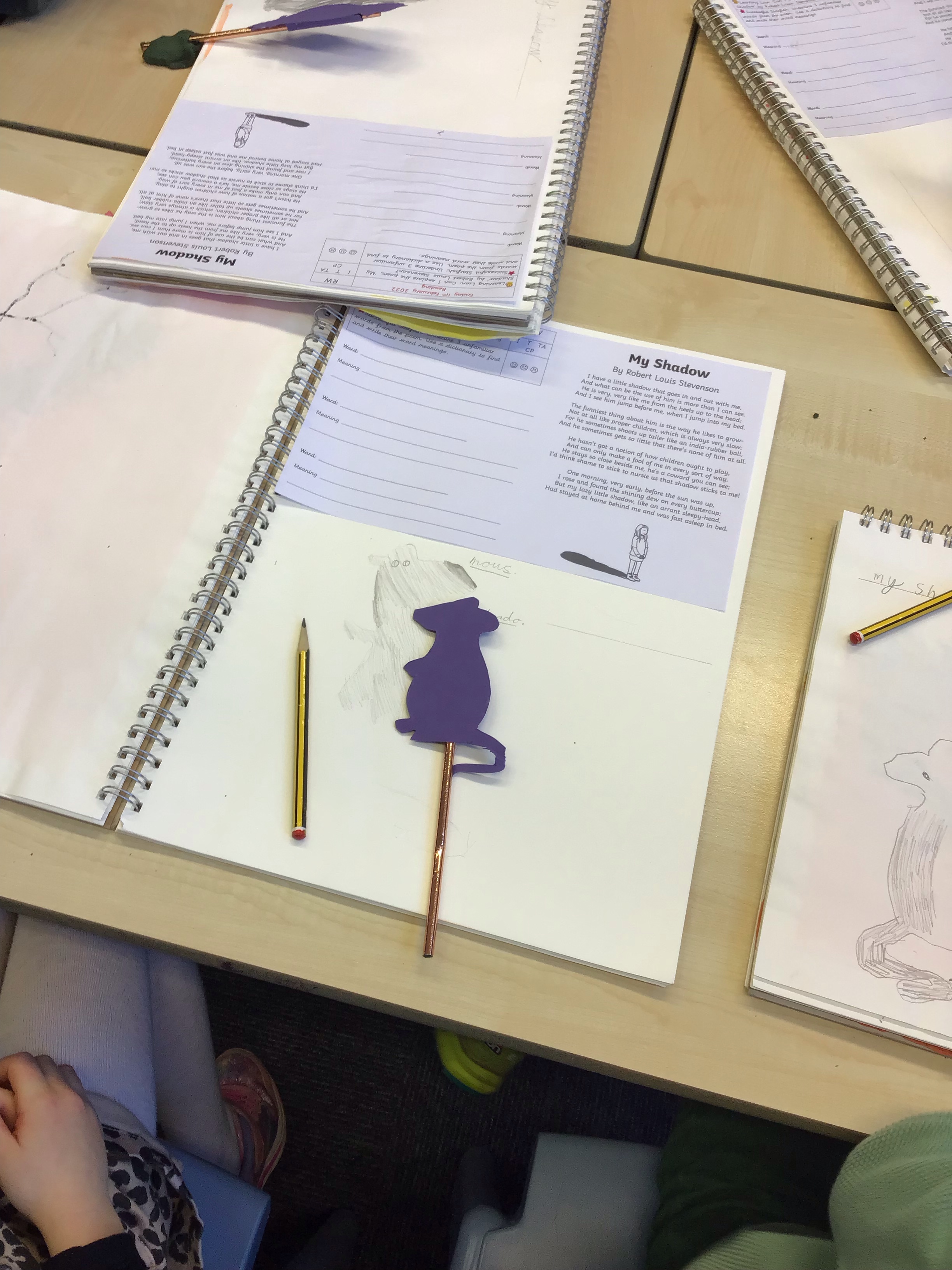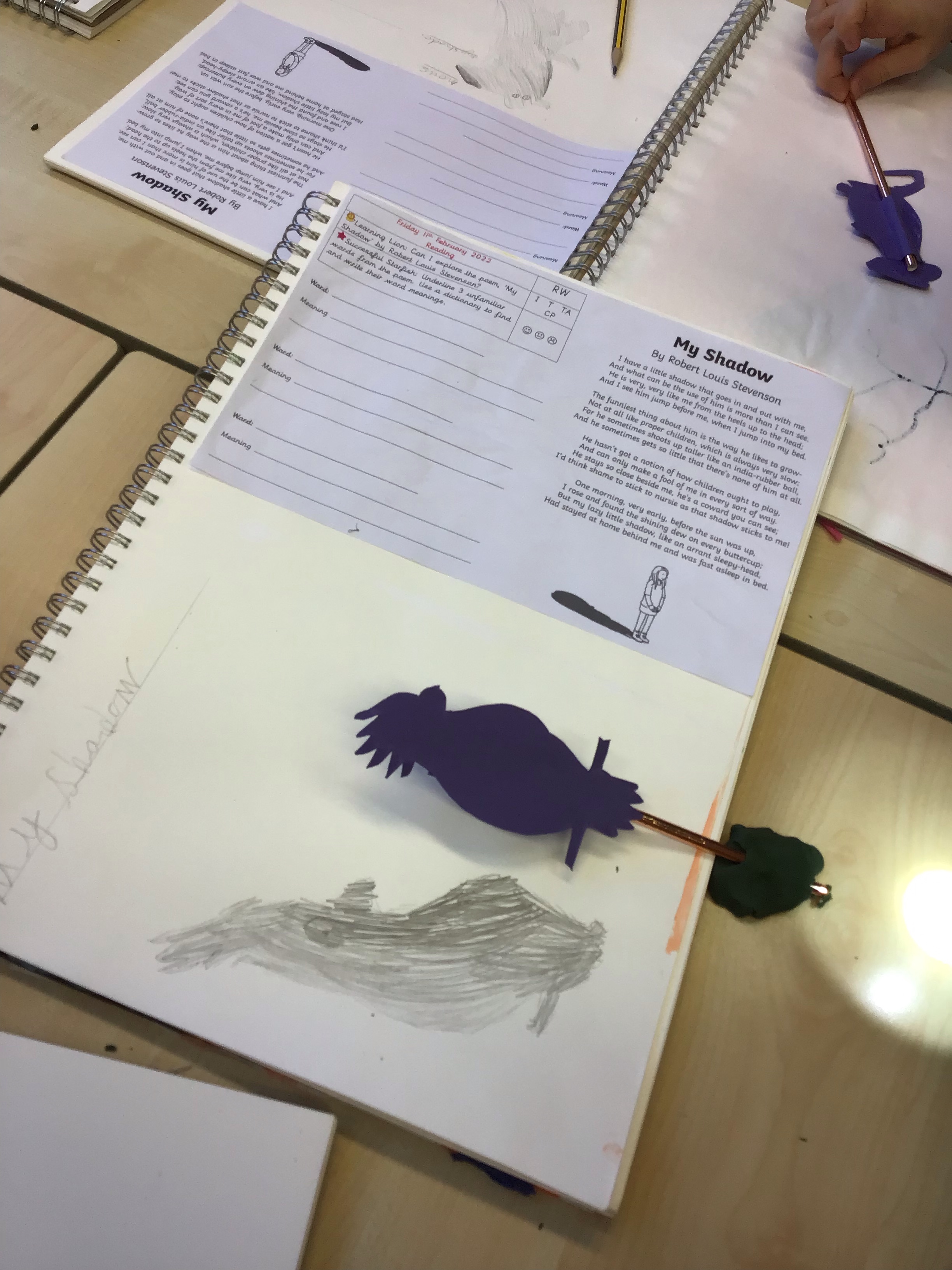 Ruby Class listened to the poem, ‘My Shadow’, picked out some key vocabulary and then drew their own shadows!