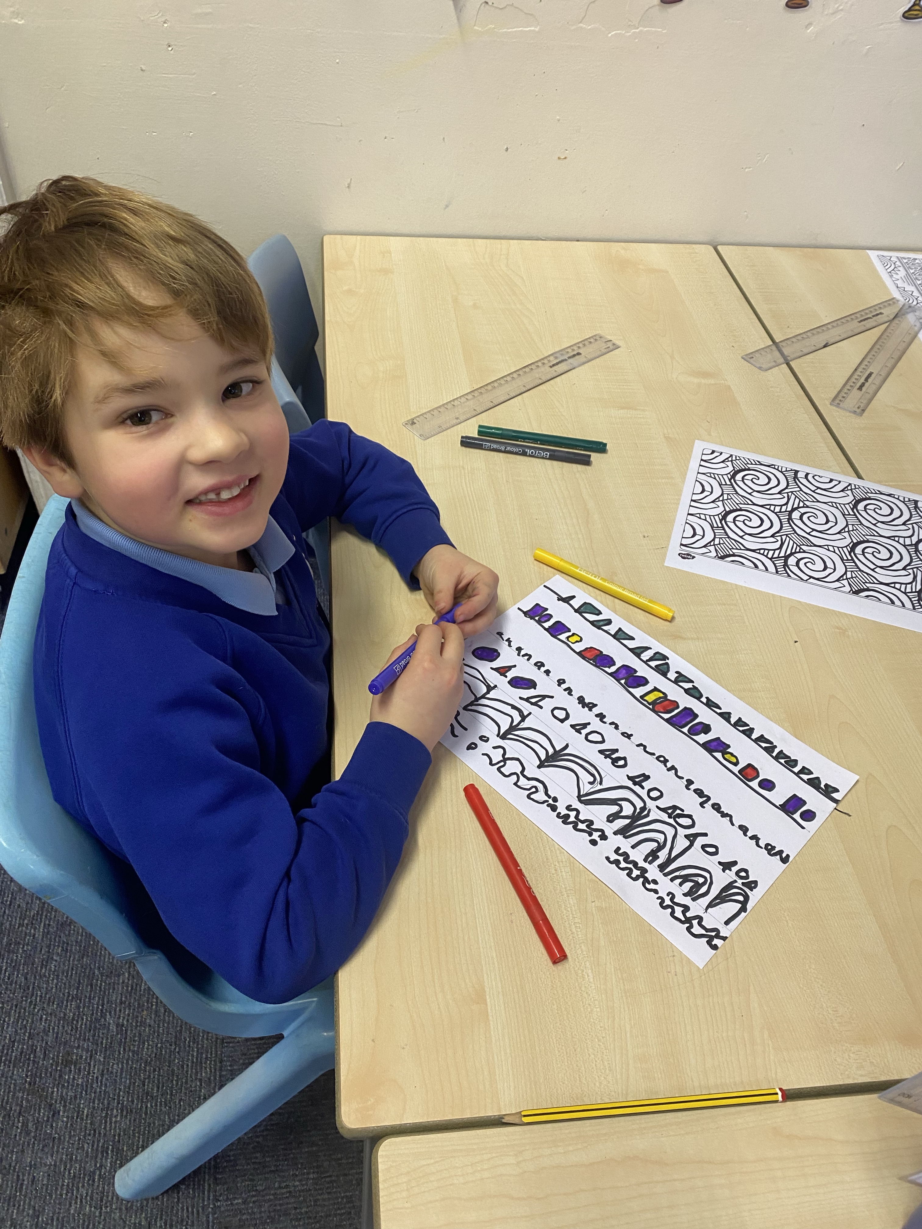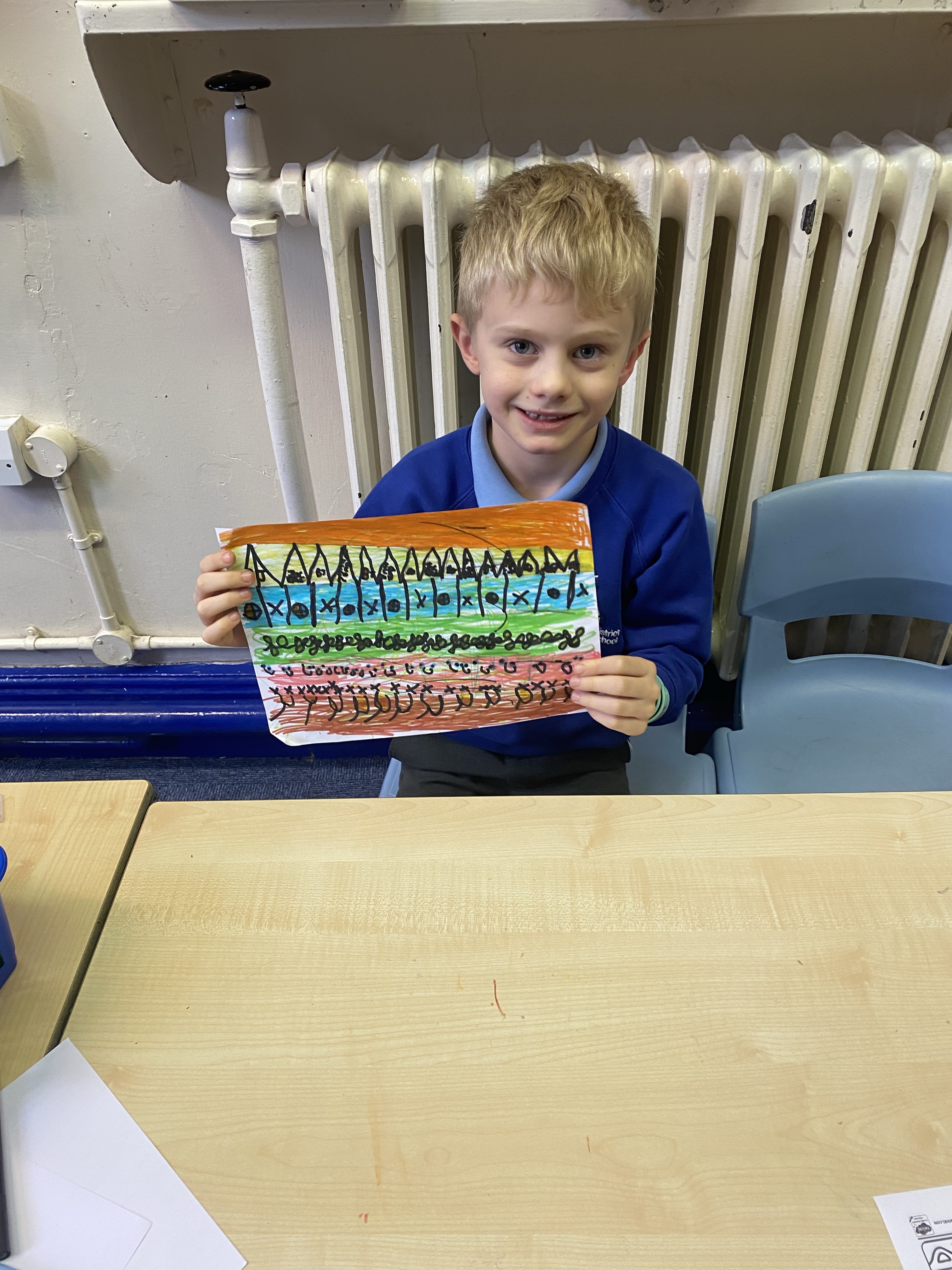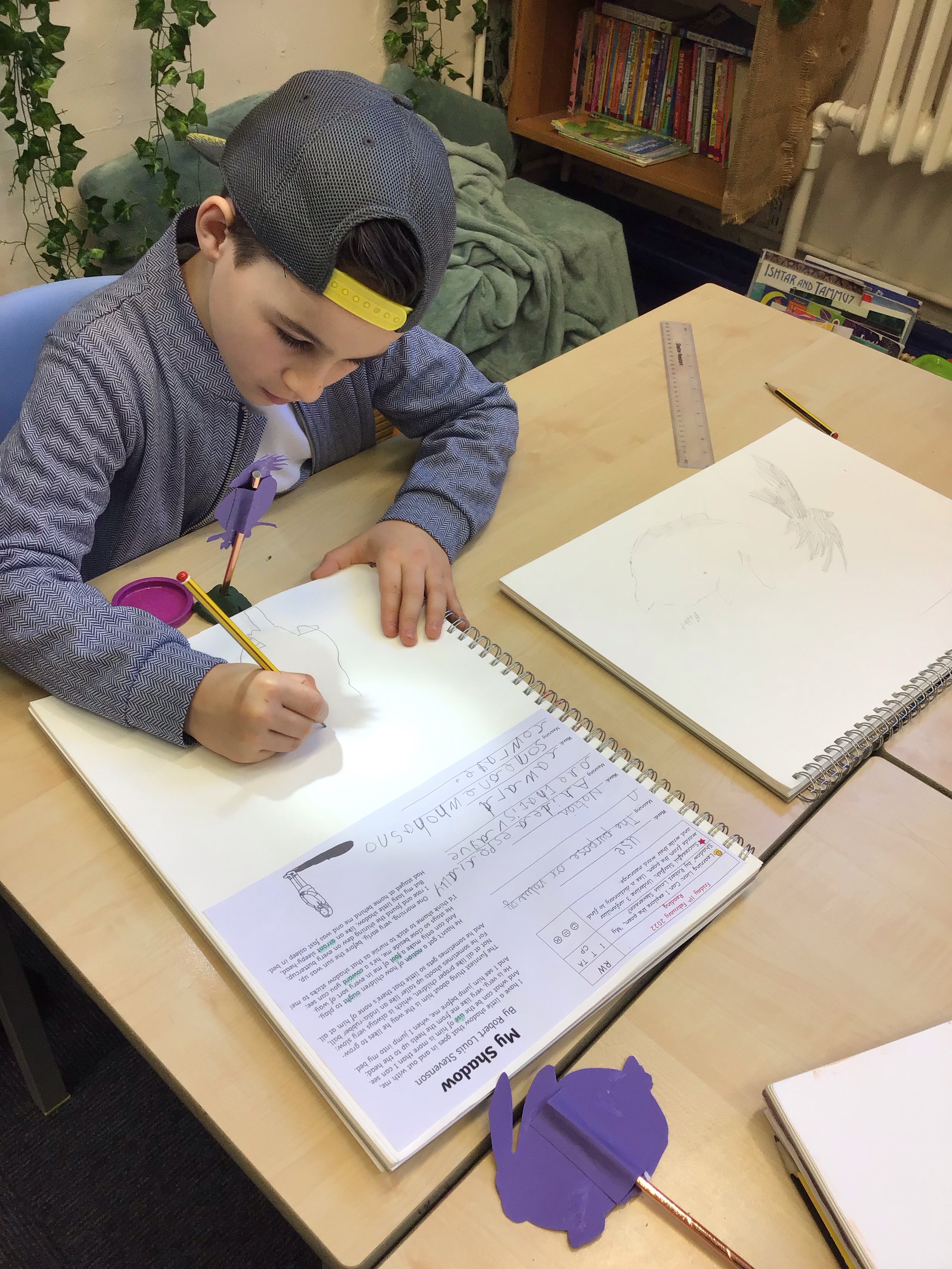 Ruby Class listened to the poem, ‘My Shadow’, picked out some key vocabulary and then drew their own shadows!