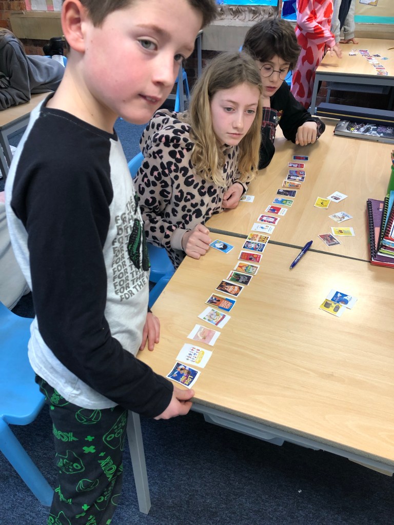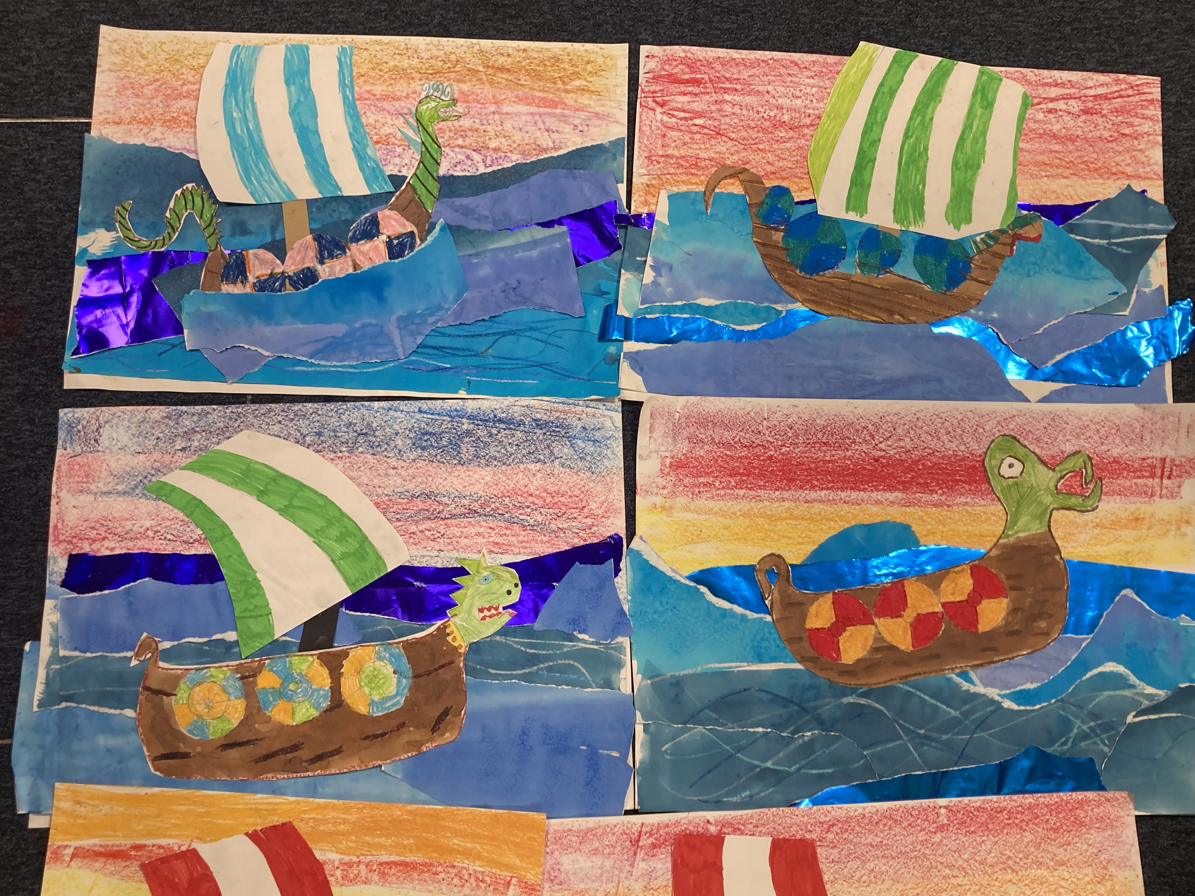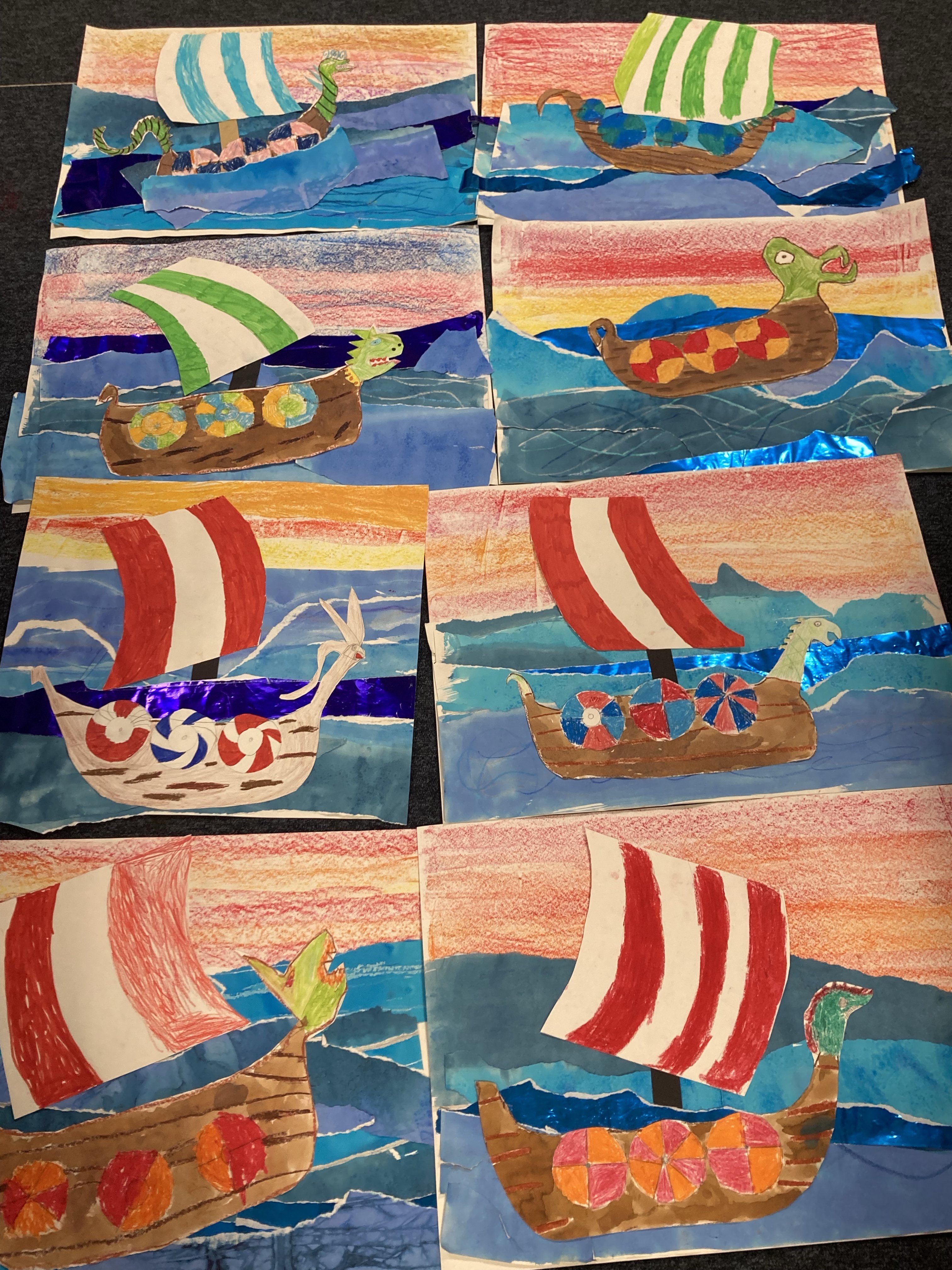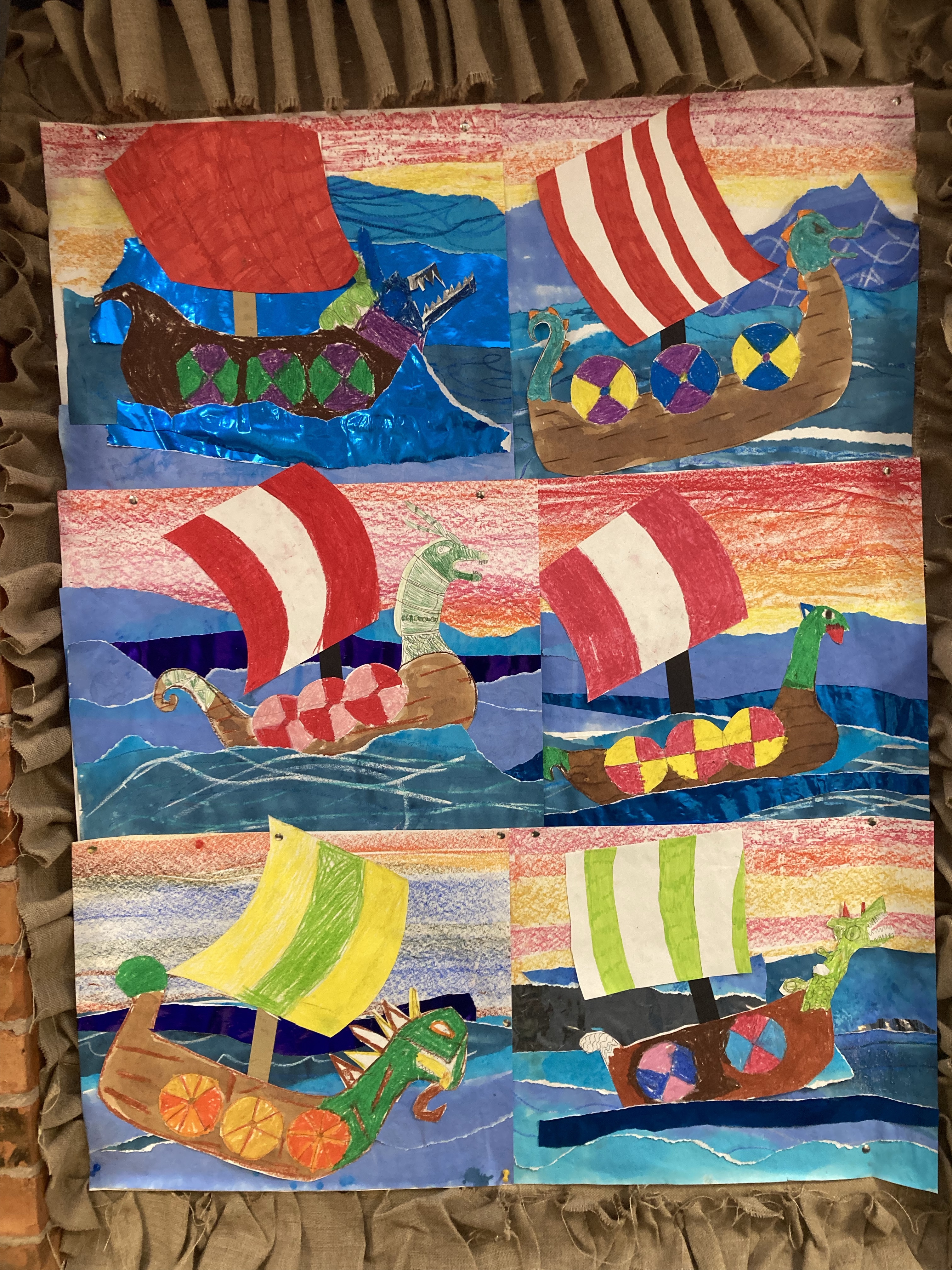 The classroom is awash with colour this morning as the children’s fantastic Viking longships adorn the walls.